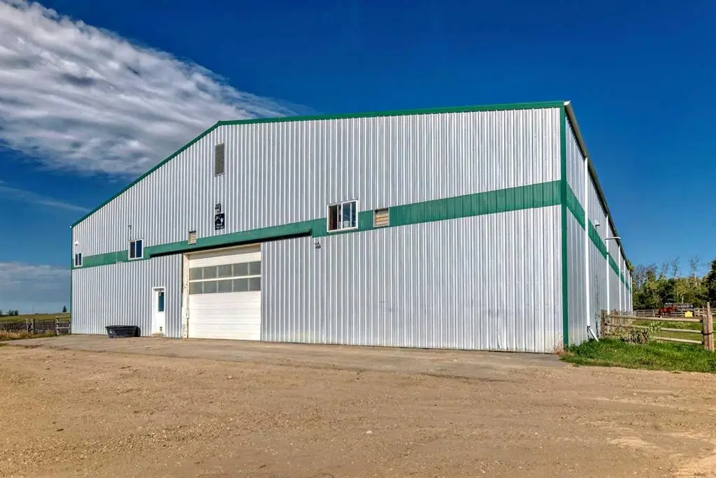 Perfect Equestrian Center.........84 x 200 heated indoor riding arena with viewing area & 2 pc bathroom...200x 100 outdoor riding arena....separate heated barn with 14 box stalls....... approximately 10 stock waterers....lots of large paddocks... 2nd home is 2684 sq.ft. modular home with attached garage.....hay shed, machine shed, all on paved roads... only 15 minutes east of Blackfalds... A must see to appreciate everything it has to offer....!!!!!