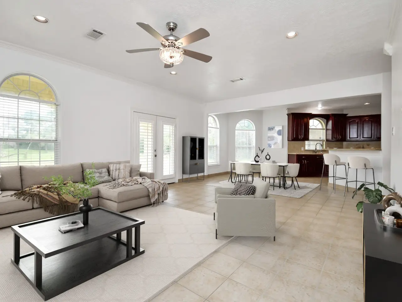 Set on nearly 8 acres in Baytown, Texas, this custom-built home offers an ideal blend of space, comfort, and privacy. The thoughtfully designed floor plan features a spacious primary suite downstairs and three additional bedrooms upstairs — each with its own ensuite bath and walk-in closet. The chef’s kitchen is a true centerpiece, boasting stainless steel appliances, granite countertops, and a 6-burner gas cooktop. Soaring windows flood the living spaces with natural light and showcase breathtaking views of the lush, expansive backyard. Outdoors, enjoy a 3-car garage, a generous patio area, and endless opportunities for recreation, relaxation, or future additions. Whether you're an outdoor enthusiast or simply seeking your own private retreat, this property delivers. Don't miss out — schedule your private tour today!