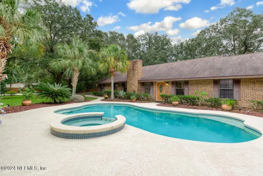 Welcome to this exceptional 40+ acre estate, where luxury and nature harmoniously converge. As you enter through the gated entrance, a picturesque tree-lined driveway guides you to a classic brick, single-story home featuring 4 bedrooms,3.5 bathrooms. This multigenerational home is thoughtfully designed for comfort & elegance. The expansive open front porch offers serene views of the lush pasture, setting the stage for tranquil mornings. Inside, the owner's suite is a sanctuary, complete w/ a luxury jetted soaking tub, his & her vanities, a separate shower, & exquisite tile finishes. The formal living & dining rooms provide an ideal space for entertaining, while the spacious kitchen boasts beautiful granite countertops & generous cabinet space. Outdoor living is a dream w/ a 1/2 acre pond & shooting gallery, perfect for the sportsman or outdoor enthusiast. The resort-like setting continues w/ an inground pool, surrounded by palm trees & lush landscaping, nestled between the home and the pool house. The pool house is the ultimate retreat, offering a bar, recreation area, and a 1/2 batha perfect spot to relax during the heat of the day or use a an awesome Man Cave or She Shack. This estate also includes a pole barn and shed for livestock, adding to its versatility. The 1-bedroom, 1-bathroom guest house is ideal for visitors, used as an in-law suite, or can be rented as an Airbnb or long-term rental, offering additional income potential. Additional features include a 2-car garage with manual doors (currently used as a workshop), craft room, and shed, making this property not only a luxurious residence but also a practical one. Whether you're looking for a multigenerational living space, a peaceful retreat with rental income potential, a property offering land for livestock or small farm, this estate has it all. Next door to civilization yet away from it all, this remarkable property can satisfy the person looking for peace and quiet, a place to fish and hunt, raise livestock, have an amazing garden, have a separate income producing dwelling, the family with multigenerational needs, or whatever you can imagine!!!