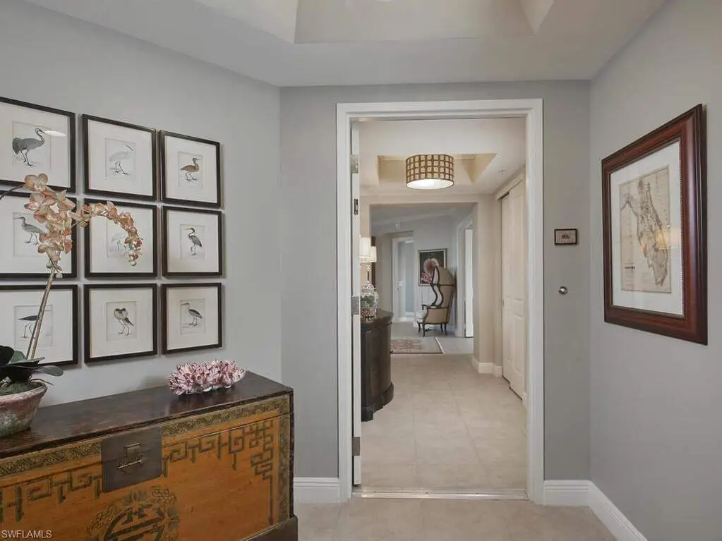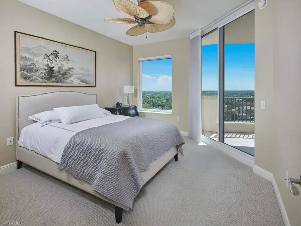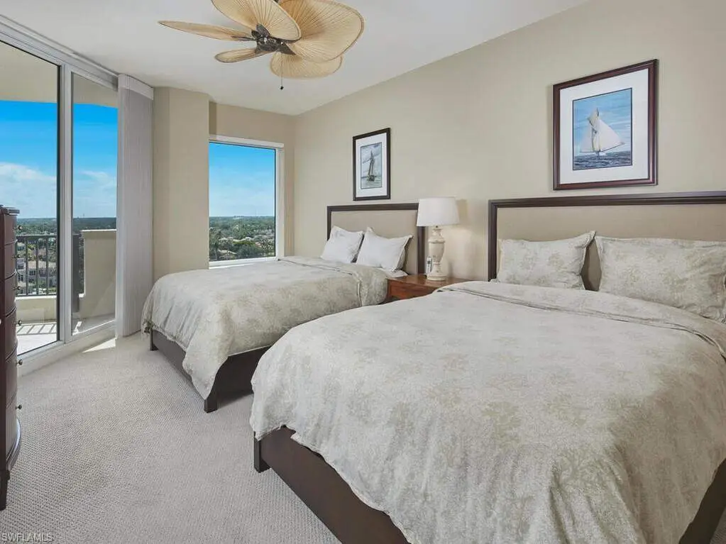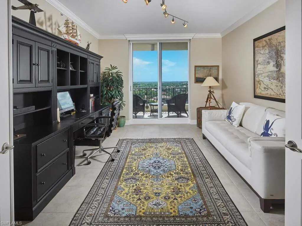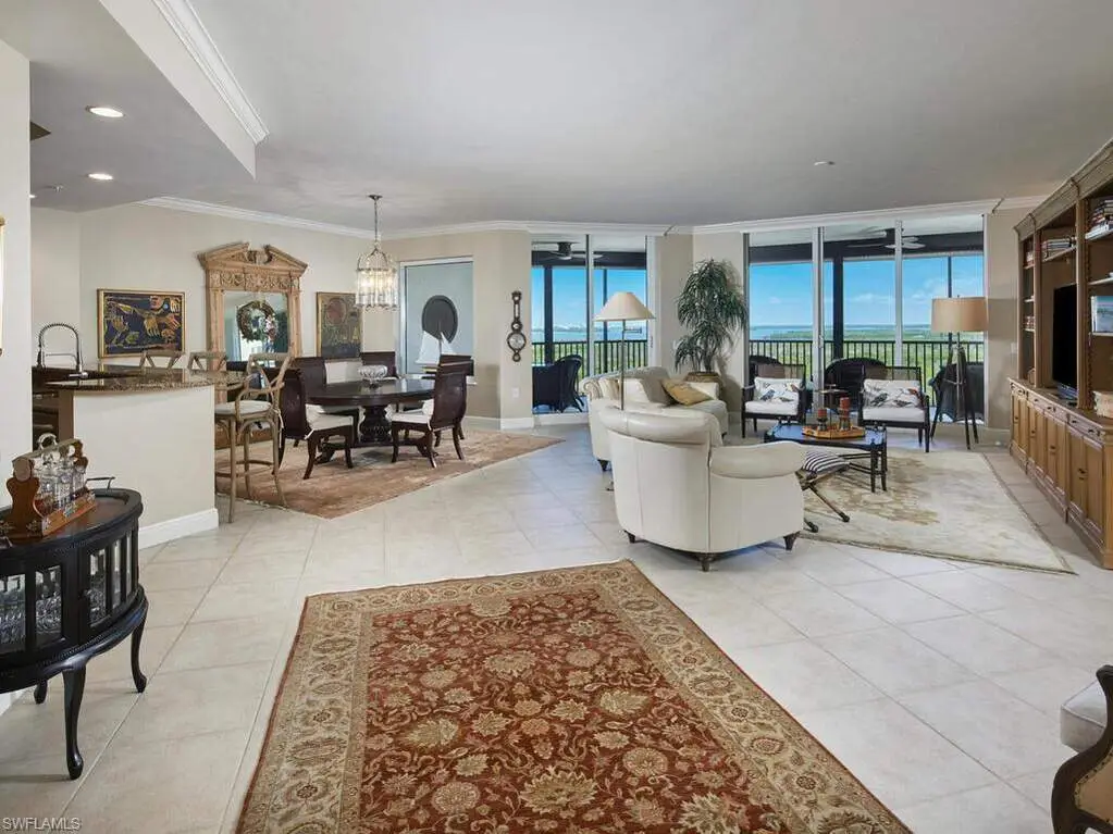 Experience elevated living in The Colony's Florencia tower-one of Southwest Florida's most exclusive and amenity-rich high-rises. Step from your private elevator lobby into this sophisticated 8th-floor corner residence, offering breathtaking panoramic views of the golf course, lake, Estero Bay, and the Gulf of Mexico.Enjoy awe-inspiring sunsets from the expansive screened lanai, where indoor-outdoor living reaches new heights. The light-filled primary suite features floor-to-ceiling picture windows and direct lanai access, while the spa-inspired bath is bathed in natural light and designed for serenity. A thoughtfully designed split-bedroom layout ensures privacy for both owners and guests, den opens to the main living area through elegant double doors and features a private balcony-perfect place to enjoy morning coffee! Spacious guest suites share a third balcony overlooking a lake and the Colony community. The abundant kitchen impresses with lots of countertop space, rich wood cabinetry, and stainless steel appliances. Florencia welcomes you with an impressive main lobby and offers a host of upscale amenities, including a social room, private theater, state-of-the-art fitness center, and resort-style pool/spa. A dedicated privacy officer greets you and your guests, while live-in management ensures seamless service and peace of mind. Community amenities include the Bay Club on Estero Bay with elegant dining and views, a 34-acre private island beach park and community/tennis center as well as a host of other court sports including pickle ball and bocce, sailing, canoe and kayaking, as well. Golf is optional.