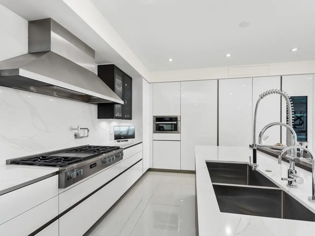 • Professional-grade stainless steel appliances and ventilation hood