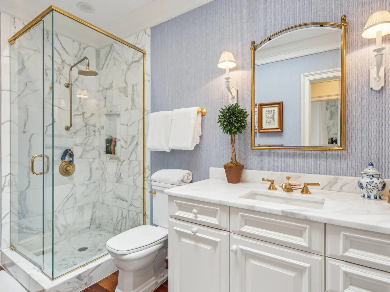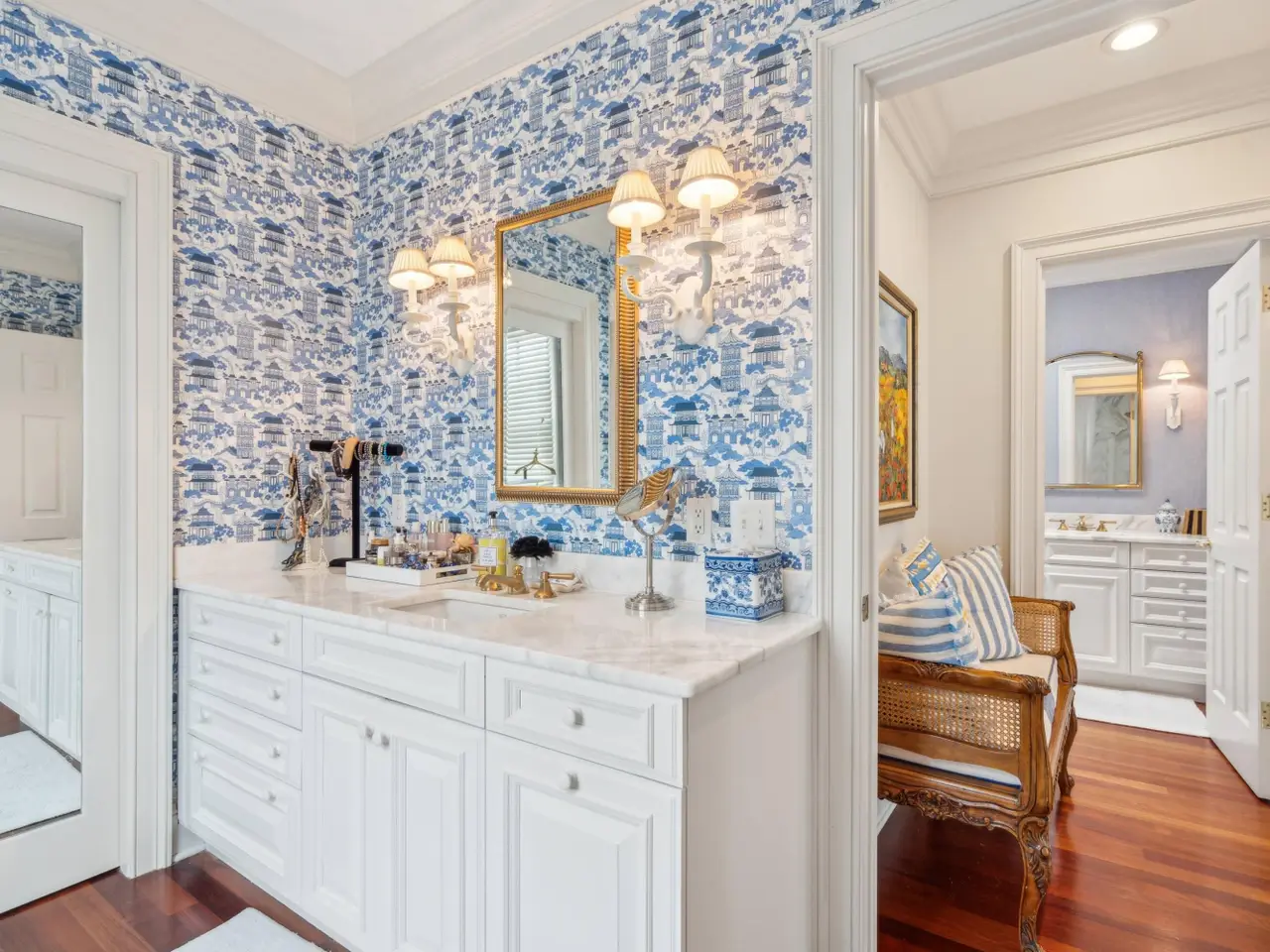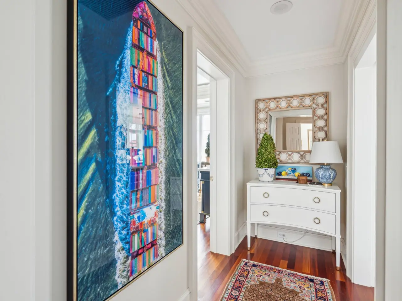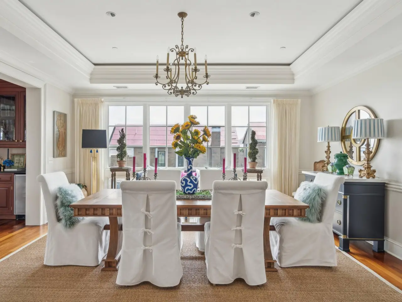 Rare, elegant penthouse-level apartment offering southern views of the Charleston Harbor from the living/dining room and terrace, with historic steeple views from the primary suite. This spacious residence offers the very best apartment floor plan in the city. Luxurious trim and mouldings throughout, this fine apartment lives like a grand home. Well-proportioned formal space with separate formal living room, and dining room divided by a mahogany paneled wet bar and storage. The side hall gallery connects the formal and informal spaces with abundant storage. The well-appointed kitchen offers a separate breakfast area with views of the harbor and beautiful sunrises. Adjacent to the kitchen is a library with mahogany built-ins and another fireplace perfect for evenings or desk working. The bedroom wing offers a comfortable guest bedroom with en suite bath. The luxurious primary suite features another fireplace with abundant light throughout. This suite is unique with two separate baths and two walk-in closets, all en suite. With its prime location, walkable to the very best restaurants and shopping, along with two garage spaces below, this luxurious residence is hands above any in the city.