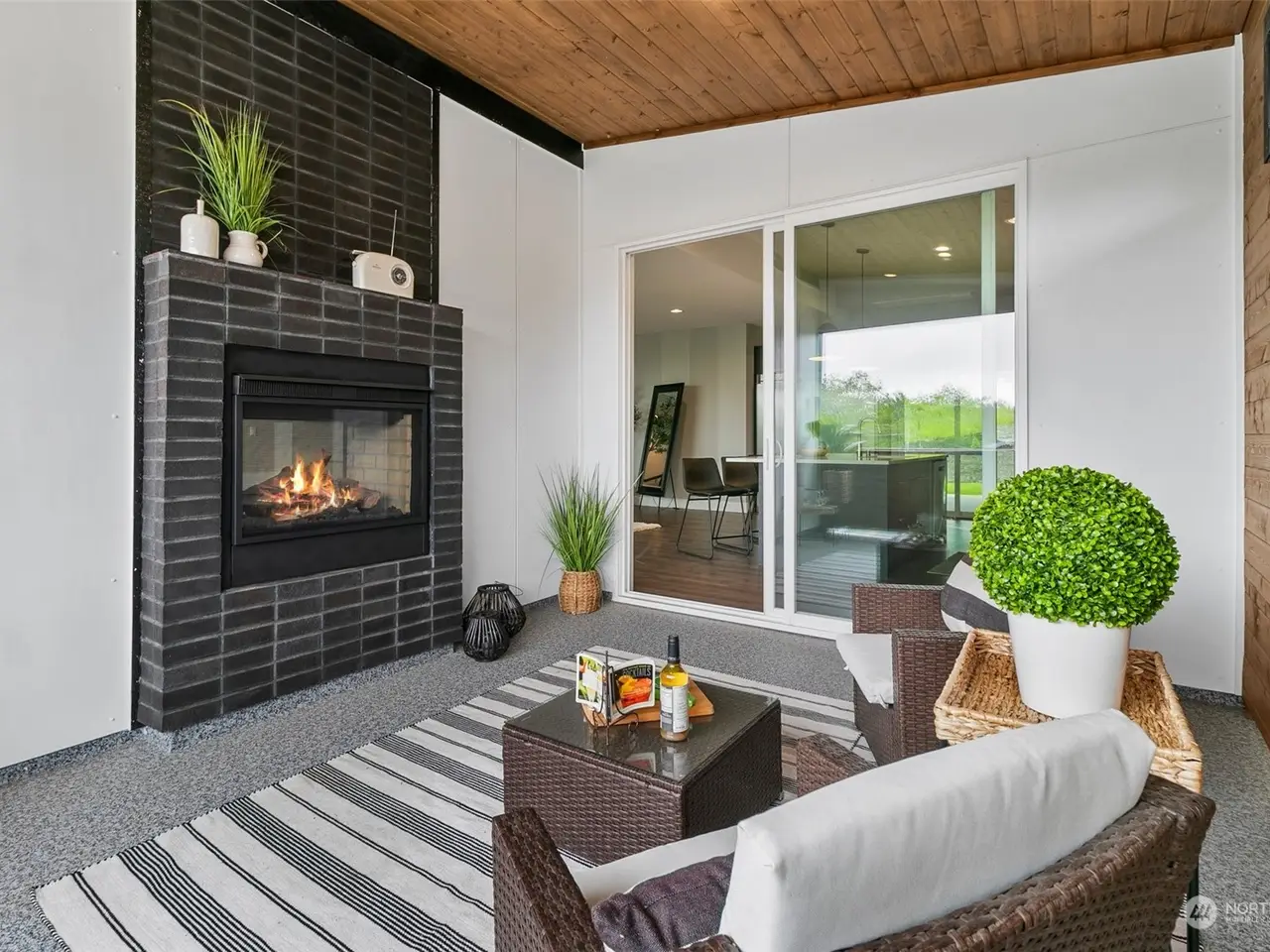 • Stone wrapped gas fireplace on patio
