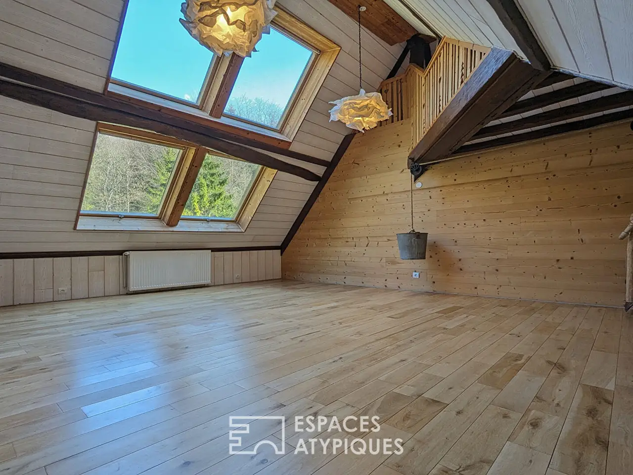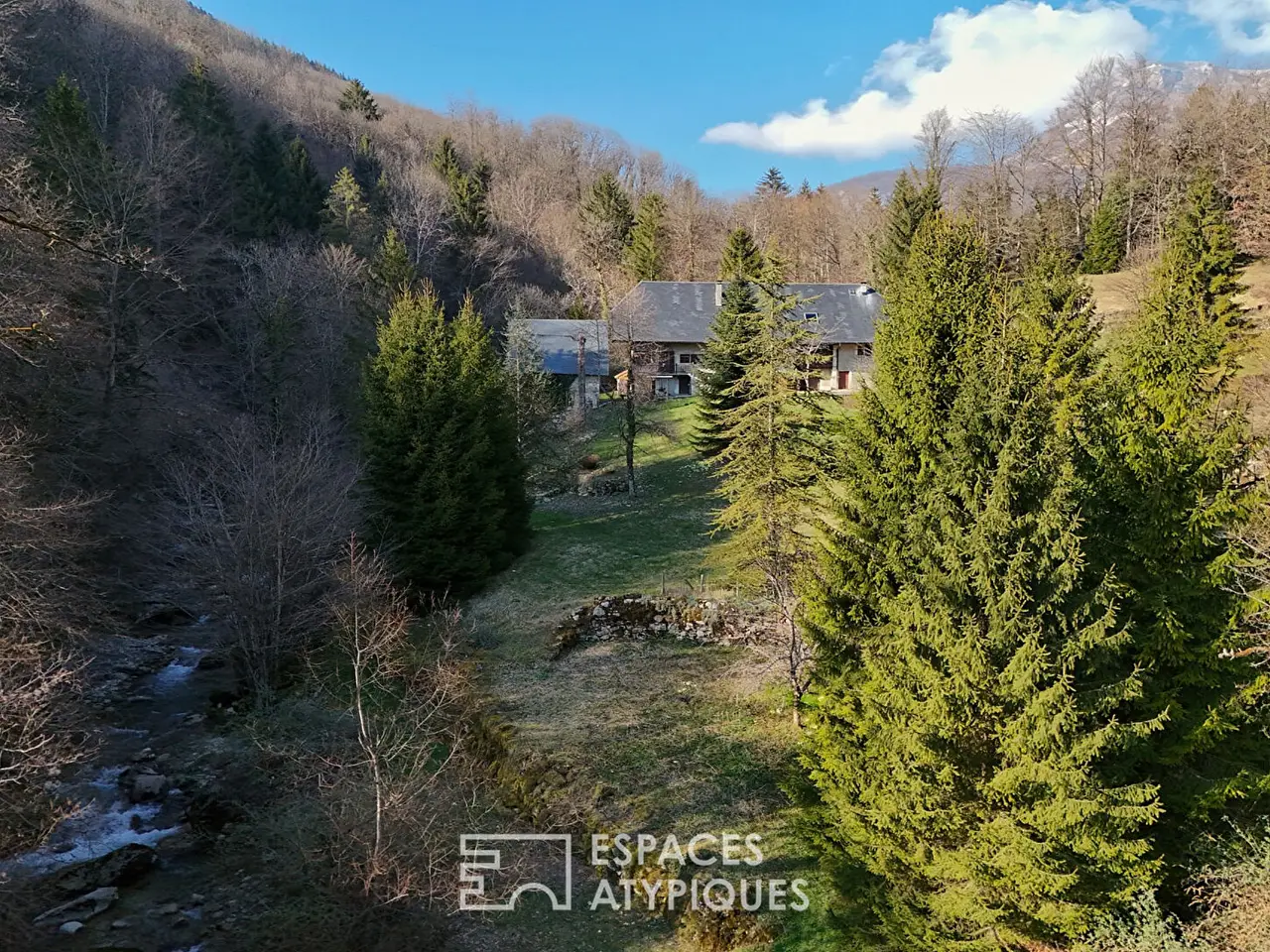 Steeped in history, this old mill, which was already mentioned in writings dating back to 1278, still stands proudly between its two rivers, continually lulled by the sound of the water. The remains of the period developments are still very present, testifying to the activities carried out for centuries, such as the miller's grindstones, the bread oven, and the sawmill and its equipment. The tireless research of the former owners has retraced the history of this exceptional heritage and highlighted a perpetual right to water. Crossed by the old millraces carrying water to the mill, the property extends over more than nine hectares in total, six of which adjoin the building. The main living area covers 340sqm Carrez law for a total surface area of 560sqm.On the garden level, a large French window illuminates a large living room with a kitchen open to the living room and a lounge, offering direct access to nature. This space has recently been renovated, highlighting period materials such as exposed stone walls, original studded old wooden doors, and an aged travertine floor that blends perfectly with the decor. Two bedrooms, a bright office space, and a bathroom complete this level. Upstairs, a huge attic room reveals magnificent volumes under the period wooden framework. In an exposed stone wall, a door opens onto a large bedroom with walls decorated with half-timbering and a precious wood floor. Opposite, behind a hidden door, hides a majestic and luminous attic room, whose roof openings provide a magnificent view of nature. This space encourages zenitude and its generous surface area could easily accommodate relaxing activities. A surprise awaits the children! In the west part of the house, a space comprising a living room/kitchen, a lounge, and a bedroom, can be separated from the rest of the house to accommodate guests in complete independence.On the courtyard level, a large basement includes a boiler room, a workshop, a wine cellar, a summer kitchen, a vaulted cellar and a space for a period bread oven that could still be functional.A large courtyard on the south side of the house is decorated with an old stone basin continuously supplied by water from the private spring and gives access to a separate garage.In the annex, a first stone building with a vaulted basement served as a workshop and forge, the upper floor has been converted.Finally, on the edge of the river, a 120sqm building houses an old sawmill, some of whose equipment bears witness to past activity. Passionate about history, heritage and tranquility, do not hold back.ENERGY CLASS: D / CLIMATE CLASS: CEstimated average amount of annual energy expenditure for standard use, established from energy prices for the year 2024: between 6,080 Euros and 8,290 Euros.Information on the risks to which this property is exposed is available on the Georisques website: www.georisques.gouv.fr.REF. 2006EAAdditional information* 11 rooms* 5 bedrooms* 2 bathrooms* 1 bathroom* 2 floors in the building* Property tax : 663 €Energy Performance CertificatePrimary energy consumptiond : 248 kWh/m2.yearHigh performance housing*A*B*C*248kWh/m2.year27*kg CO2/m2.yearD*E*F*GExtremely poor housing performance* Of which greenhouse gas emissionsc : 27 kg CO2/m2.yearLow CO2 emissions*A*B*27kg CO2/m2.yearC*D*E*F*GVery high CO2 emissionsEstimated average annual energy costs for standard use, indexed to specific years 2021, 2022, 2023 : between 6080 € and 8290 € Subscription