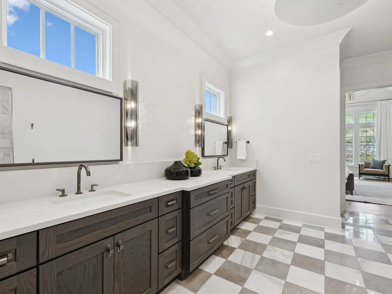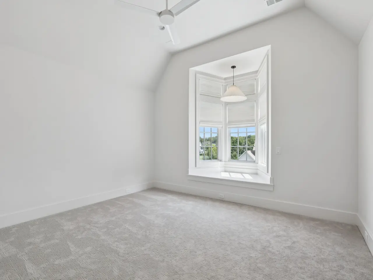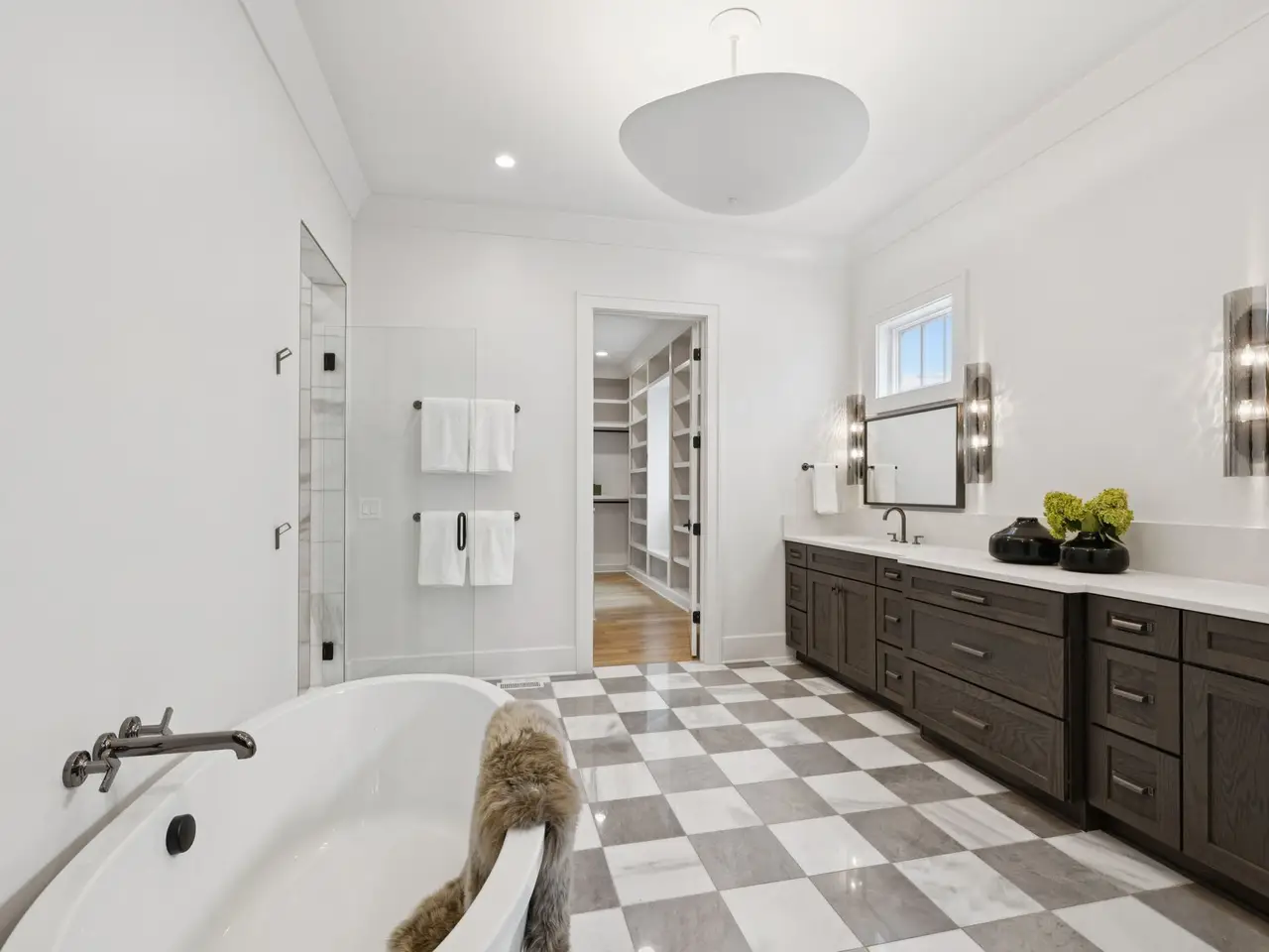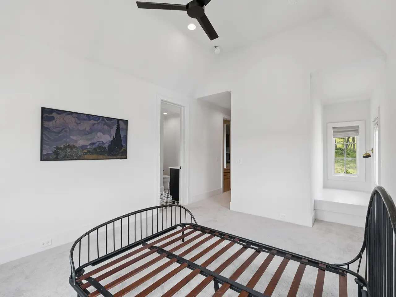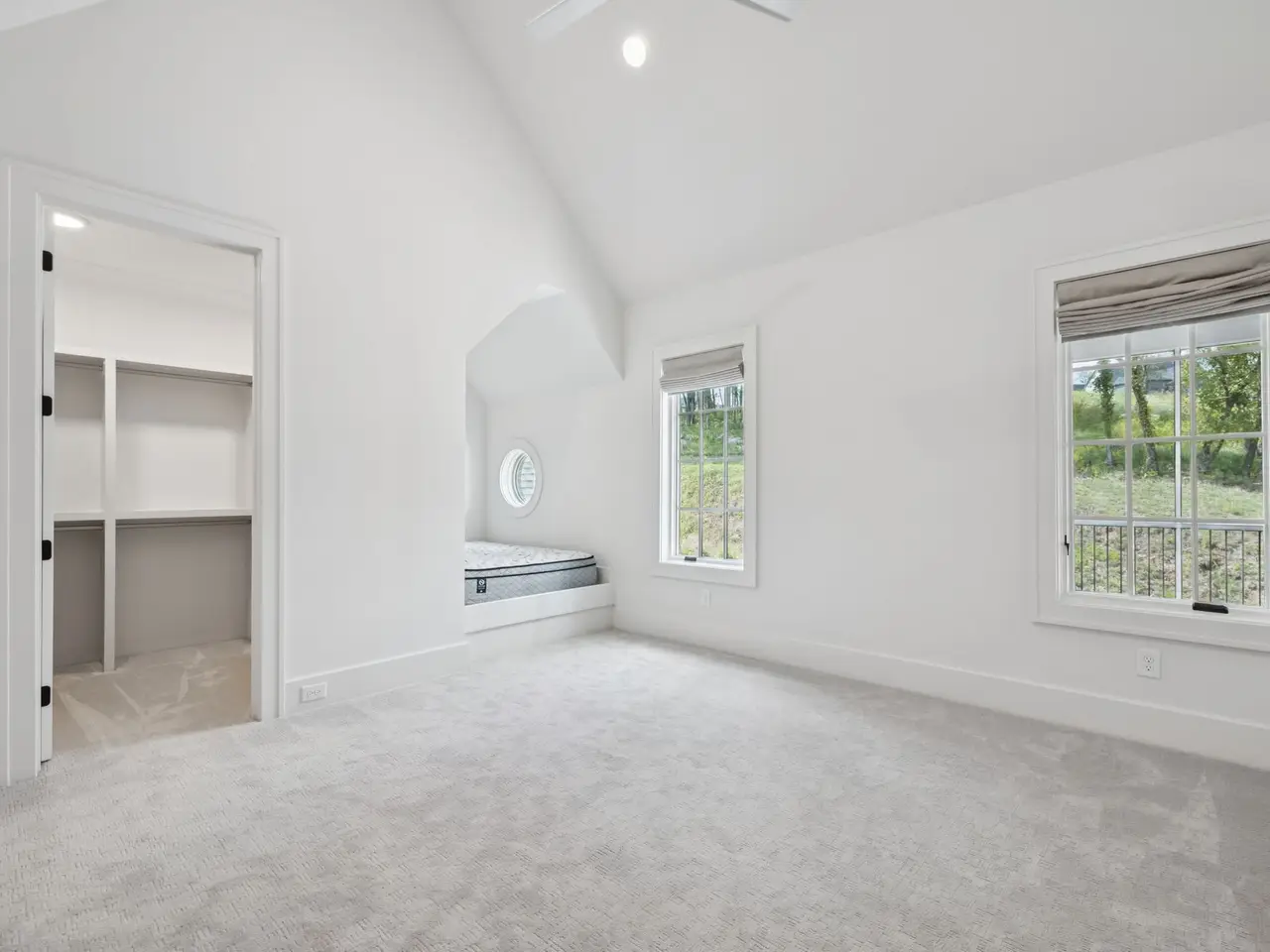 Vaulted primary suite with spa-like bath