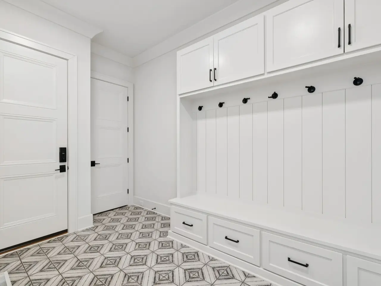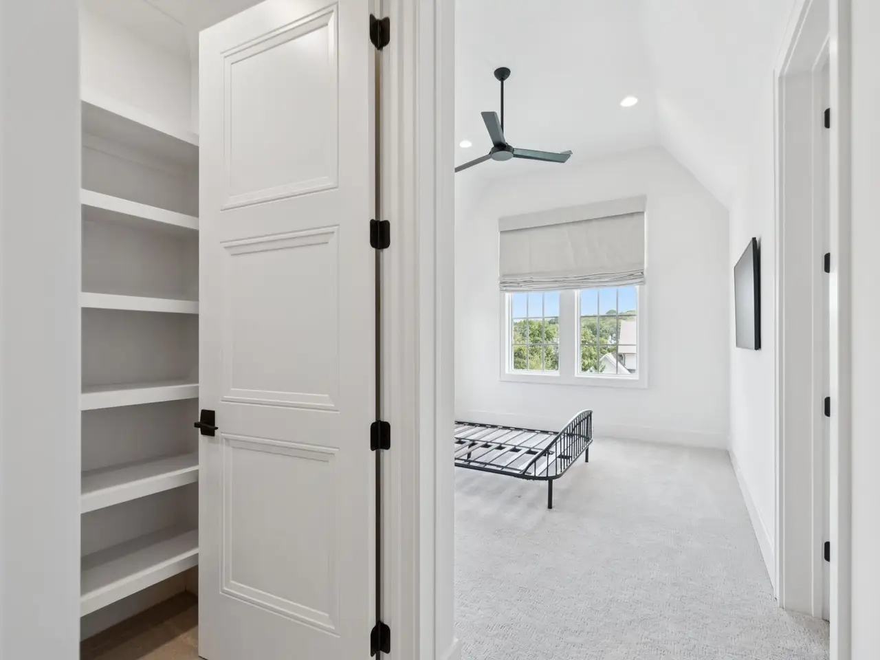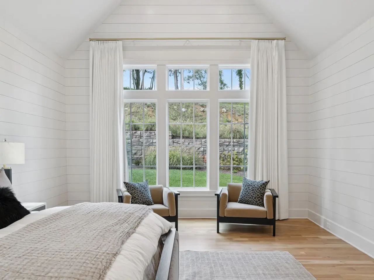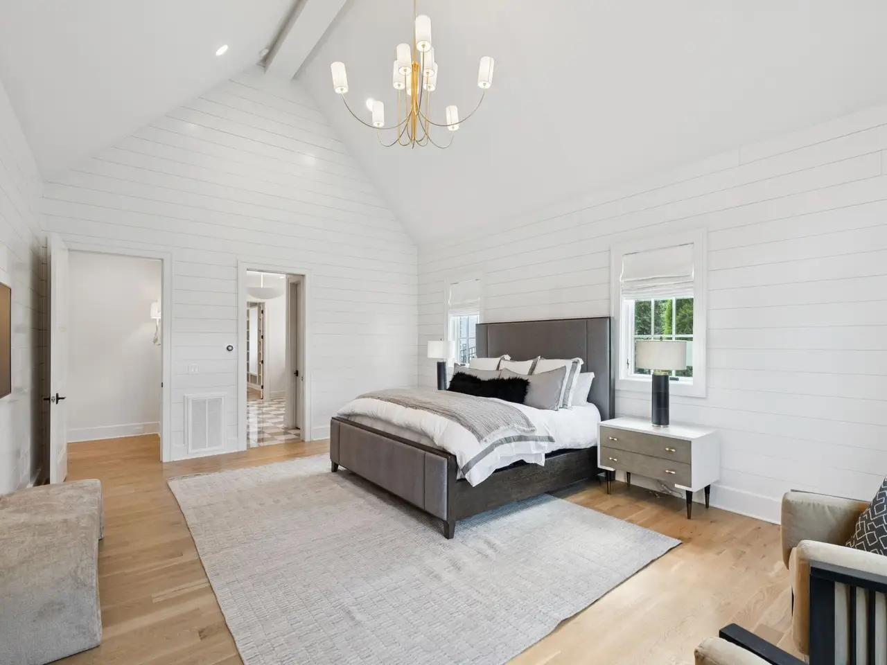 Shiplap accents in primary suite