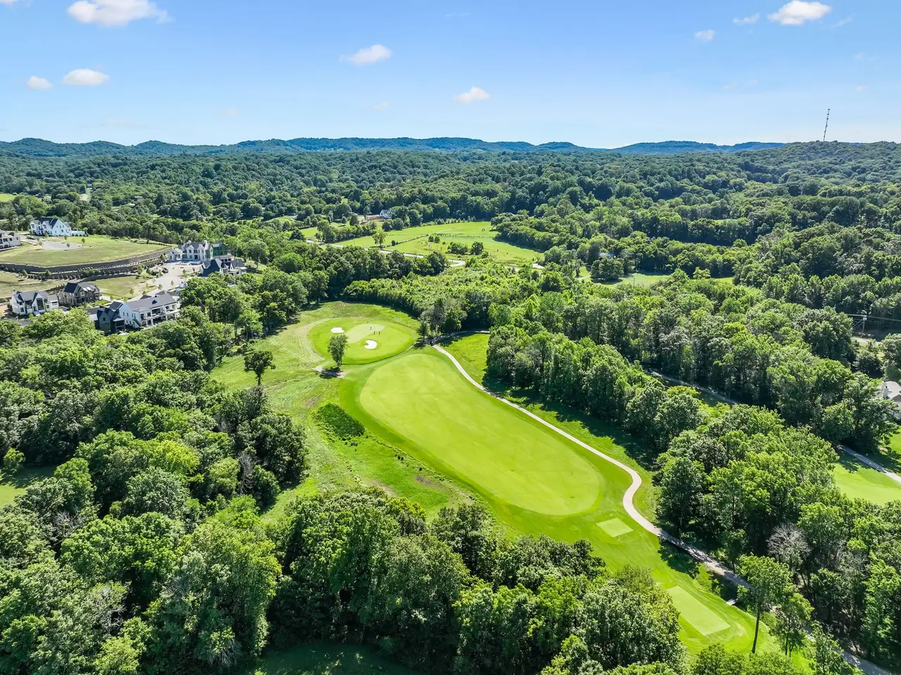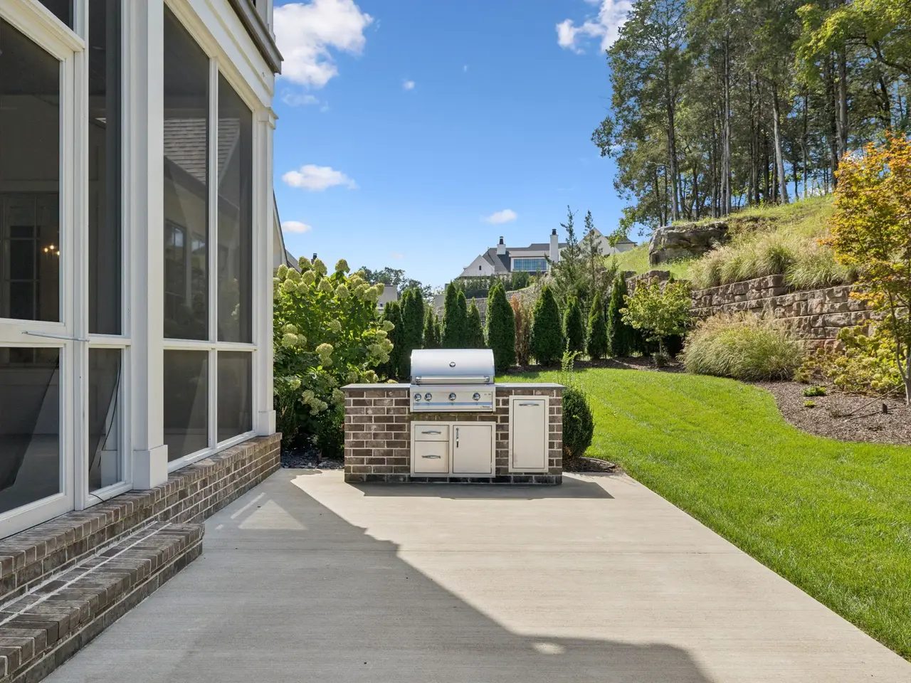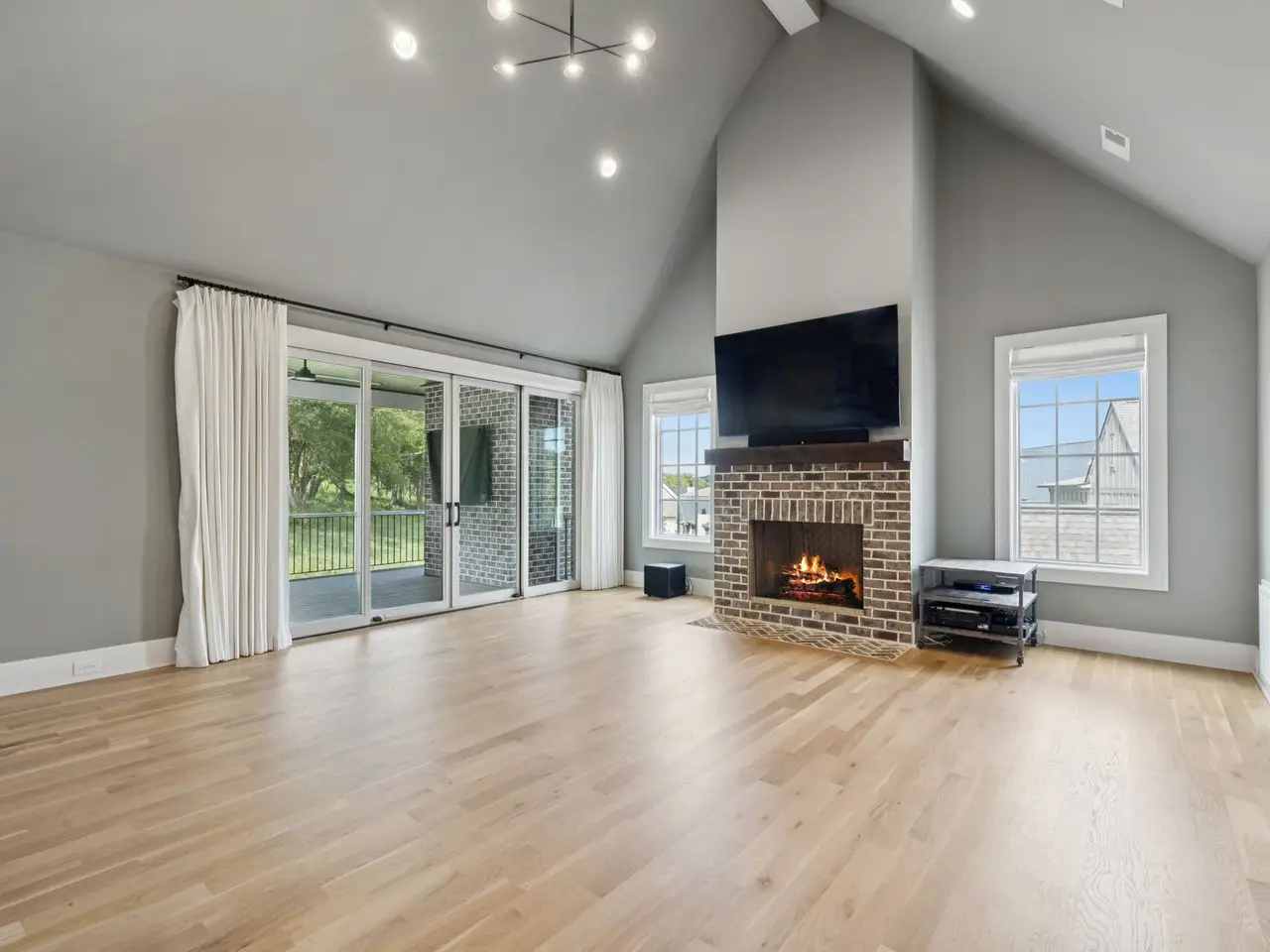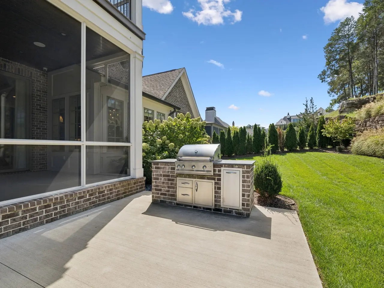 Gorgeous modern Tudor-style brick home in The Grove, one of Middle Tennessee's most sought-after gated communities. Offering resort-style living, residents enjoy a world-class spa, clubhouse, Greg Norman Signature golf course, fishing lakes, fine and casual dining, racquet courts, equestrian facilities, sports fields, walking trails, and multiple pools. Step inside to a welcoming foyer that leads to a private office with custom built-ins and wainscoting, accented by designer lighting. A stylish wet bar with paneled Thermador wine fridges and an ice maker sets the stage for effortless entertaining. The open-concept living room is anchored by a brick fireplace with custom cabinetry, flowing seamlessly into a chef's kitchen with custom-panel appliances, pull-out cabinet drawers, and a sink equipped with filtered water and instant hot water. A generous pantry with open shelving and cabinetry provides both storage and prep space. The vaulted primary suite is a retreat with shiplap accents, a spa-like bath featuring a soaking tub, a floor-to-ceiling tile shower, checkered tile flooring, and a walk-in closet with center vanity. A guest suite with private bath and powder room complete the main level. Upstairs, a vaulted rec room with surround sound and fireplace opens to a screened porch--perfect for game nights or relaxed evenings. Enjoy Tennessee living year-round with a peaceful backyard featuring a screened porch with wood-burning fireplace, built-in gas grill, and patio with room for a future pool. Additional highlights include custom draperies, a sealed crawl space, and convenient access just two minutes from the back gate. Blending timeless design with modern luxury, this home offers both elegance and comfort in a community where every day feels like a getaway.
