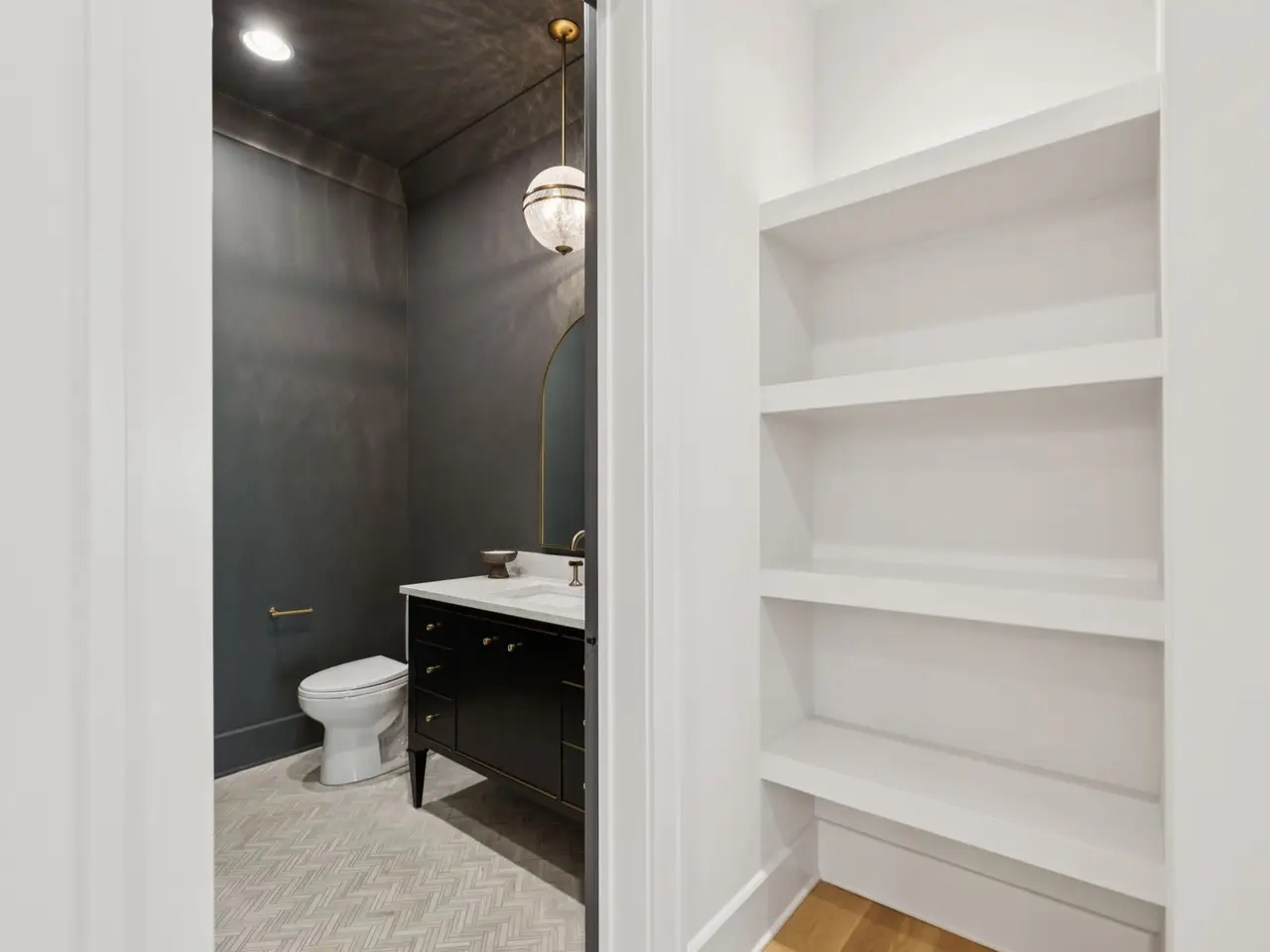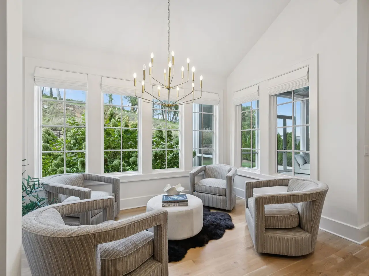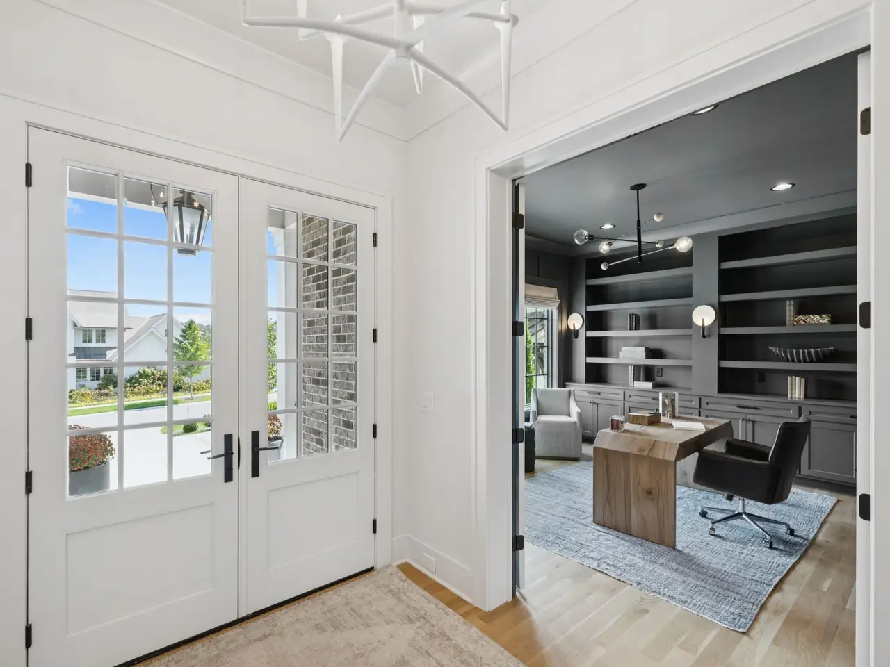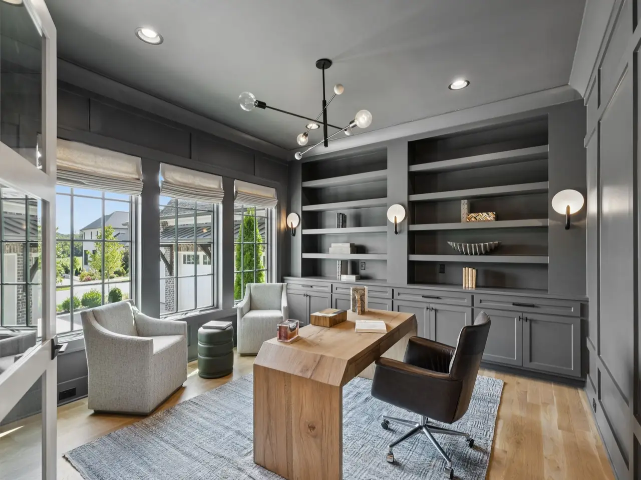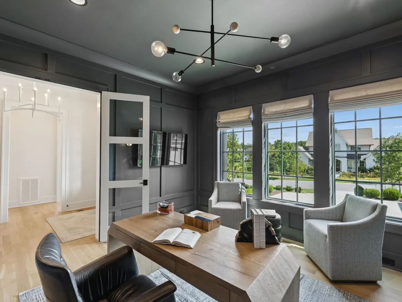Gorgeous modern Tudor-style brick home in The Grove, one of Middle Tennessee's most sought-after gated communities. Offering resort-style living, residents enjoy a world-class spa, clubhouse, Greg Norman Signature golf course, fishing lakes, fine and casual dining, racquet courts, equestrian facilities, sports fields, walking trails, and multiple pools. Step inside to a welcoming foyer that leads to a private office with custom built-ins and wainscoting, accented by designer lighting. A stylish wet bar with paneled Thermador wine fridges and an ice maker sets the stage for effortless entertaining. The open-concept living room is anchored by a brick fireplace with custom cabinetry, flowing seamlessly into a chef's kitchen with custom-panel appliances, pull-out cabinet drawers, and a sink equipped with filtered water and instant hot water. A generous pantry with open shelving and cabinetry provides both storage and prep space. The vaulted primary suite is a retreat with shiplap accents, a spa-like bath featuring a soaking tub, a floor-to-ceiling tile shower, checkered tile flooring, and a walk-in closet with center vanity. A guest suite with private bath and powder room complete the main level. Upstairs, a vaulted rec room with surround sound and fireplace opens to a screened porch--perfect for game nights or relaxed evenings. Enjoy Tennessee living year-round with a peaceful backyard featuring a screened porch with wood-burning fireplace, built-in gas grill, and patio with room for a future pool. Additional highlights include custom draperies, a sealed crawl space, and convenient access just two minutes from the back gate. Blending timeless design with modern luxury, this home offers both elegance and comfort in a community where every day feels like a getaway.