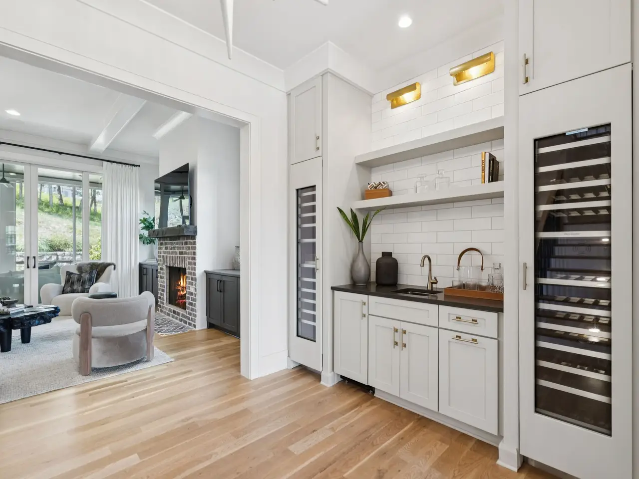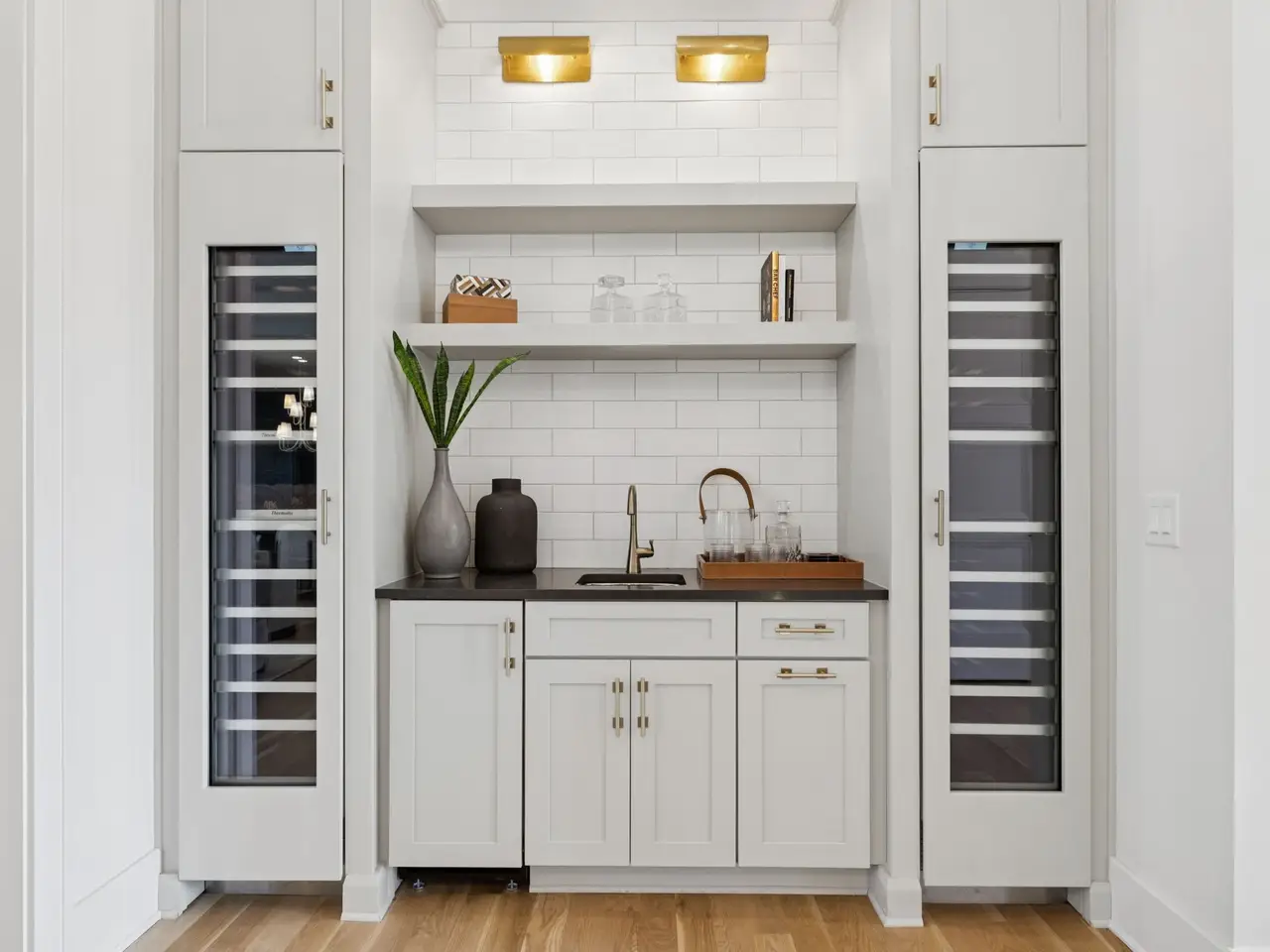 Stylish wet bar with Thermador wine fridges