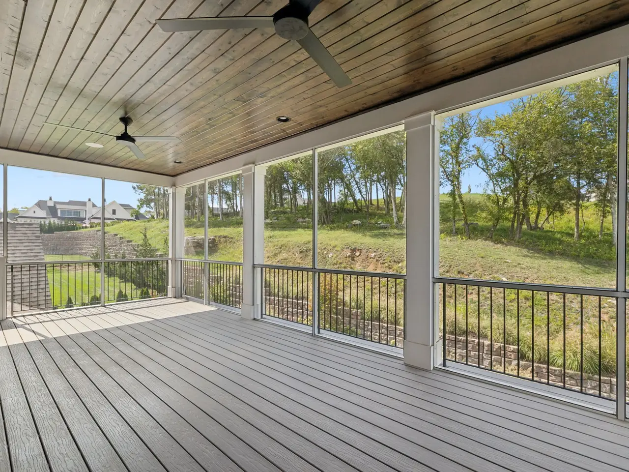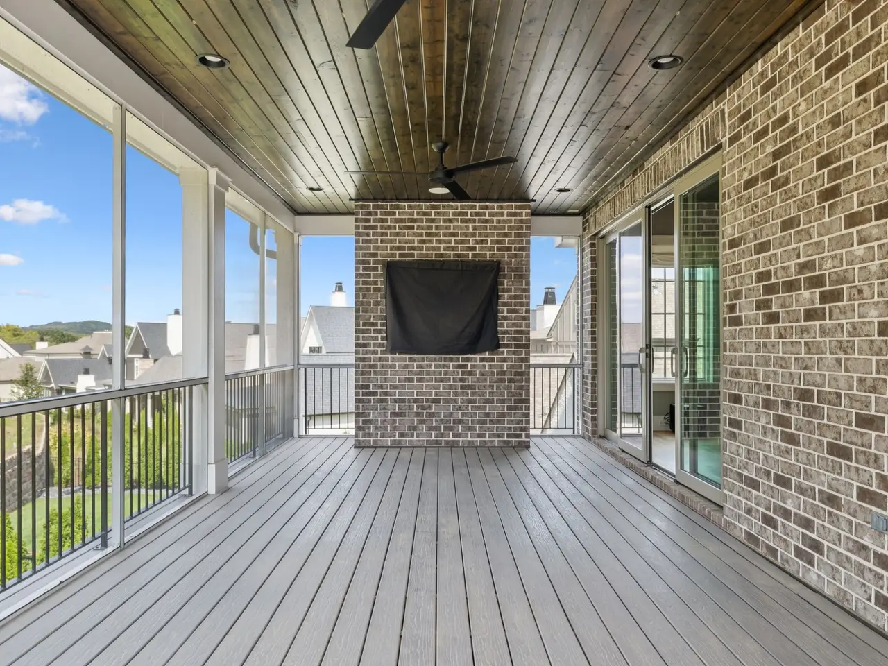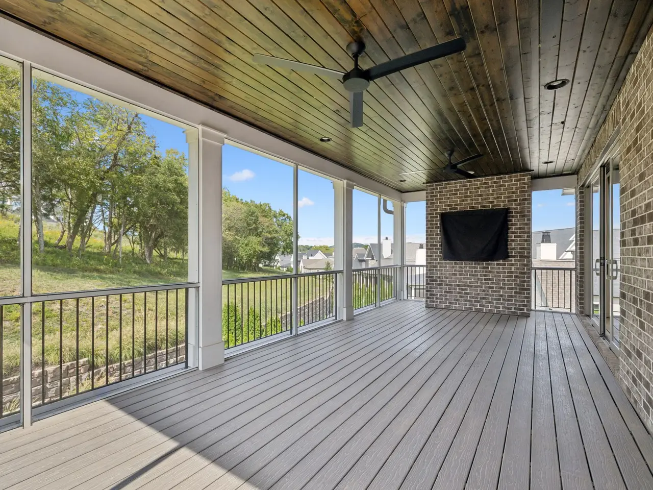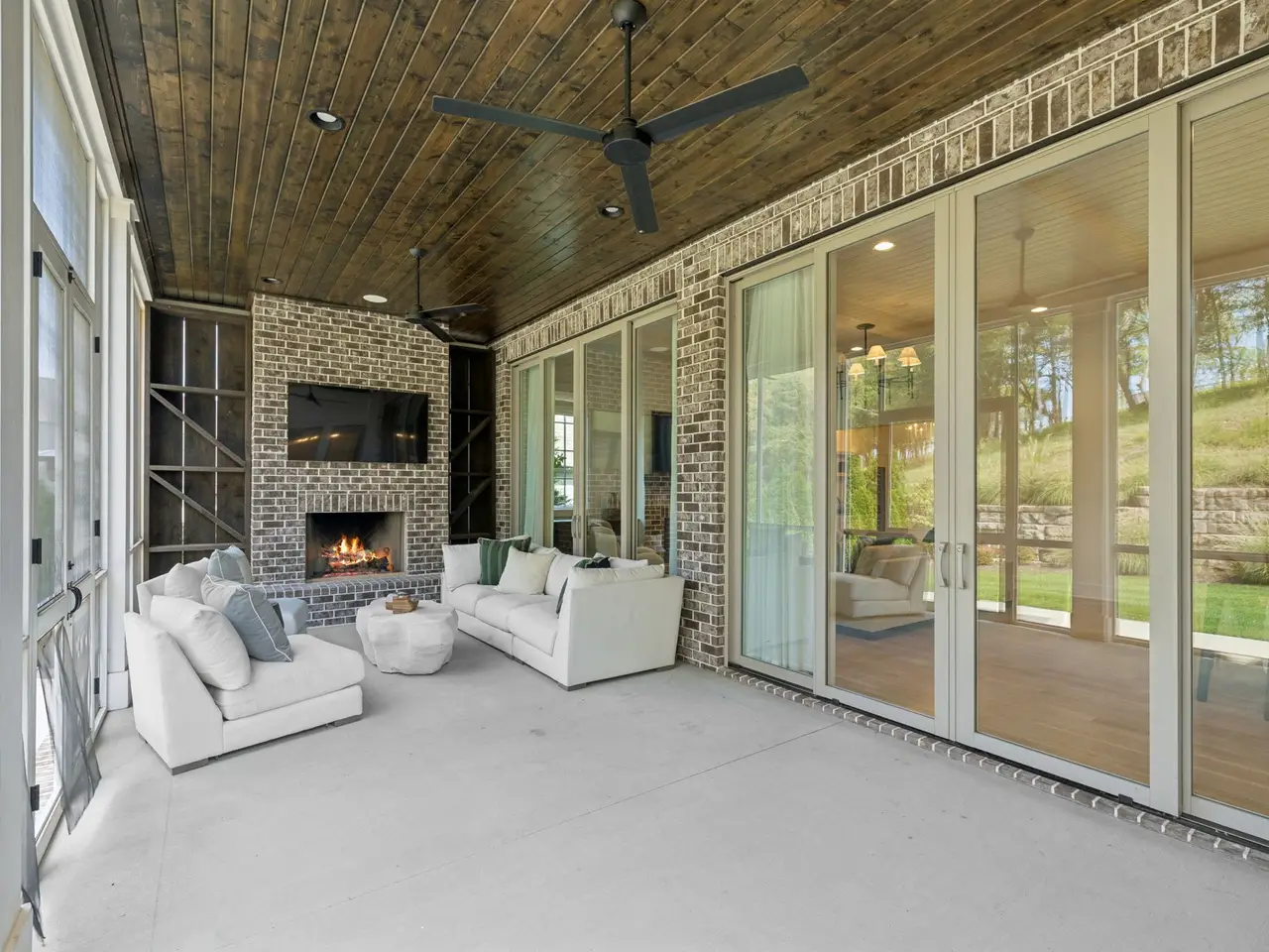 Screened porch with wood-burning fireplace