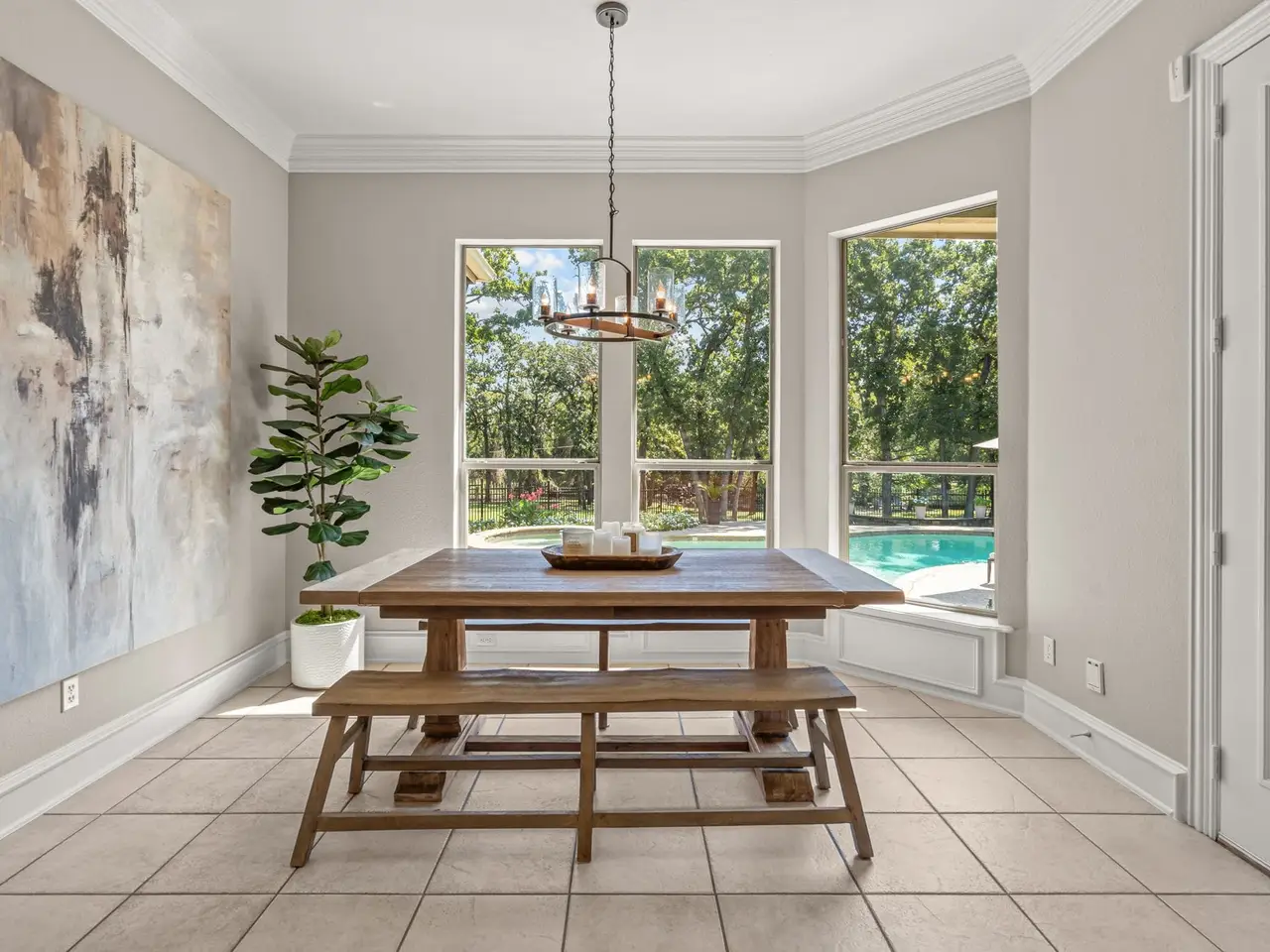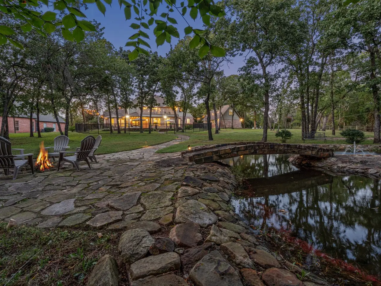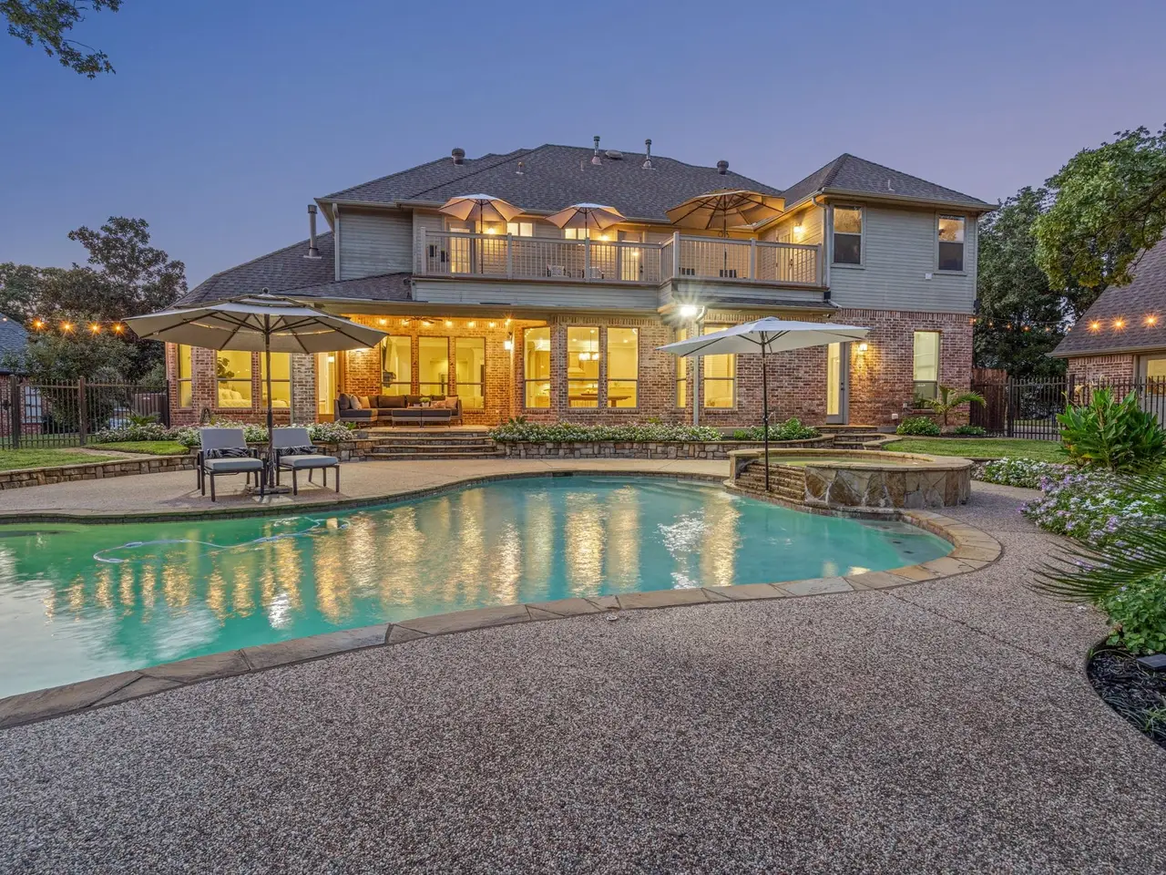 Stunning home in highly desirable Fox Hollow, situated on a peaceful 1-acre cul-de-sac lot surrounded by mature trees and beautifully landscaped grounds. Zoned to the exemplary Carroll ISD, this exceptional residence combines luxury, comfort, and functionality. Inside, youll find 5 spacious bedrooms, 5 full baths, an executive study with custom built-ins, an upstairs game room, a media room complete with wet bar and balcony access and an impressive 5 CAR GARAGE, 3 attached and 2 detached, perfect for car enthusiasts or additional storage. The gourmet kitchen is a chefs dream, featuring extensive cabinetry, a new gas cooktop, new double ovens, a large island and a breakfast bar that opens to the inviting family room with stunning views of the backyard. The primary suite is a private retreat with a spa-inspired bath including dual vanities, a glass-enclosed shower, a freestanding jetted tub and an oversized walk-in closet with built-ins. The backyard is like a private park, featuring a sparkling pool and spa, a tranquil pond stocked with fish and a cascading waterfall, multiple lounging areas and a cozy firepit for cool Texas evenings. Additional highlights include a well for irrigation and a new roof in 2021.