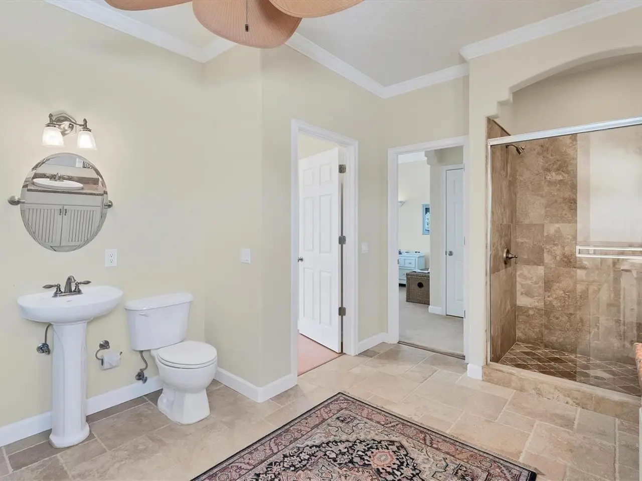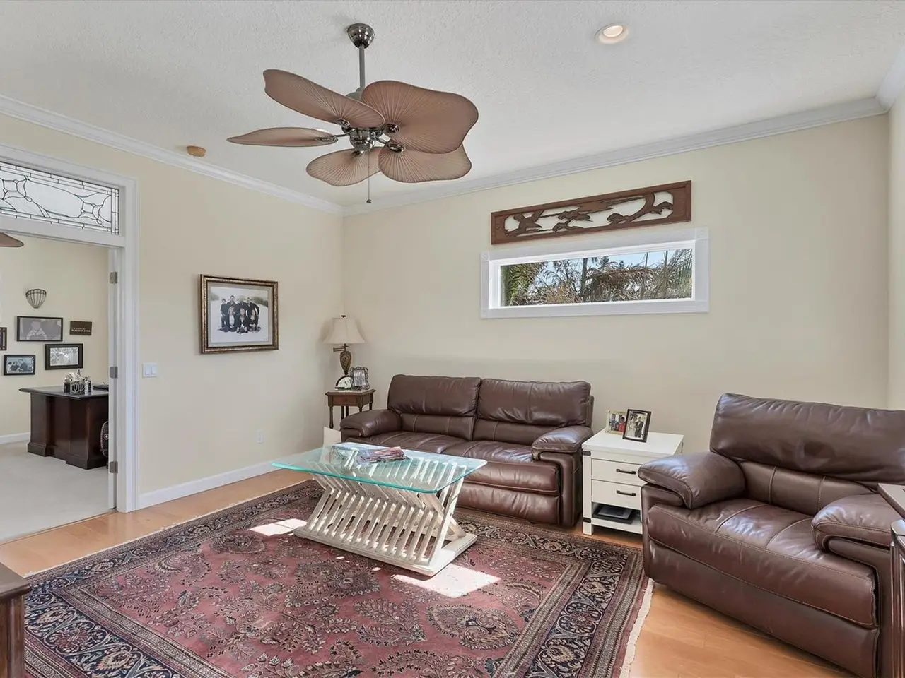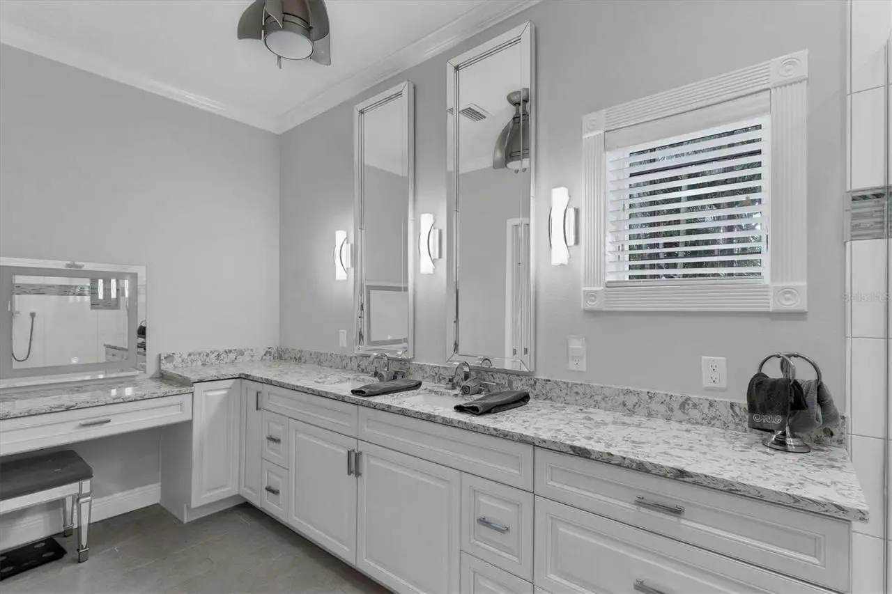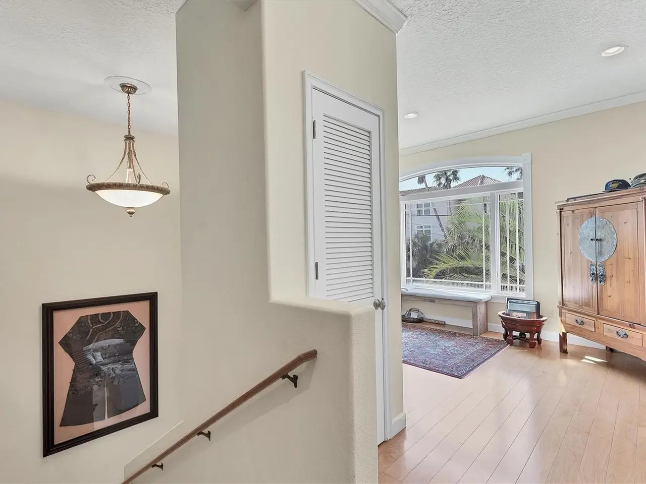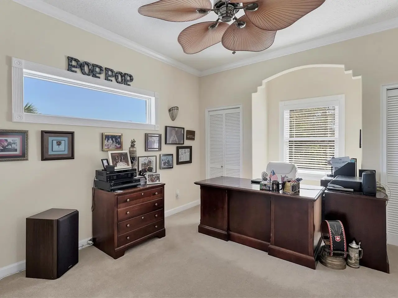 Location, location, location! This beautiful custom home in West Wind Shores is just across the street from the beach and minutes from Anna Maria Island. With an oasis-like backyard and swimming pool, this property offers the ultimate coastal lifestyle. Custom features abound, including high ceilings, arched entryways, travertine flooring, plantation shutters, 5-inch baseboards, recessed lighting, and large walk-in closets. As you enter through the front French doors, you're greeted by a cozy main living area complete with a gas fireplace. To the right, a versatile bonus space awaits, ideal for a dining area or hobby room. The thoughtfully designed split floor plan flows seamlessly, offering two primary bedrooms-one on each floor. The kitchen is a chef's delight, featuring granite countertops, custom cabinetry, newer Bosch appliances, including a Wolf gas stovetop with electric Wolf oven (rare on the island), a breakfast bar with pendant lighting, a glass-tiled backsplash, a wine refrigerator, and elegant travertine flooring. The downstairs primary suite overlooks the pool and offers ample space and luxurious details, including an oversized marble-tiled shower with a glass enclosure, dual sinks, extra storage, and a makeup/dressing table. Upstairs, the second primary suite boasts a large walk-in closet, an ensuite bath, and double doors leading to a loft area with large, picturesque windows that invite you to relax with a book in the afternoon light. The third bedroom is currently being used as an office, complete with built-in bookshelves and a Murphy bed for added flexibility. Sliding glass doors lead to a backyard oasis featuring palm trees, a pergola, a partially covered paver patio, and a completely fenced-in yard. The heated pool and outdoor kitchen, complete with a gas fireplace, create the perfect setting for entertaining. The space is wired for cable, allowing you to enjoy your favorite games while lounging or barbecuing. For pet lovers, there is a separate fenced area and a convenient storage shed. This custom home combines luxury, comfort, and an unbeatable location near the beach and Anna Maria Island. Convenient and complimentary trolley across the street. Walk across the street for sunset every night on the other side of a tall building complex. Don't miss your chance to own this coastal retreat