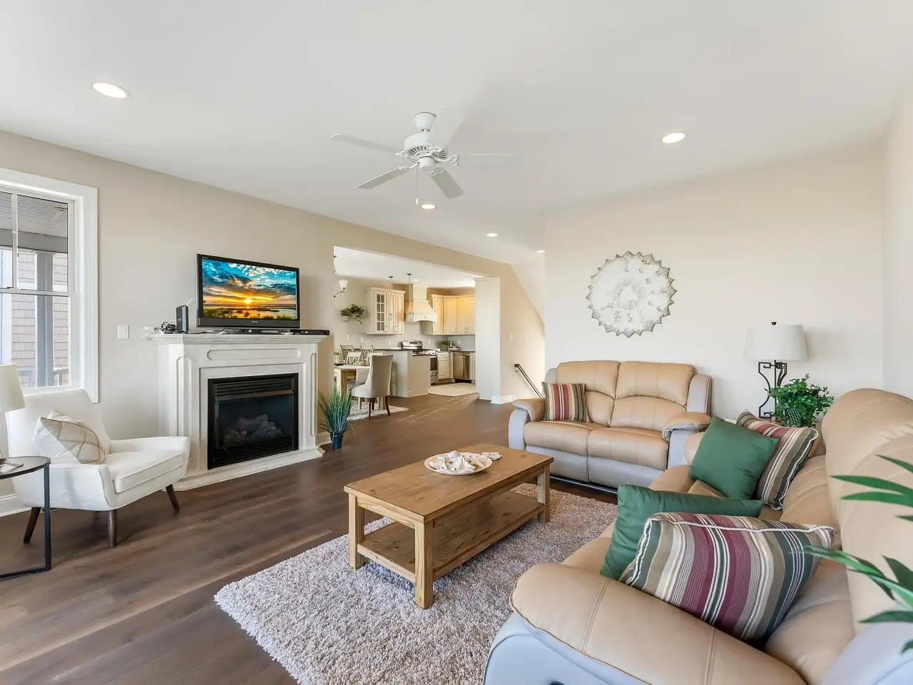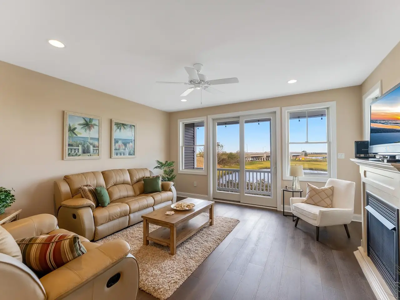Welcome to Your Sanctuary at the Shore! This meticulously maintained townhome is being offered fully furnished and offers the perfect blend of style, comfort, and functionality, making it an ideal retreat for both entertaining and quiet relaxation. Nestled near the picturesque Intracoastal Waterway, this home is designed for effortless coastal living. Step inside to a spacious living room featuring a cozy gas fireplace, perfect for gathering on cool evenings. The open-concept layout flows seamlessly into the dining area and upgraded kitchen, where culinary enthusiasts will love the custom 42-inch maple cabinetry with crown molding and soft-close features. Granite countertops provide ample space for meal preparation and entertaining. The stainless appliances have barely been used and are in immaculate condition. A conveniently located half bath enhances functionality on this level, while sliding doors open to a private deck-the perfect spot for morning coffee or evening cocktails while enjoying breathtaking sunsets. On the first floor, you'll find an expansive primary suite designed for comfort and privacy, complete with a full bathroom and sliding doors leading to a peaceful deck. The third floor features three additional spacious bedrooms, including a generous ensuite with a private bath. Two of these bedrooms open to decks with stunning Intracoastal views and spectacular sunsets. A full hall bathroom, convenient laundry area, and a large walk-in closet complete this level. All full bathrooms are finished with custom tile showers and flooring, adding to the luxurious feel throughout. Enjoy outdoor living with private balconies on each level, perfect for savoring sunrises, sunsets, or hosting dinner parties. Elegant oak staircases and hardwood flooring throughout the main living areas add sophistication, while practical features such as a one-car garage, driveway parking, and ample street parking provide convenience for you and your guests. Modern upgrades include a high-efficiency 2-zone AFUE Trane HVAC system and a Bradford White 75-gallon gas water heater with a quick-recovery pump for year-round comfort. The exterior is equally impressive, featuring CertainTeed siding, Trex stairs, and Anderson premium vinyl windows and sliding doors. An outdoor shower and irrigation system make beach days and lawn care easy. Located just moments from the beach, boardwalk, and popular local restaurants, this townhome offers the perfect balance of space, style, and seaside serenity-ideal for both full-time living and vacation getaways. Come experience coastal living at its finest and make this exceptional property your new home today! Owner is a PA-licensed Realtor.