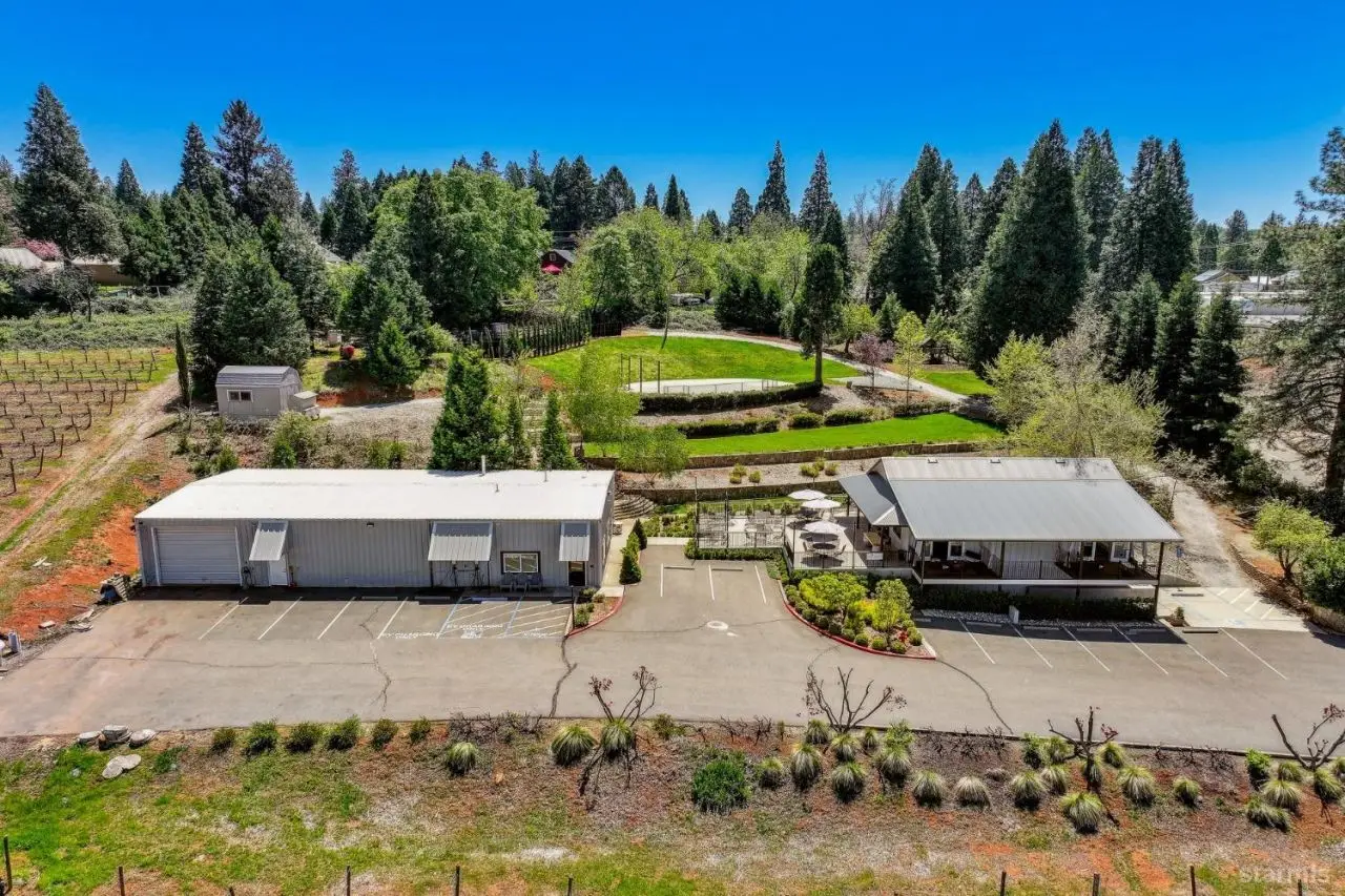 Discover a stunning 20-acre winery estate in the heart of Apple Hill, two 10 acre parcels, offering endless possibilities for unforgettable weddings and events. This versatile property combines rustic charm with modern amenities, ideal for hosting celebrations, crafting artisanal wines, and creating lasting memories. Parcel 1: Commercial + Vineyards. This parcel features a meticulously renovated commercial complex, including: Winery (3,200 sqft): A state-of-the-art facility with a remodeled tasting room, ADA-compliant restrooms, office space, and a refined barrel room, blending functionality with elegance. Event Space (1,480 sqft): A newly built space boasting a fully equipped commercial kitchen, new offices, ADA-compliant restrooms, potential bridal suites, changing rooms, ample storage, an 808 sqft deck, and a spacious patio with sweeping views of the 20-acre estate. Speakeasy Pub (785 sqft): A discreetly designed venue for intimate gatherings, adding a touch of exclusivity to events. Parcel 2: Residential + Vineyards A beautifully maintained 3-bedroom, 2-bathroom home provides a cozy retreat or potential accommodations for event hosts or guests, nestled within 10 acres of Vineyard. Spanning 16.4 acres of vineyards, the property cultivates grape varieties such as Cabernet Franc, Merlot, Picpoul, Lagrein, Syrah, and newly planted Nero d'Avola, producing wines that reflect the region's terroir. Multiple outdoor spaces, framed by rolling hills, vineyards, and towering pines, create an enchanting backdrop for private events, from grand weddings to intimate gatherings. Located just minutes from HWY 50, between Sacramento and Lake Tahoe, this venue offers ample parking and seamless accessibility for events of all sizes. Beloved by locals and visitors alike, this extraordinary estate weaves passion and beauty into every celebration, making it the perfect setting for weddings, private events, and more.