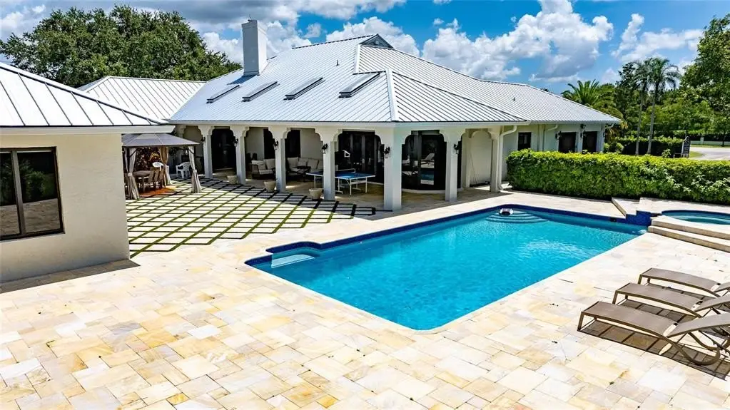 Sited on nearly 2-acres in the Estate Section, this 8,084± total sq ft residence with guest house offers the ultimate rural retreat. Updated with a sophisticated modern European aesthetic, this 4-Bedroom residence & separate 2-bedroom guest house, complete with a full kitchen, living & laundry, is perfect for hosting visiting family/guests. Luxe chef's kitchen, with adjoining pool-view breakfast room, has work island & dining extension, finished with exotic zebra-wood cabinetry & professional-grade appliances. The master suite offers pool-courtyard access, a spa-like quartz bathroom with jetted tub, double vanities, walk-in shower, separate steam room & water closet. Privately hedged & gated this estate appeals to equestrians, nature enthusiasts, and VIP's seeking privacy. 2024 Metal Roof.
