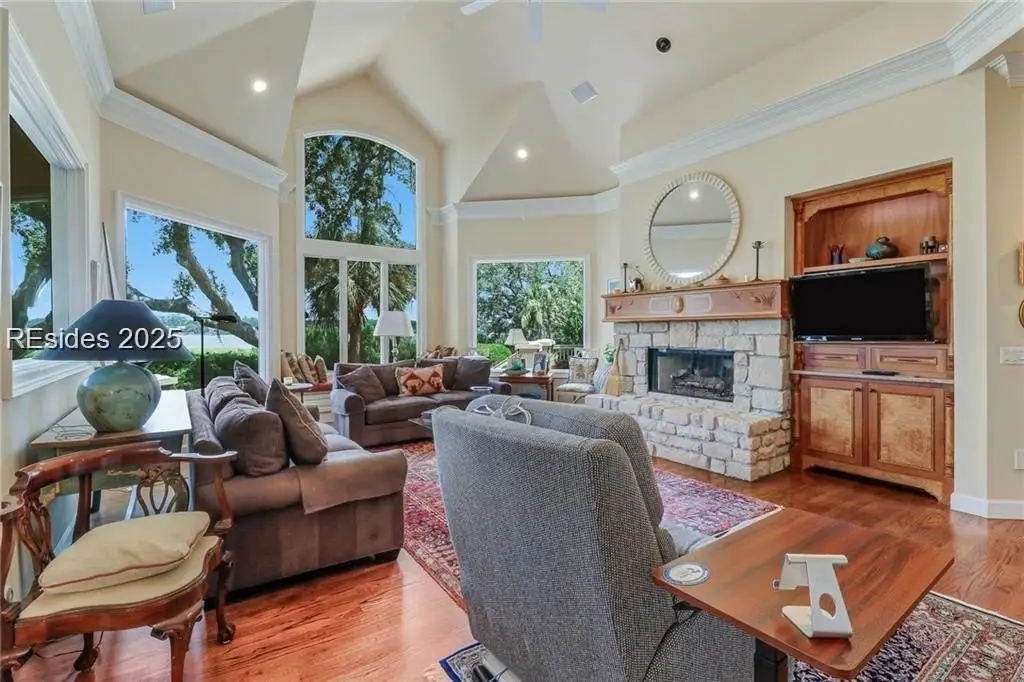 Discover timeless elegance in this exceptional Long Cove residence—first time on the market. Situated on one of the finest homesites in the community, this property overlooks Broad Creek, the marsh, and the 14th green of the Pete Dye Golf Course. The home features 5 spacious ensuite bedrooms, including a first-floor primary suite. Enjoy several living areas, a home office with detailed woodworking, and two upstairs bedrooms that open to a balcony & beautiful water view. Outdoor spaces shine with a screened porch, tiered decks, custom pool and amazing sunsets over the water. New roof (2023), 3-car garage, and just a short walk to the marina!