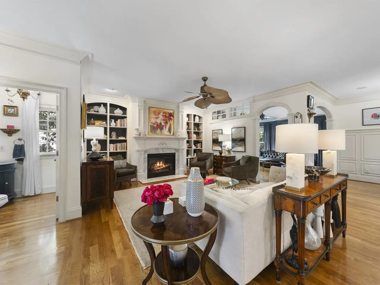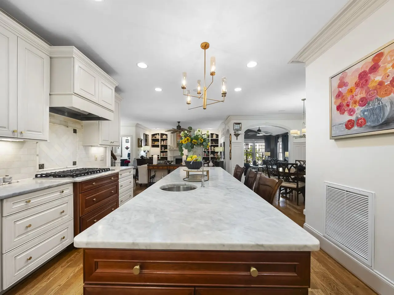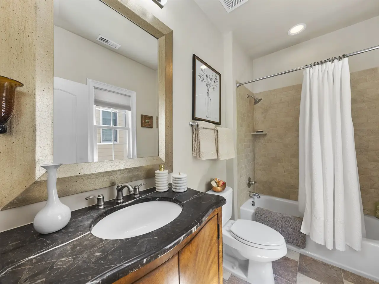Imagine a custom-built home where every detail feels intentional crafted with care and refined by timeless designer taste. This rare opportunity in Village Square at Amberly offers designer luxury seamlessly paired with the everyday ease of a walkable, amenity-rich community. Step inside and you'll find soaring ceilings, custom millwork, and curated finishes that elevate each space. The kitchen is a statement in itself, with marble counters and backsplash, a Viking range, and double ovens where beauty meets performance. It's more than a kitchen. It's a showpiece. Every room reflects a balance of sophistication and comfort, creating spaces equally suited for lively gatherings and quiet family moments. Outdoors, the home feels like a private retreat, with a brick courtyard and secret gardens that create a sense of secluded charm rarely found in a neighborhood setting. A screened porch extends your living space into the open air year-round. Beyond your door, Village Square at Amberly delivers the lifestyle you crave morning coffee, dining out, pools, fitness, playgrounds, even a dog park all just a short stroll away. Designer homes that offer both privacy and community are rare. This one is waiting for you.