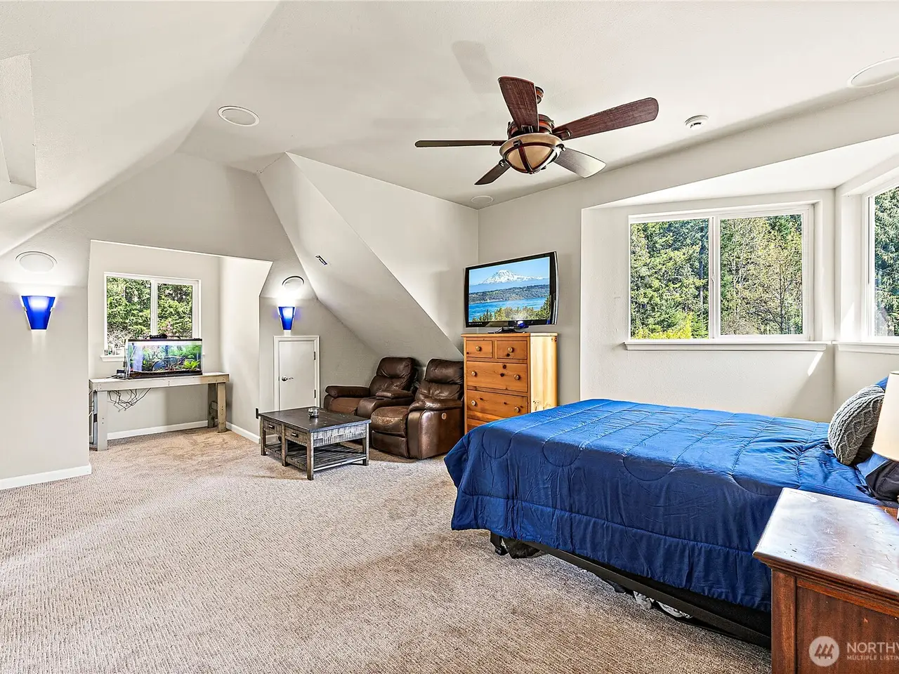 One-of-a-kind opportunity to live your homesteader dream--all within the Sumner Bonney Lake School District! This peaceful retreat on nearly five acres was thoughtfully designed to capture stunning views of Mt. Rainier from every bedroom. With four bedrooms--including a spacious primary suite with a private deck, soaking tub, and walk-in closet--and a second ensuite upstairs, plus a bonus room, there's space and flexibility for everyone. Enjoy two main-level decks, soaring ceilings, and large windows that flood the home with natural light. The finished walk-out basement includes a kitchenette, 3/4 bath & opens to a patio. A three-car garage, heat pump, garden space, established chicken coop, and RV parking complete this rare find--just minutes from town.
