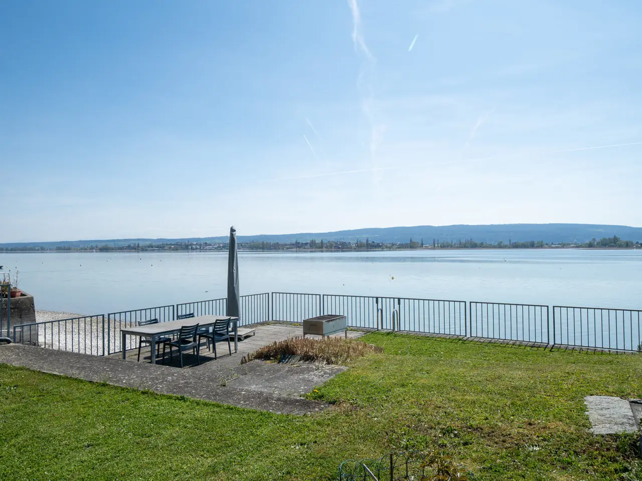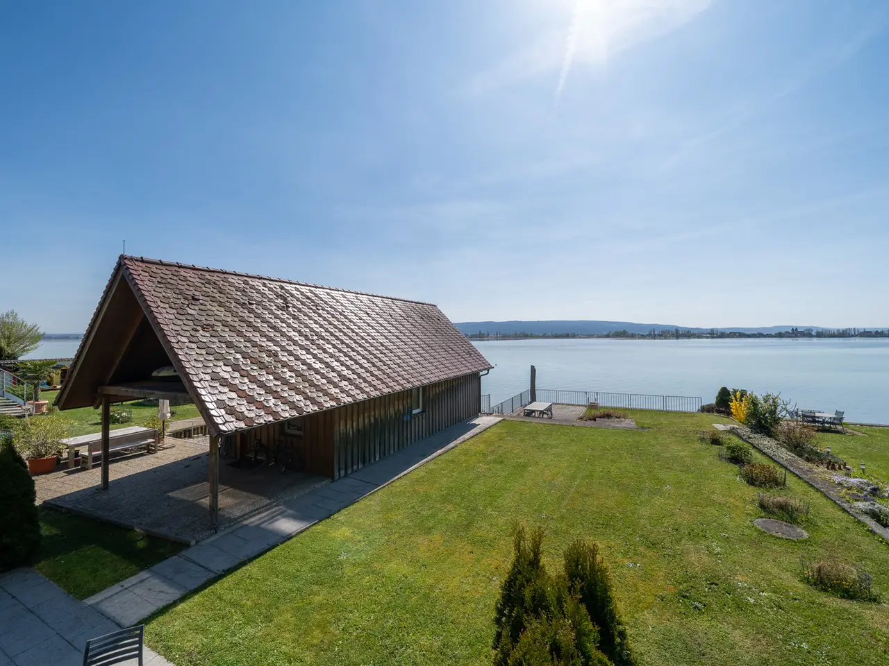 Our exceptionally beautiful property is a very rare lakeside plot of approx. 1,071 m² with direct lake access on the shores of Lake Constance. The property is developed with an exclusive detached house with approx. 302.56 m² of living space and a granny apartment and offers you a special living experience. Completed in 2005, the house impresses with its well thought-out room concept, high-quality furnishings and private lake access. The south-facing property has a total of 7 rooms, including 3 spacious bedrooms and 2 modern bathrooms that leave nothing to be desired. The layout of the rooms is ideal for couples or families who value comfort and spaciousness. The heart of the property is the bright, spacious living and dining area, which boasts an impressive view of Lake Constance. A wood-burning stove ensures cozy hours on cooler days. The open architecture and large window fronts guarantee plenty of natural light and a friendly atmosphere. Two fitted kitchens with integrated large kitchen appliances offer maximum cooking convenience in both the main unit and the separate granny apartment. The granny apartment is fully equipped and is ideal for guests or as an additional source of income through renting out. Another highlight are the three spacious balconies and terraces, one of which is directly connected to the apartment. They invite you to linger and enjoy the unique lake view. The shallow natural beach at the private access to the lake is particularly child-friendly and offers numerous leisure activities right on the doorstep. The modern heating system with underfloor heating ensures cozy warmth in all rooms and underlines the high-quality furnishings of the house. The construction quality, which meets the highest aesthetic and functional standards, makes this property in this exclusive location stand out as a special property. The proximity to nature and the direct location on the shore provide first-class living quality and offer an excellent opportunity to secure a rare property in this sought-after region. This property is an ideal investment for anyone looking for a modern and comfortable living solution with direct water access and privacy. Please understand that you will receive further information after a personal meeting. For this reason, we kindly ask you to provide your full contact details including telephone number.