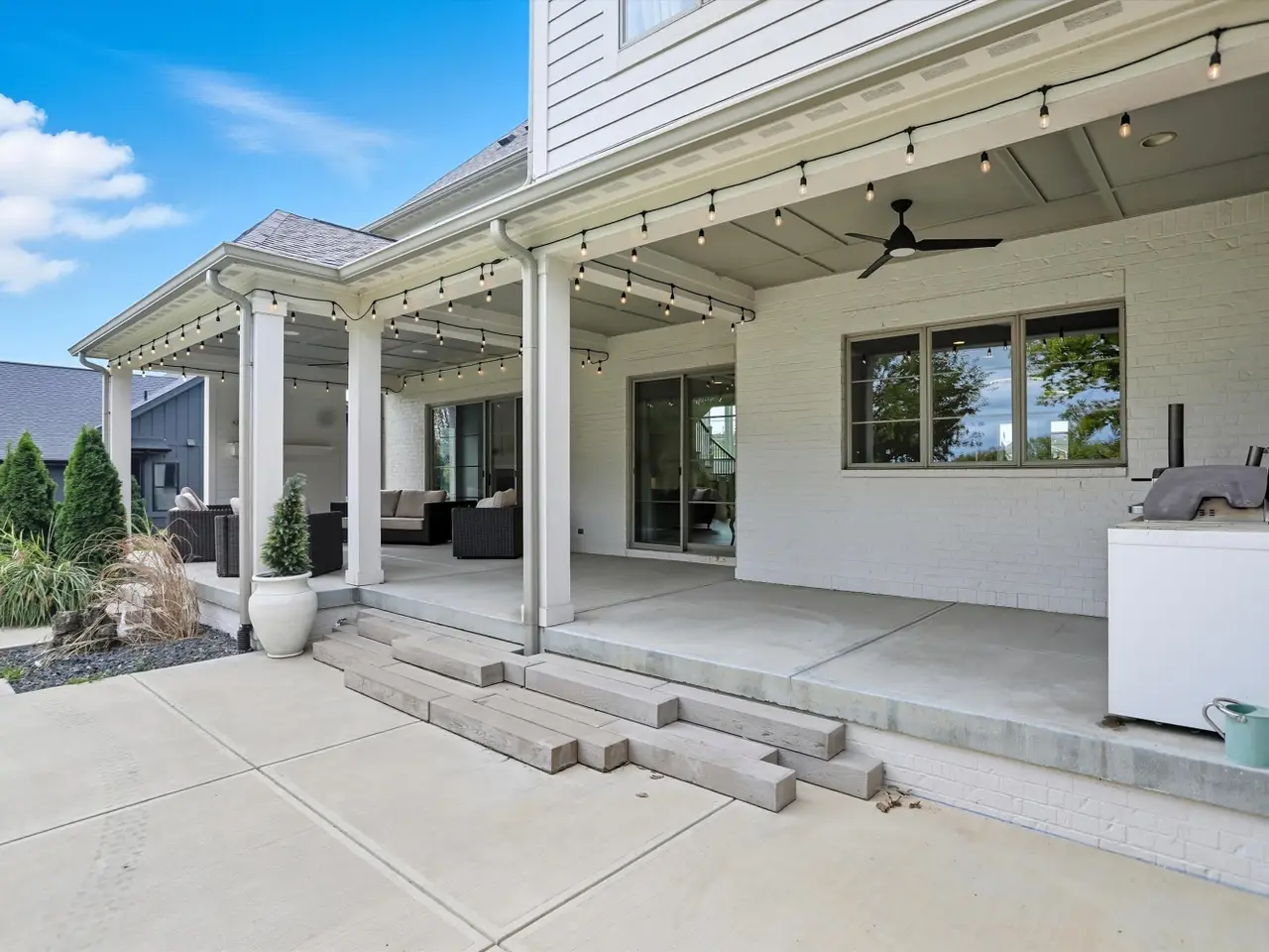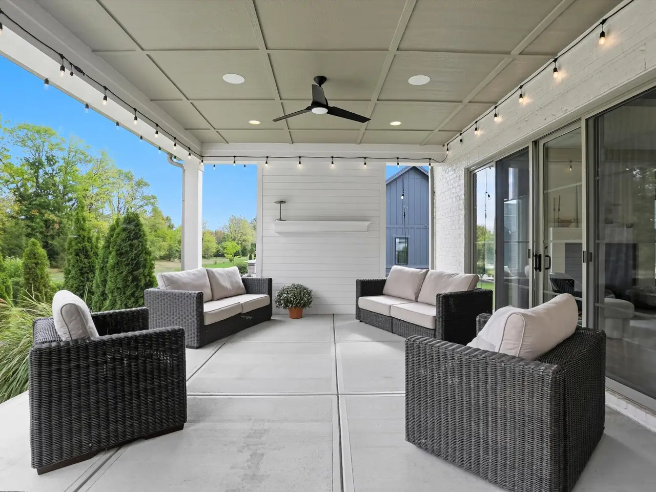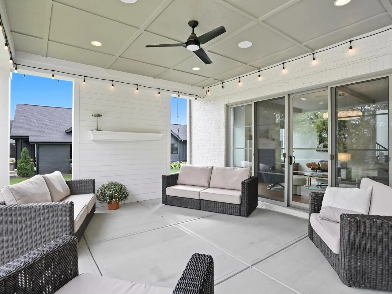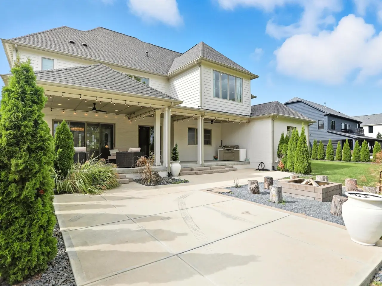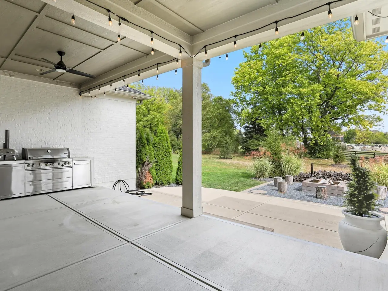 Covered porch with fire pit