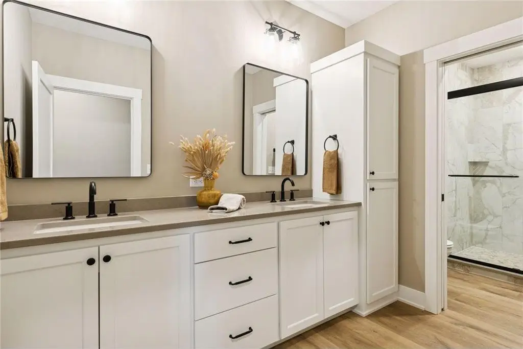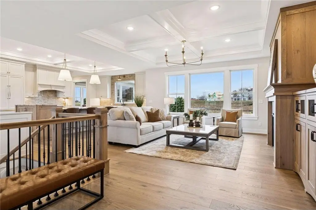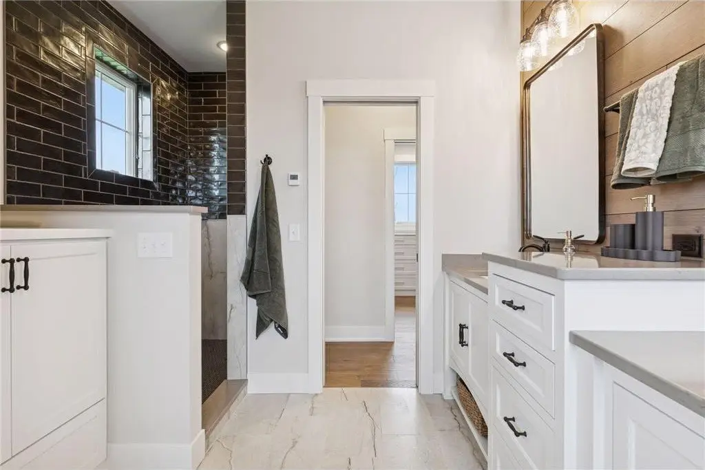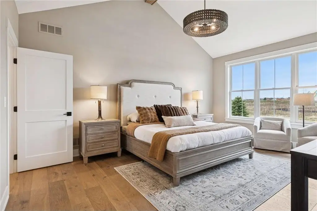 Welcome to this exceptional custom-built home by Derrick Custom Homes, a true masterpiece offering 4 bedrooms, 3 bathrooms, and an expansive layout designed for both everyday living and elegant entertaining. From the moment you step inside, you'll be captivated by the quality craftsmanship and thoughtful design. The open-concept main level features a warm and inviting living room, anchored by a gas fireplace surrounded by custom built-in cabinetry, creating a cozy yet sophisticated ambiance. The gourmet kitchen is a chef’s dream, showcasing full-height custom cabinetry, a spacious center island, decorative tile backsplash, walk-in pantry with a wet bar, and stainless-steel appliances. Stylish lighting and high-end fixtures are thoughtfully placed throughout the home, adding a modern and refined touch. Natural light pours in through expansive picture windows, enhancing every corner of the home. Enjoy year-round relaxation on the four-season porch, complete with its own fireplace, the perfect space for morning coffee or evening gatherings. Retreat to the luxurious primary suite, featuring a spa-inspired ensuite with a dual-sink vanity, walk-in tile shower, indulgent soaking tub, and in-floor heating. A second bedroom, full bath, powder room, mudroom, and laundry room round out the main floor. The finished lower level is designed for entertainment and versatility, offering a spacious media and gaming area with a third gas fireplace and wet bar and in-floor heat throughout the finished spaces. Two additional bedrooms, each with walk-in closets, a 3/4 bath, dedicated exercise room, and ample storage space complete the lower level. An attached 3-car garage adds convenience and functionality to this already impressive home. This is a must-see property that perfectly blends luxury, comfort, and modern design. Schedule your private showing today!
