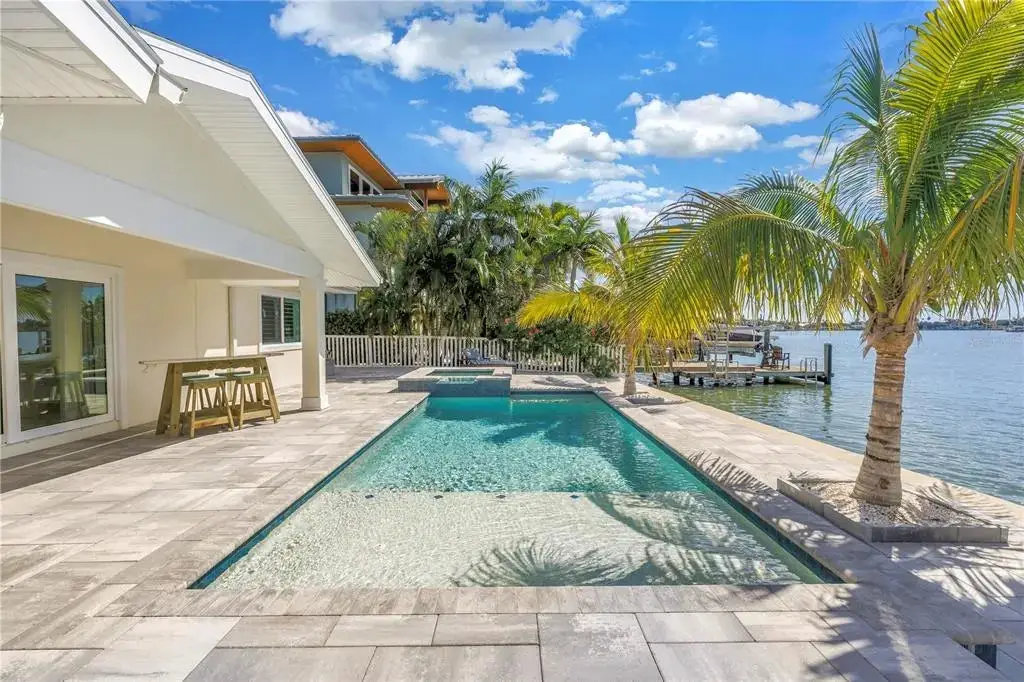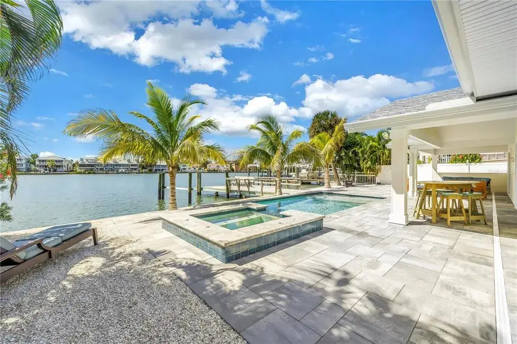 Under contract-accepting backup offers. One or more photo(s) has been virtually staged. Experience the pinnacle of waterfront living in this beautifully updated 3-bedroom, 3-bathroom home on a quiet inlet, leading directly to the Intracoastal Waterway. Perfect for boaters, this property features its own private dock and easy access to open water. Adding to the full oasis experience, the stunning saltwater PebbleTec pool and spa glisten in the backyard, surrounded by tropical landscaping. Inside, you’ll find a fresh and modern interior with brand new ceramic tile flooring, new stainless steel kitchen appliances, sleek quartz countertops, and plantation shutters that allow for plenty of natural light. The home is completely move-in ready, featuring newer sliders and windows, a new roof, new hot water heater, new air handler, and new water softener. Enjoy relaxing on the covered back patio overlooking the water or take a short stroll to the powdery sandy beaches to catch sunset. Located in the heart of Indian Rocks Beach, this vibrant coastal community offers a laid-back yet thriving atmosphere with fantastic restaurants, beach bars, and charming local boutiques just minutes away. This move-in ready home combines modern updates, waterfront tranquility, and the best of coastal living.