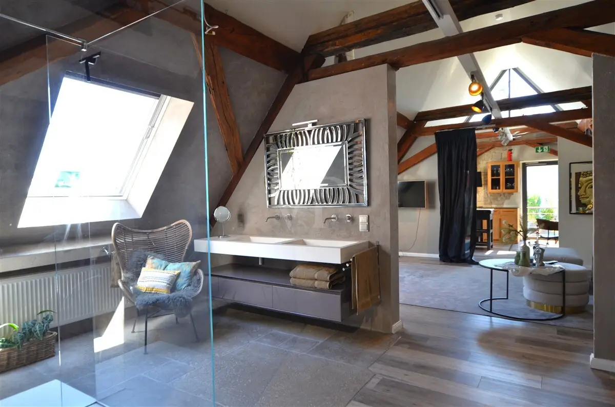 Welcome to an exceptional real estate offer: Here you have the opportunity to purchase two independent yet interconnected homes on a shared plot with a total living space of approx. 459 m². The entire property has ten rooms, with four kitchens and four bathrooms and offers maximum convenience thanks to two parking spaces, an idyllic inner courtyard and a separate cellar room. The front house, originally built in 1900, underwent extensive renovation on the upper floor and attic in 2010. The roof (including roof truss, insulation and tiles), the electrical and water pipes and all sanitary facilities were renewed. The wall and floor coverings, radiators and heating were also completely modernized. The apartment on the first floor was renovated in 2023. The windows, plumbing, wall and floor coverings and radiators were renewed. The two fitted kitchens are contemporary and appeal to families as well as multi-generational households or for renting out. The bathrooms in the front house have a modern design. On the first floor, a robust vinyl floor combined with tiles creates a pleasant atmosphere, while floorboards are used on the upper floor and attic. In 1979, double-glazed plastic windows with shutters were installed on the upper floor, which continue to provide good insulation. Triple-glazed windows were installed on the first floor in 2023. Long-term flexibility was also considered: two separate apartments were created. Heating is provided by a gas central heating system from 2010. The rear building - a repurposed former barn - is an impressive example of the successful renovation of historical substance. Solid sandstone masonry on the outer wall meets modern triple glazing (first floor) and plastic roof windows with additional darkening on the east side. The roof was renewed in 2014, including insulation and tiled roofing, with new tiles being used on the west side and original tiles being used on the east side. The extensive modernization in the same year included windows, electrics, water pipes, bathrooms, wall and floor coverings as well as the gas central heating. The living floor is fitted with vinyl flooring and a wood-burning stove, which ensures a pleasant room temperature. The existing photovoltaic system from 2014 supports a sustainable energy supply. A special highlight is the large roof terrace with direct access to the sauna with infrared cabin, which was installed in 2020. The offer is complemented by a separately accessible apartment area with underfloor heating, which is prepared for expansion. The plot itself measures approx. 462 m² and harmoniously integrates the parking spaces and the courtyard area. A cellar room under the front house with all the necessary connections rounds off the offer. This property is ideal for large families, shared flats as well as for combining living and working. The careful modernization in combination with the historic charm and the versatile room layout make this offer particularly attractive for discerning prospective buyers.