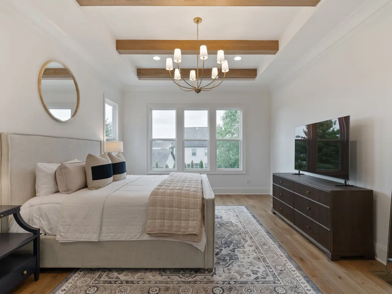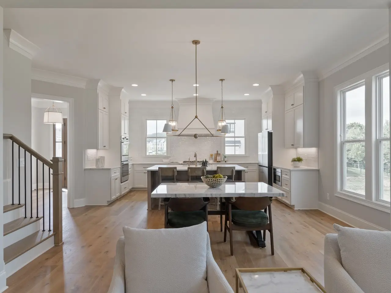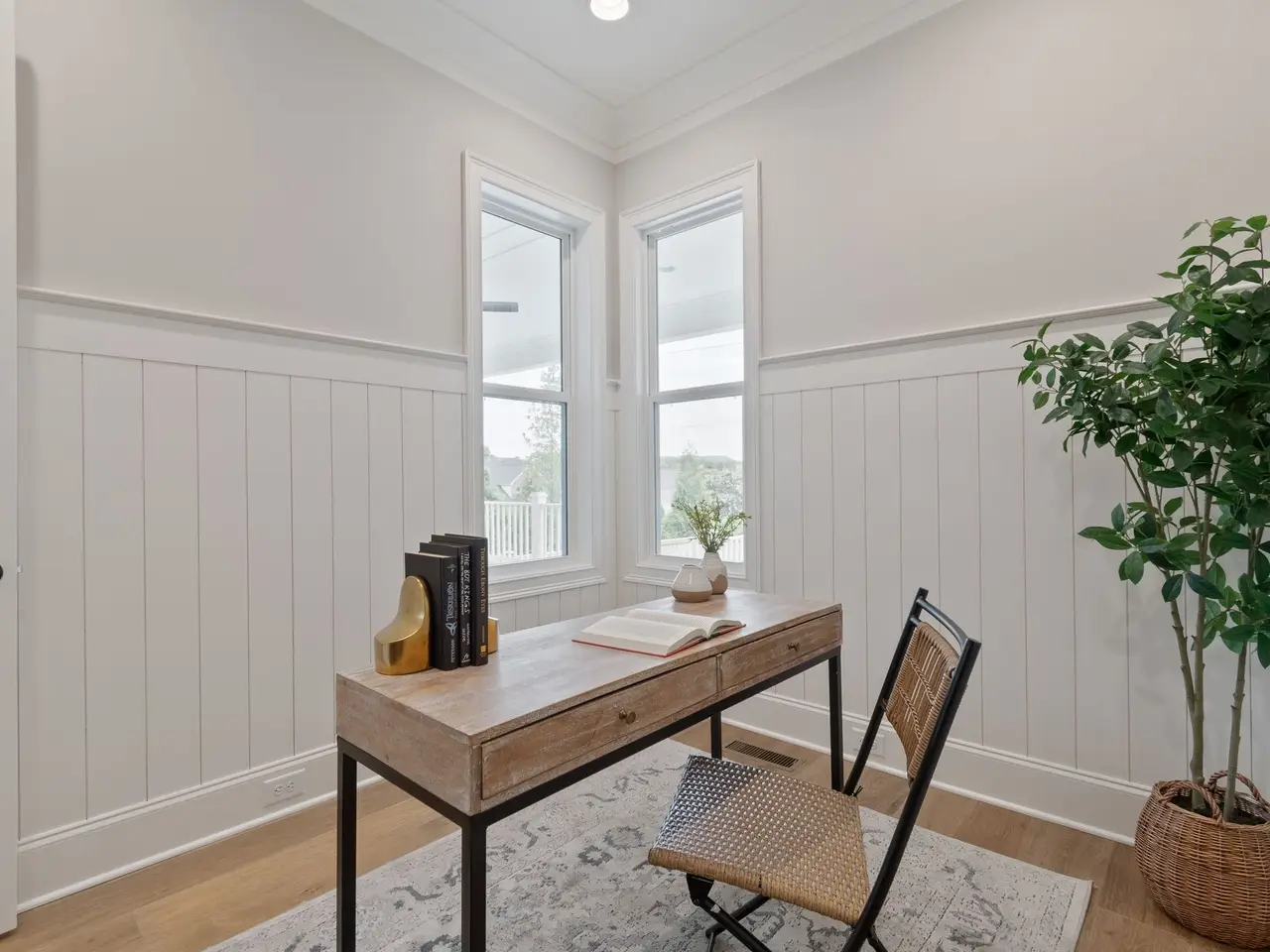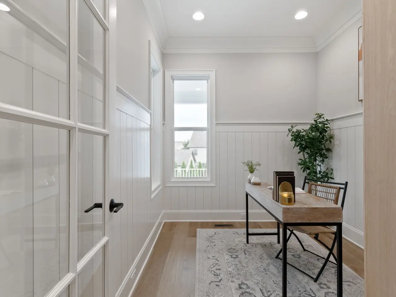 This stunning four bedroom, 4.5-bath home offers the perfect blend of elegance, comfort, and functionality--inside and out. Ideally situated on a desirable corner lot in the sought-after Southbrooke community, the charming exterior sets the tone for the thoughtfully designed interior filled with high-end finishes, custom details, and exceptional craftsmanship throughout. Step inside to discover a bright, open layout with amazing natural light, hardwood flooring on the main level, and crisp white finishes accented by warm natural wood tones, creating a clean yet inviting aesthetic. The chef's kitchen is a true showstopper, featuring ceiling-height custom cabinetry, a full-height tile backsplash, upgraded appliances, a spacious center island, and a walk-in pantry with built-in shelving. The adjacent living room exudes character with a coffered ceiling, built-ins flanking a gas fireplace, and large windows that flood the space with light. Just off the kitchen is a functional drop zone with built-in hooks, bench seating, and cubbies--perfect for keeping daily life organized. The main-level primary suite is a serene retreat with a natural wood beam ceiling, a spa-like bath featuring a standalone soaking tub, an oversized walk-in shower with floor-to-ceiling tile, double vanities with ample storage, and a custom walk-in closet. For added convenience, the laundry room is located just steps away. A private office on the main floor provides the ideal work-from-home setup, while the upper level offers three generously sized bedrooms, three full bathrooms, plus a spacious bonus/rec room perfect for relaxing or entertaining. Enjoy outdoor living year-round on the covered back porch with a wood-burning fireplace, overlooking the fully fenced backyard. The covered front porch offers yet another cozy space to enjoy Middle Tennessee's beautiful seasons. This meticulously maintained, move-in-ready home truly has it all--luxury, livability, and location.