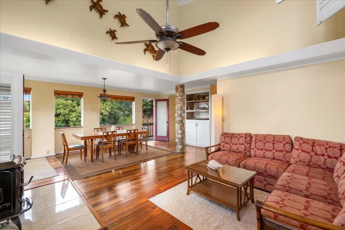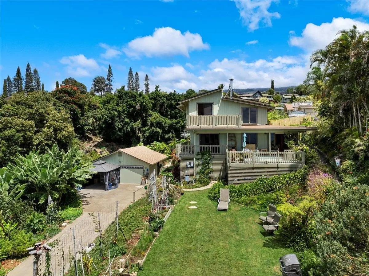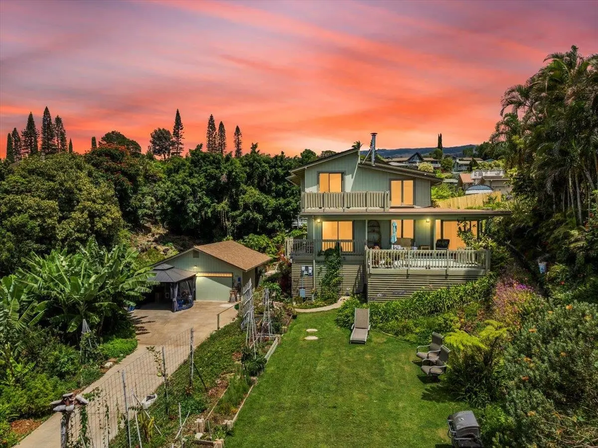 Welcome to Kula Kai, one of Kula’s most desirable, quiet, and friendly neighborhoods. This beautifully maintained home offers 4 bedrooms and 3 bathrooms, plus an additional room with a closet that can serve as a 5th bedroom, office, or den. Take in spectacular sunsets and sweeping bi-coastal views from your two private lanais. The care and attention to detail poured into this home are evident the moment you step inside. Recent upgrades include newer windows and blinds, crown molding, lighting, fans, carpet, remodeled bathrooms, newer appliances, solar hot water, a whole-house water filtration system, a roof replacement (2017), tigerwood hardwood floors, exterior paint, a fire pit, car charger and a leased PV system. The vaulted ceiling in the living room enhances the sense of openness and light. Your very own food forest awaits! The property features abundant herbs, thriving vegetable gardens, and mature fruit trees—including avocado, citrus, lychee, and more—offering a true farm-to-table lifestyle right from your backyard. Conveniently located just 25 minutes to the airport and close to top schools such as Waldorf, Seabury Hall, and Carden Academy.