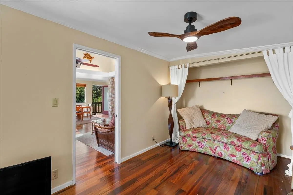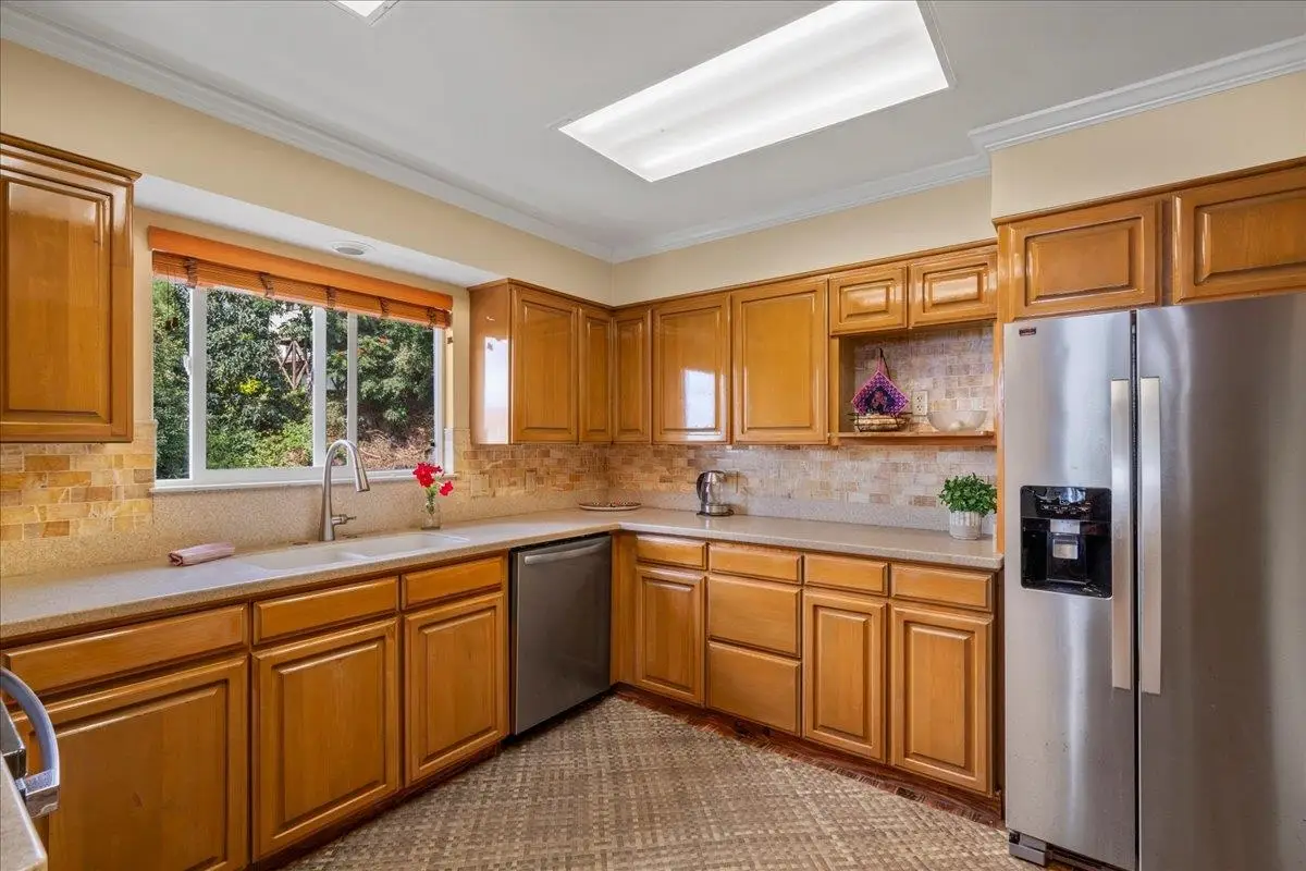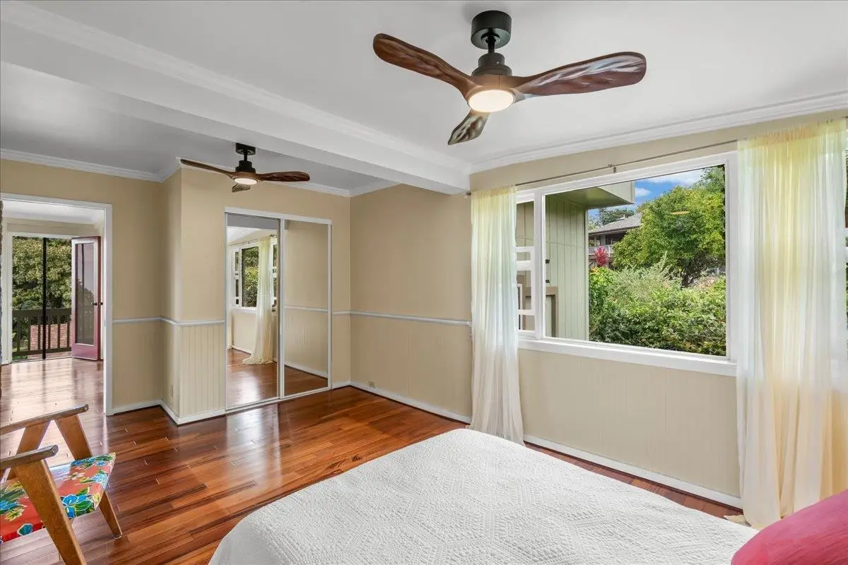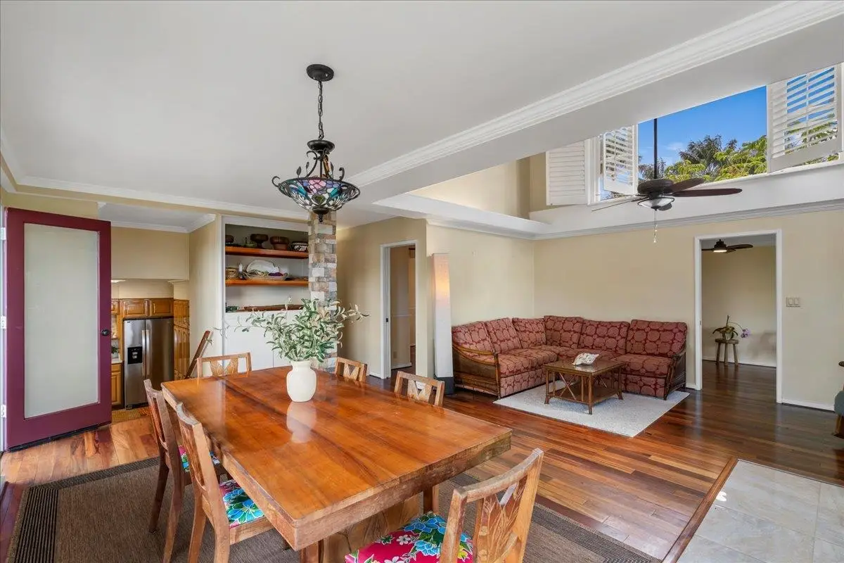 Welcome to Kula Kai, one of Kula’s most desirable, quiet, and friendly neighborhoods. This beautifully maintained home offers 4 bedrooms and 3 bathrooms, plus an additional room with a closet that can serve as a 5th bedroom, office, or den. Take in spectacular sunsets and sweeping bi-coastal views from your two private lanais. The care and attention to detail poured into this home are evident the moment you step inside. Recent upgrades include newer windows and blinds, crown molding, lighting, fans, carpet, remodeled bathrooms, newer appliances, solar hot water, a whole-house water filtration system, a roof replacement (2017), tigerwood hardwood floors, exterior paint, a fire pit, car charger and a leased PV system. The vaulted ceiling in the living room enhances the sense of openness and light. Your very own food forest awaits! The property features abundant herbs, thriving vegetable gardens, and mature fruit trees—including avocado, citrus, lychee, and more—offering a true farm-to-table lifestyle right from your backyard. Conveniently located just 25 minutes to the airport and close to top schools such as Waldorf, Seabury Hall, and Carden Academy.