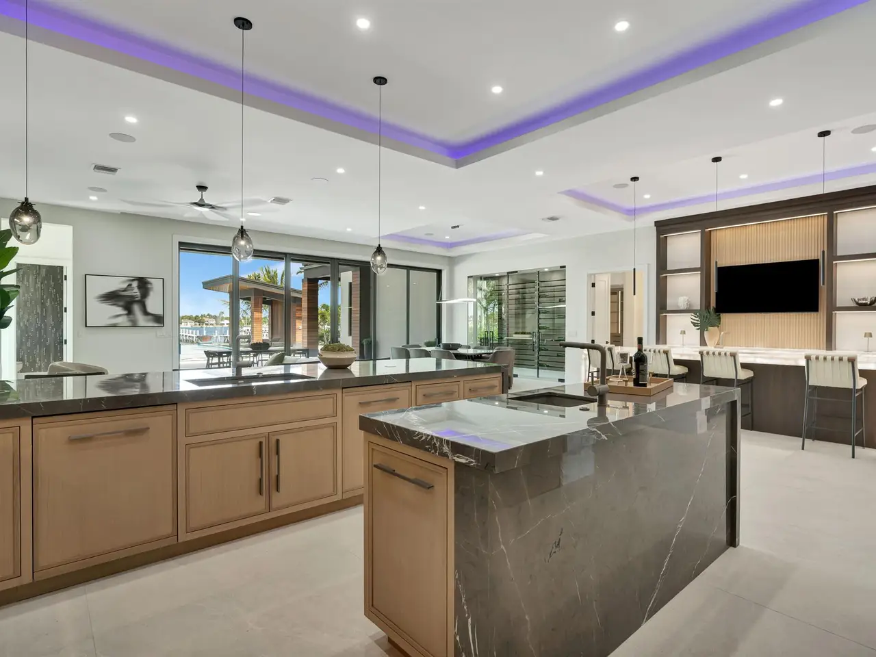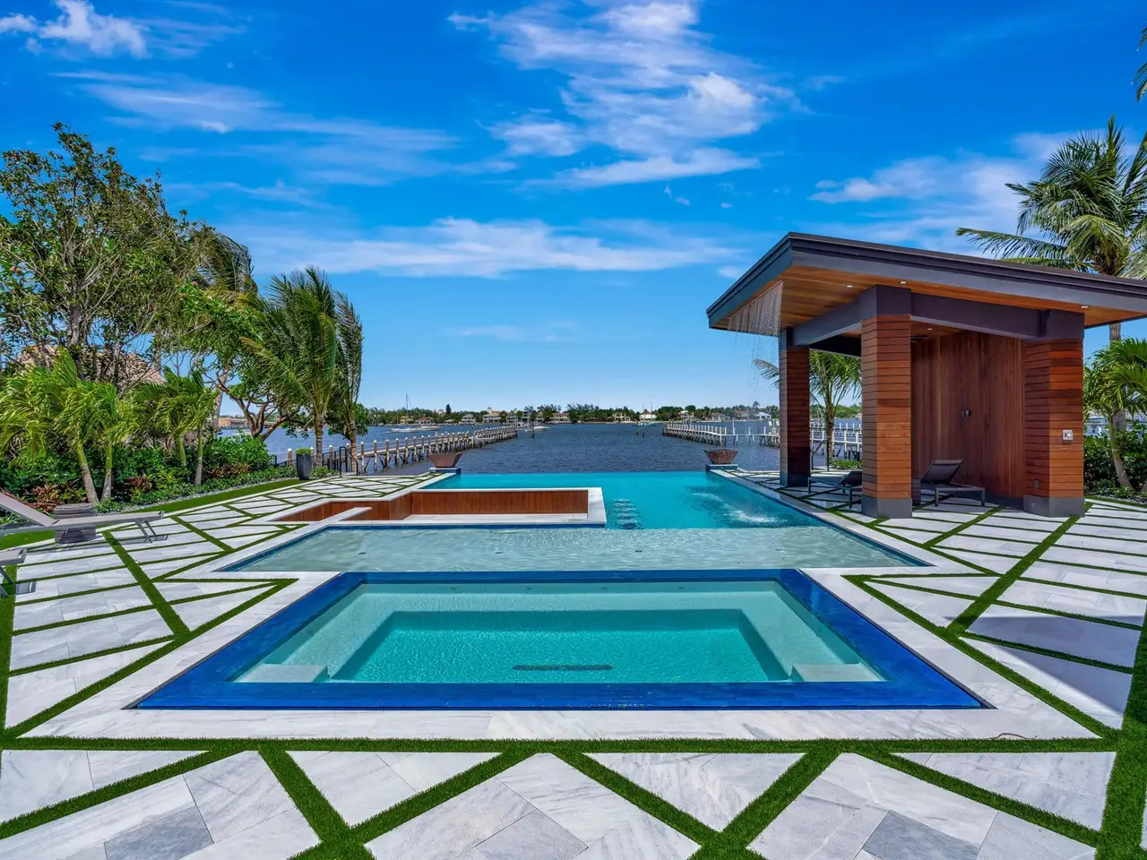 Brand-new gated intracoastal estate in prime Lantana location! Brand new 385 foot dock with 32k boat lift and pilings to tie up your very large vessels. This is the lowest price per square foot new construction on the direct intracoastal in Palm Beach County! Walk to the beach, Eau Resort & Spa, and top dining spots. Just 1.5 mi to I-95, minutes to PBI & private jet access. This smart, energy-efficient compound offers ultimate privacy with unobstructed water views, upstairs/downstairs living rooms & master suites. Loaded with upgrades: Sonos, security, landscape lighting. Backyard is a showstoppera"$500K+ resort-style pool, sunken firepit, waterfall gazebo w/ 10 stools, and multiple fire features. Luxury living at its finest!