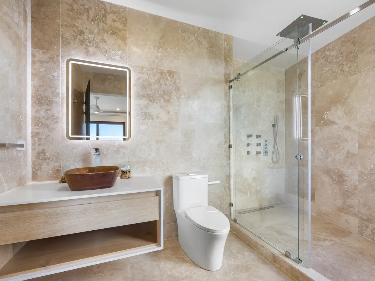 Welcome to Casa Manta Ray, a beautiful brand new luxury 6165 sq ft home with breathtaking ocean views, located at the top of the gated Miramar neighborhood in Mar Vista, Playa Flamingo. This exceptional property was designed and built by the famous Costa Rican architect José Mora. This special home has a shape that resembles a manta ray and offers many unique architectural features and includes curated, large, original paintings by José Mora throughout the home. There are travertine floors and walls throughout, venetian stucco walls and ceilings, locally hand-crafted melina wood furniture, custom artwork, and full walls of glass facing the Pacific Ocean. Upon entering through the huge wooden door, you are greeted by a bright and airy open living area. This layout boasts a neutral color palette with abundant natural light as the back of the house is all glass that frames captivating ocean views and opens up to the covered outdoor space. An expansive 12-seater sectional sofa invites you to unwind, while a custom-built entertainment center, with natural wood accents, complements the room's elegant, minimalist decor. Amid the area, decor accentuates splashes of ocean colors. The dining and kitchen areas are perfect for entertaining. The dining table, made of local hardwood, is surrounded by modern chairs and sits under a unique light fixture. The kitchen is sleek and functional, with plenty of light wood cabinets, a spacious island with seating, and top-quality stainless steel appliances, ideal for cooking and gathering. Casa Manta Ray features four spacious bedrooms, each with its en-suite bathroom; plus a convenient half bath, providing ample comfort and privacy for family and guests. The downstairs bedrooms are the guest bedrooms and offer queen beds. The top floor offers 2 master bedrooms, each with custom king wood beds, beautiful artwork done by José Mora, massive walk-through closets with seated vanities and mirrors, and patio doors to an upstairs balcony offering luxurious and relaxing seating. The ensuite bathrooms have travertine floors and walls, unique stone sinks, wrap-around quartz countertops, and massive ceiling rain showers which include windows that have incredible ocean views. Another architectural highlight of Casa Manta Ray is its grand staircase, which rises gracefully under soaring ceilings and is framed by large windows overlooking the lush, green surroundings. At the landing on the second floor, a unique, oversized window creates a breathtaking "aquarium effect," offering an uninterrupted view of the surrounding landscape that feels as if you’re immersed in nature. Casa Manta Ray’s outdoor areas are perfect for both relaxing and entertaining. The spacious terrace includes an outdoor kitchen with a built-in grill, prep area, and dining space, ideal for enjoying meals with family and friends. Next to the dining area, the infinity poolside lounge offers cozy seating and stunning ocean views, creating an inviting space to unwind. The sparkling curved infinity pool is perfect for a refreshing dip, surrounded by ample space for lounging and taking in the beautiful scenery. As a bonus, there are solar panels on this home! The Miramar neighborhood, located within the Mar Vista community in Playa Flamingo, combines luxury with natural beauty. Known for its amazing ocean views, gated security, and peaceful setting, Miramar is ideal for those seeking privacy and an active lifestyle in one of Guanacaste's top areas. The Mar Vista community covers 750 acres and focuses on sustainability and preserving nature. Residents enjoy a range of amenities like a gym, tennis and pickleball courts, hiking trails, and Gracia restaurant with an infinity pool and stunning ocean views. There is a private school at the entrance, making it a great choice for families. Nearby are the famous Playa Flamingo and Playa Conchal beaches, grocery stores, restaurants, medical facilities, and the new Flamingo Marina. Ready to make Casa Manta Ray your own? Contact us today to schedule a viewing and experience the beauty and serenity of this incredible property firsthand. Don’t miss the chance to live in your dream home in Playa Flamingo!