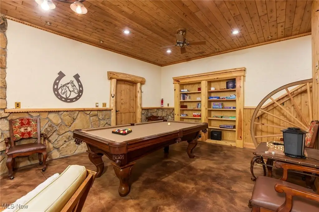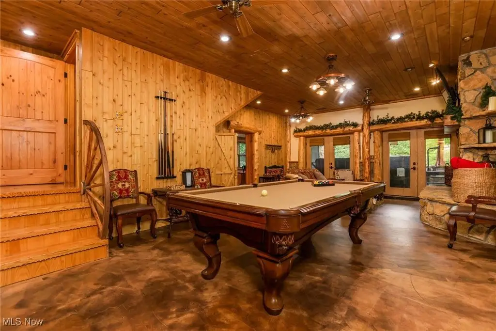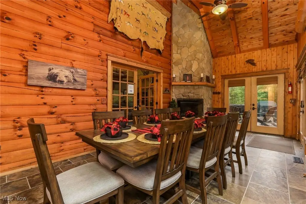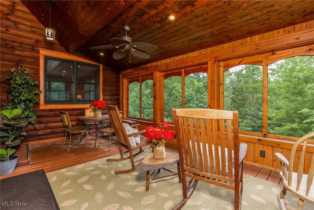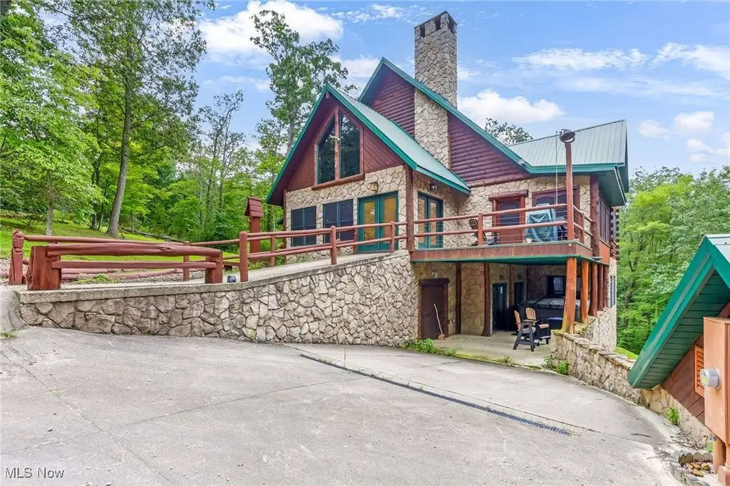 Yellowstone meets the Hocking Hills! This unique Amish custom-built home is a rare find. Three levels with panoramic views of the wooded lot to enjoy every inch of the privacy. The interior details are one of a kind from the whole tree supports and stairway to the tile and wood inlays. Soaring ceiling in the great room. All three levels have complete owners' suites. Would also make a great short-term rental. There are several fun hidden rooms including a game room. What makes this property special is the large, detached building with kitchen and full bath that is attached to a corral space that could easily have several horse stalls. If you like to ride, this property is adjacent to state land with 40 miles of the most popular trails in Ohio. 12 person hot tub/swim spa. The possibilities for luxury living are endless!