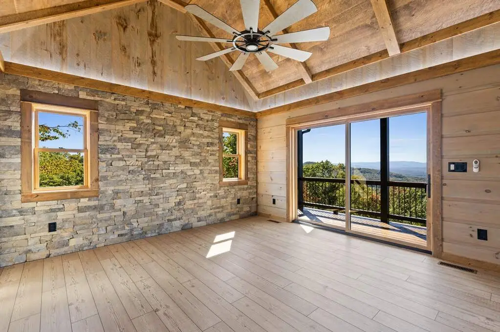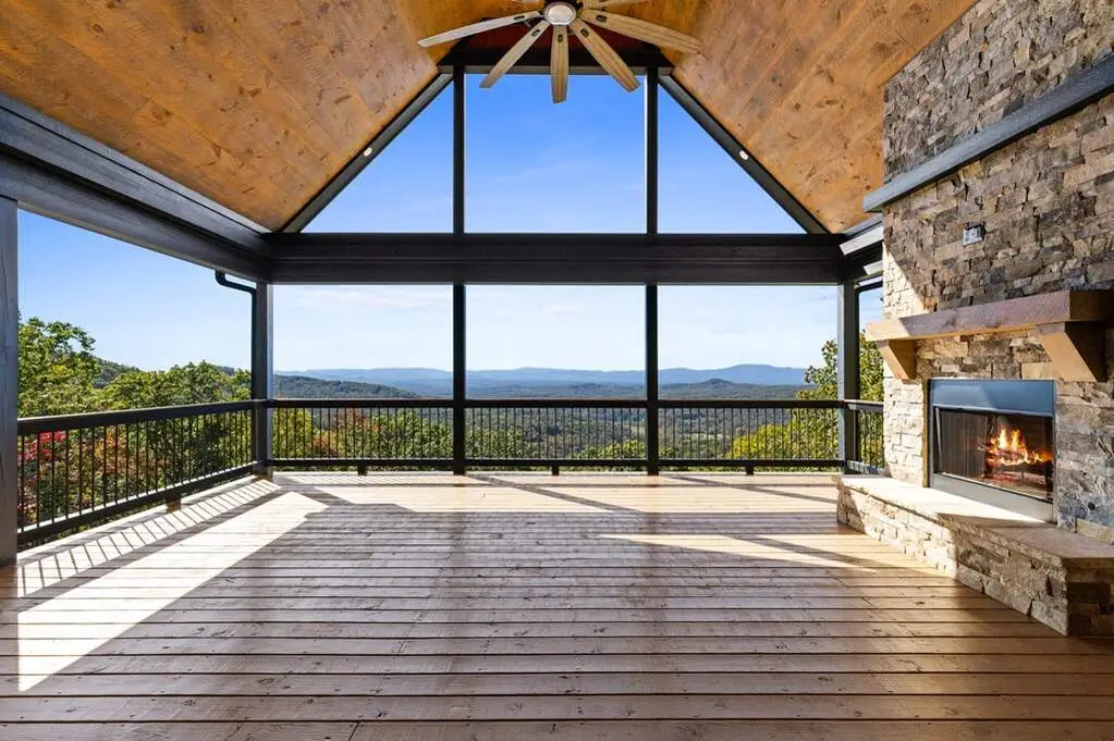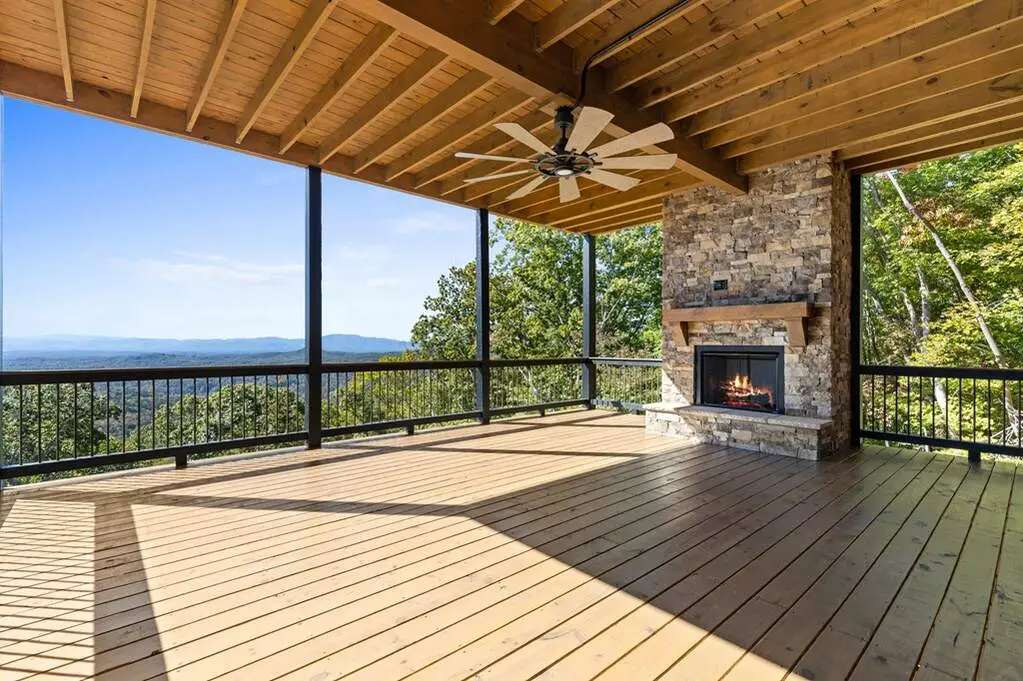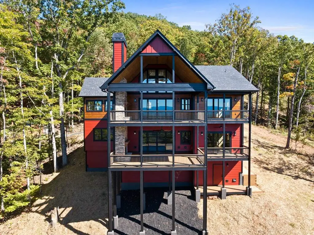 ITS ALL ABOUT THE VIEW...and QUALITY! Easily accessible on all paved roads, this stunning mountain retreat offers 180 degree long range YEAR ROUND mountain views. Thoughtfully designed throughout. 3 KING SIZED bedrooms, each with full bath, plus 2 half baths, this property blends rustic charm with modern efficiency. The master suite on the main level provides comfort and privacy while multiple decks and four fireplaces -including an inviting fire pit with concrete seating pads create the perfect spaces for relaxation or entertaining. Beautiful professional landscaping enhances the outdoor experience. Built with the latest technology and for peace of mind, the home includes a concrete driveway, 22kw whole house generator, 7.2 battery backup, prewired EV charging outlet, solar ready connections, along with portable and essential circuit generator hookups. Enjoy an included 20k appliance package, LED soffit lighting, washer/dryer and additional enclosed storage under terrace level. The low maintenance exterior with all clad windows/doors ensures lasting beauty with minimal upkeep. Conveniently located, this property is the ultimate in mountain serenity, modern preparedness and enduring quality- a true have for those who appreciate comfort , views, and adventure.