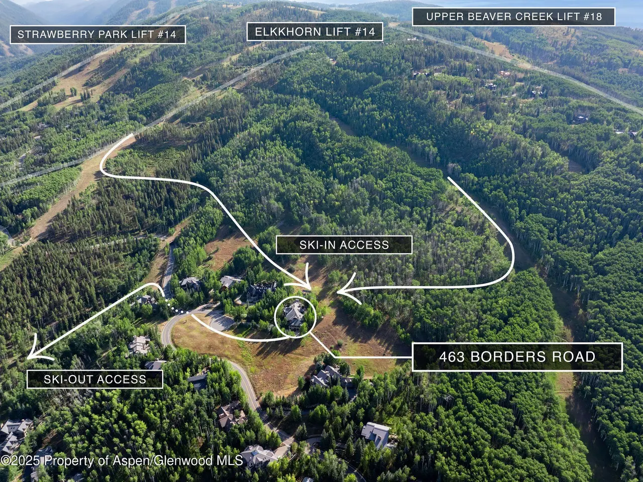 A Beaver Creek Masterpiece, Chateau de la Montagne stands as the pinnacle of elegance, class, and privacy within the gates of Beaver Creek. Reputed to be the largest home with ski access in the resort, 463 Borders is an expansive estate offering seven ensuite bedrooms and fourteen baths across multiple levels accessed by elevator. A grand entry stairway welcomes visitors to an elevated level of comfort not experienced elsewhere in Beaver Creek. This 15,900-square-foot slopeside masterpiece-on a peaceful 1.56-acre parcel at the end of a quiet cul-de-sac-defines alpine luxury and timeless mountain architecture. A commanding driveway, flanked by open space and few neighbors, leads to the Chateau. Guests are greeted by a soaring three-story water feature before entering a great room anchored by a dramatic double-sided fireplace. Walls of glass capture sweeping views of the Centennial ski slopes and surrounding peaks. The primary suite is an indulgent sanctuary, with dual spa-inspired baths, steam showers, fireplace, wet bar, washer and dryer, and a balcony overlooking the waterfall and ski trails. On the main level, a slopeside terrace offers direct ski access, complete with an outdoor fireplace lounge for apres-ski gatherings. Outside the recreation room, a hot tub sits beside the cascading water feature framed by alpine vistas. Other highlights include a chef's kitchen, office, theater, 1,100+ bottle wine room, gym, massage room, steam room, three-car garage with EV hookups, Lutron lighting, advanced security, and nine fireplaces. Air conditioning ensures year-round comfort. Conveying with the most coveted Beaver Creek Club Charter Membership-the highest tier available-this legacy estate bypasses the current 4.5-year waitlist. Chateau de la Montagne is more than a residence-it is a timeless architectural statement redefining Beaver Creek luxury.