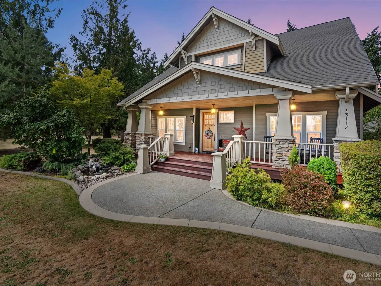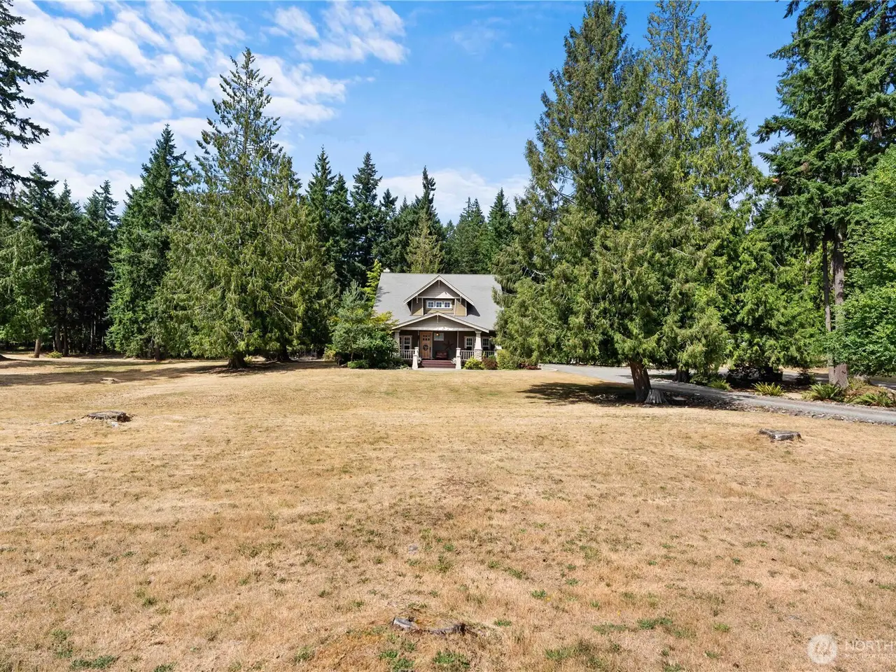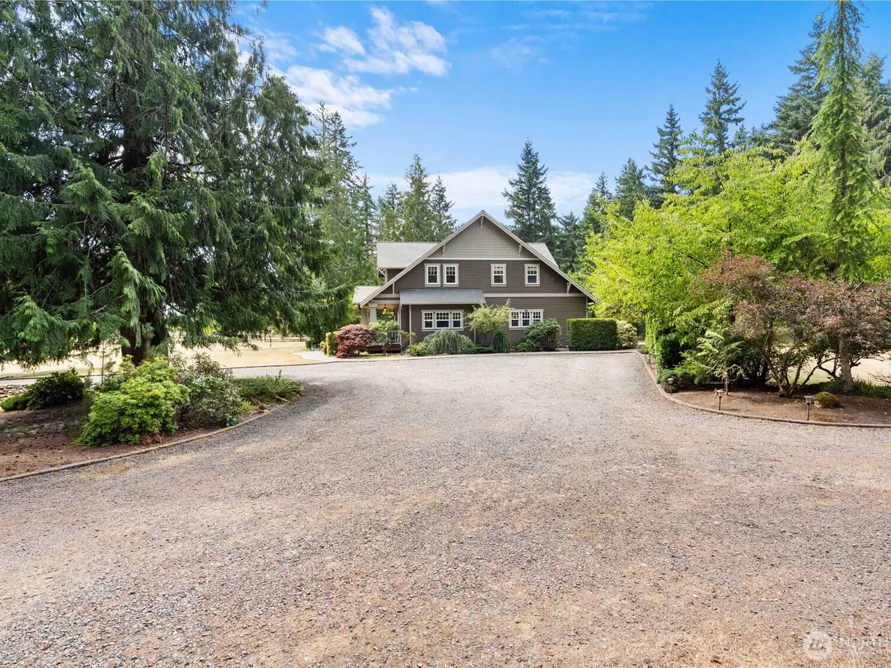 Luxury country living just 20 minutes from Bonney Lake or Enumclaw! This stunning Craftsman home offers an open floor plan with hardwood floors, solid wood doors, wainscoting, crown molding, and wrought iron details. The chef's kitchen features an oversized island, flowing into a bright dining area and generous living room with a wood-burning fireplace. Enjoy a perfect work from home den on the main floor. The elegant primary suite includes a spa-like bath. Set on 5 private acres with a huge shop, car lift, covered RV parking, and space for bonfires or wildlife watching from the back patio. Enjoy elk, deer and eagles in your own backyard. Even wired for a back up generator and NO RTA tax! This is elegance, privacy, and space at its best!