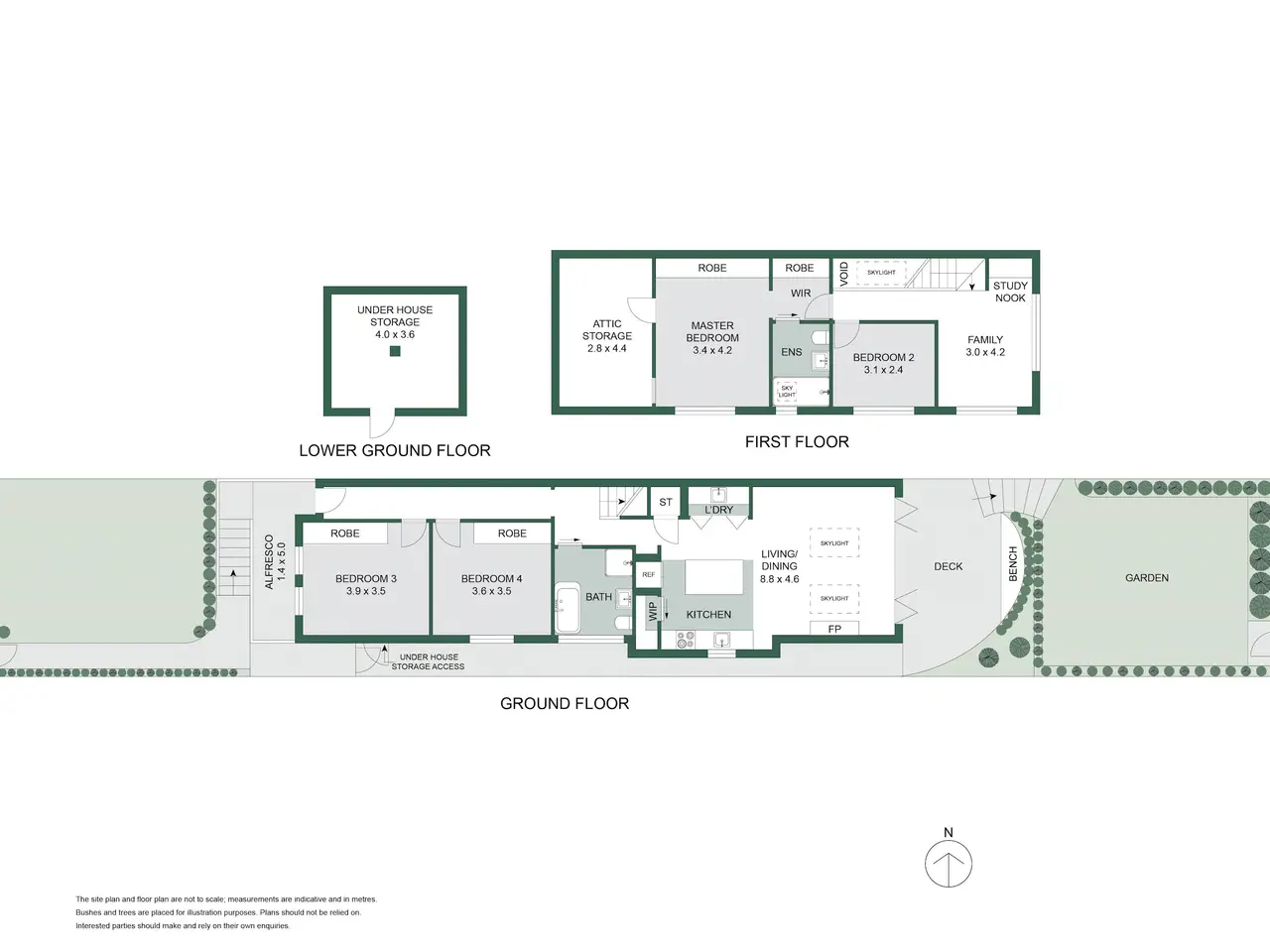 Framed by leafy gardens and timeless street appeal, this exquisitely renovated 1920s semi blends classic character with refined contemporary design. Behind its white picket fence and sandstone foundations lies a home of warmth and sophistication, where period detailing meets flawless modern craftsmanship. Soaring three-metre ceilings, engineered oak floors and a gas-fired living domain create a sense of relaxed elegance, while bi-fold doors open to a landscaped east-facing garden with a sun-dappled deck and custom timber seating. The elegant kitchen, complete with a walk-in pantry, anchors the home's social heart and connects seamlessly with the outdoors. Upstairs features a serene second living room, a study nook, second bedroom and a luxurious ensuite master, while two further bedrooms rest peacefully below alongside a marble bathroom. Perfectly balanced for family life or executive living, this move-in-ready residence enjoys rear-lane access and a prized address moments from Mosman village cafés, Military Road shops and city transport. - Elegantly renovated, light filled 1920s semi in a sought after Mosman location - Classic façade with white picket fence and sandstone foundations - Spacious open-plan living with gas fireplace and vaulted ceilings - Soaring ceilings, original leadlight detailing, engineered oak floors - Bi-fold doors extend to deck with built-in timber seating and established garden - Landscaped east-facing yard with rear lane access via Rosebery Lane - Stone-topped kitchen with island bench, gas cooktop, fireclay sink and walk-in pantry - Stylish marble bathrooms with rainfall showers, freestanding bathtub and underfloor heating - Upper-level living with study nook, custom cabinetry and skylights - Luxe master suite with built-ins, ensuite and attic storage access - Front verandah and garden with leafy views towards Northbridge - Ducted and zoned air con throughout, under-house/stairs storage and European laundry Disclaimer: All information contained herewith, including but not limited to the general property description, price and the address, is provided to Belle Property by third parties. We have obtained this information from sources we believe to be reliable; however, we cannot guarantee its accuracy. The information contained herewith should not be relied upon and you should make your own enquiries and seek advice in respect of this property or any property on this website.
