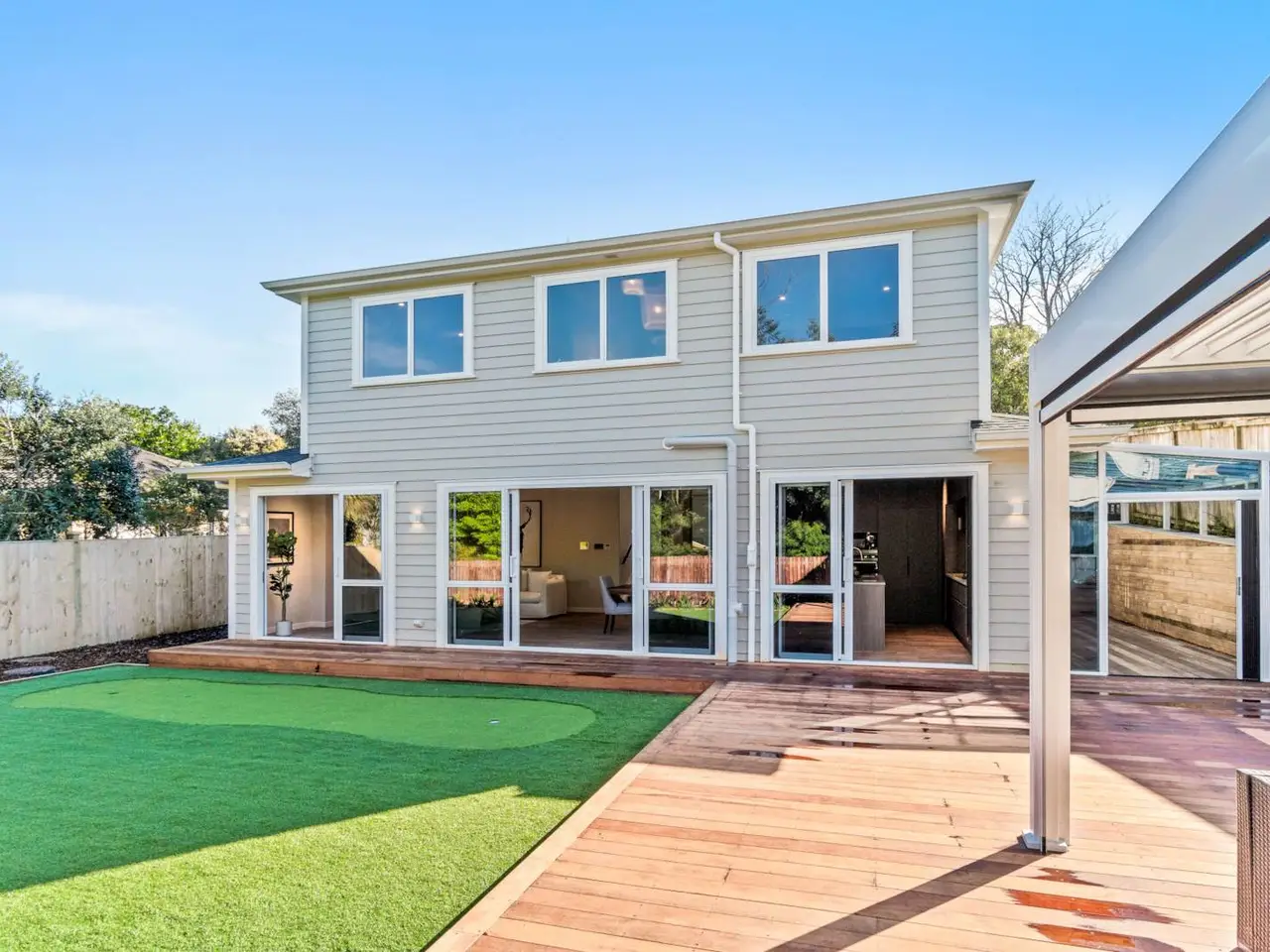 Discover the perfect blend of space, comfort, and refined style in this thoughtfully crafted, brand-new home, proudly positioned on a generous 1505sqm (approx.) freehold section in Greenhithe's highly desirable old village. With a substantial 319sqm floor area spread across three thoughtfully designed levels, this stunning home delivers the lifestyle you've been dreaming of.Step inside to find 5 spacious double bedrooms and 4 beautifully appointed bathrooms, including 2 luxurious master suites with private en-suites, plus a dedicated family lounge on the top floor. On the ground floor, you'll find a double bedroom paired with a separate full bathroom—ideal for guests or extended family—while the second level features two additional double bedrooms sharing a large family bathroom. This layout is perfect for multi-generational living or families needing flexible space.The heart of the home is a sun-drenched open-plan living and dining area, alongside a beautifully designed kitchen complete with a hidden walk-in scullery. This home is built for both style and function, perfect for entertaining and everyday family life. A versatile formal lounge near the entrance offers a quiet retreat—ideal as a tearoom, piano room, or creative studio.Designed for effortless indoor-outdoor flow, the home features two sun-drenched patios—perfect for alfresco dining, wine with friends, or putting practice on the private home golf green. A scenic garden pathway winds through the rear garden, leading to a serene native bush setting that feels worlds away from the city.No detail has been overlooked, with premium features including:·Central air conditioning·Underfloor heating in all bathrooms·In-ceiling speakers in the main living area·Integrated dishwasher, quality Fisher & Paykel appliances·Double internal-access garage with separate laundry·Two sun-drenched patios·Intercom·CCTVAll of this: just a short stroll to Greenhithe School, with easy motorway access and close to the top private schools Kristin School and Pinehurst School. Enjoy the convenience of being only minutes to Albany Westfield and Northwest Shopping Centre.This is your rare opportunity to secure a brand-new, beautifully crafted family home offering the feel of a private estate with the convenience of city living. It comes with a one-year maintenance warranty and a ten-year building warranty; CCC and Title have been issued.Contact me to book your private viewing—homes of this calibre in Greenhithe don't come along often.