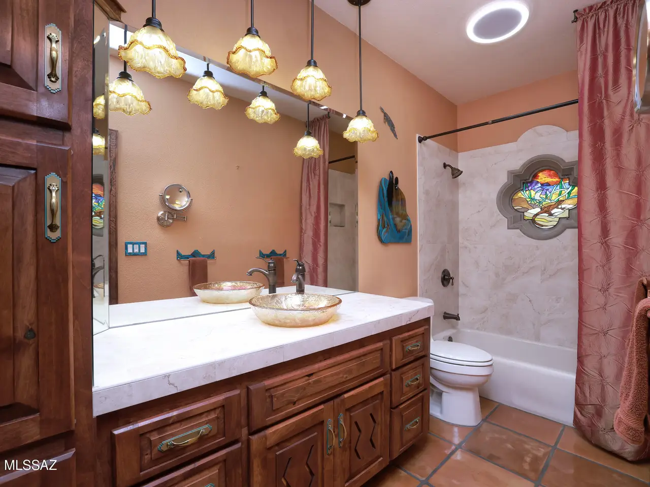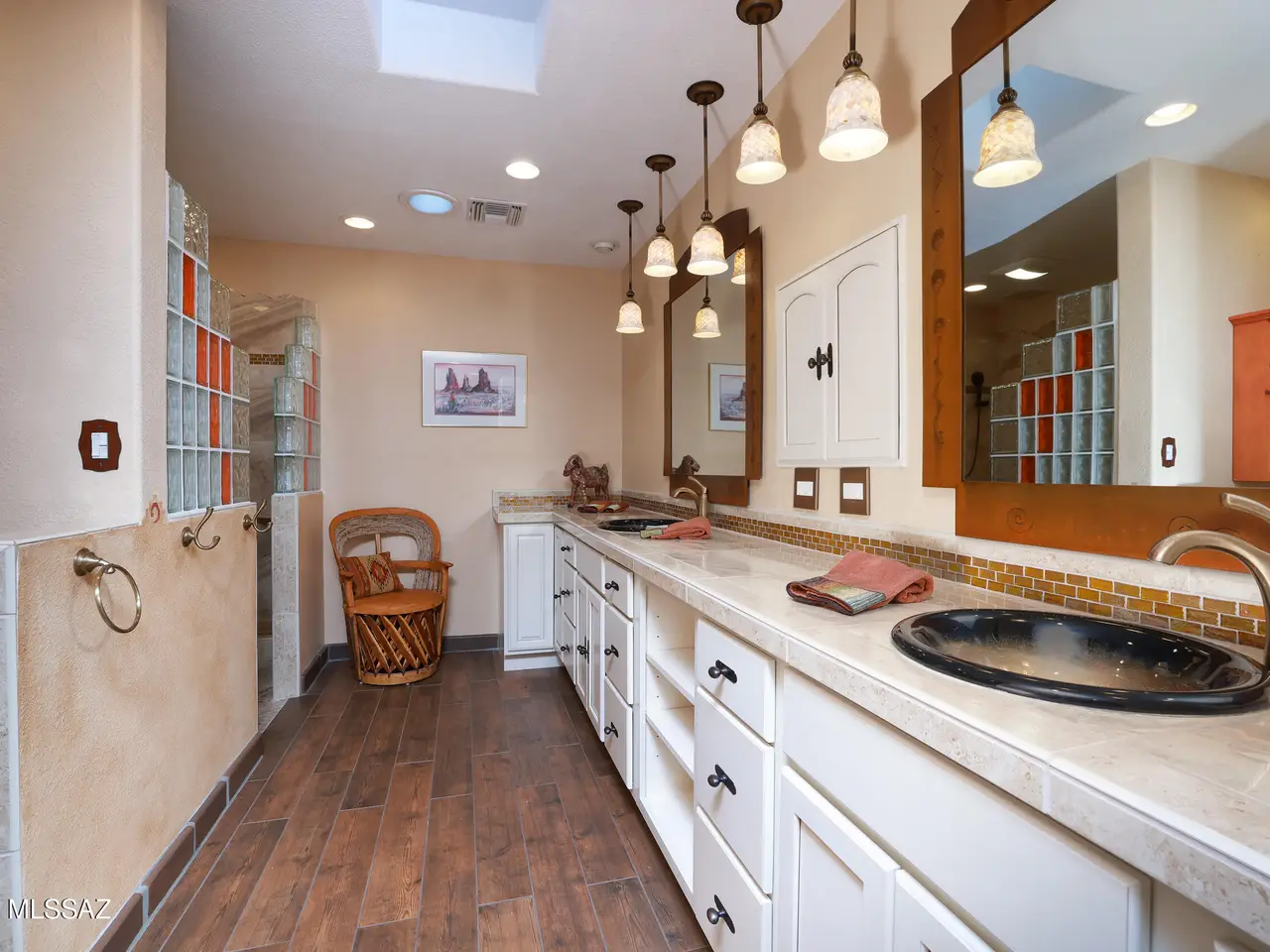Beautiful, Southwest style block home showcases quality craftsmanship & decorative finishes. Incredible views of the Catalina & Rincon Mtns on 3.3 acres. 2 Owners' Suite's each with private sitting room & full baths, plus 2 add'l bedrooms & baths. Kitchen has alder cabinets, custom hardware, double ovens, 2 stovetops & more. Spacious office with private entry. Oversized 3-car garage with laundry & large storage room. Backyard, an entertainer's dream with a sparkling pool, poolside ramada, outdoor shower, Blackstone grill, covered patios, pizza oven & garden shed. Beyond the enclosed yard, discover an Artist Studio, Chicken Coop & Workshop/4th Garage. Zoned as Horse Property. Near Saguaro National Monument & Agua Caliente parks, golf, hiking & biking. Tanque Verde Schools. Low HOA