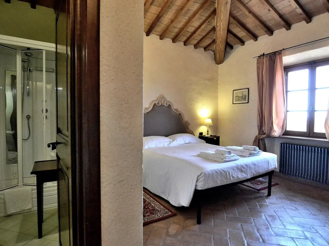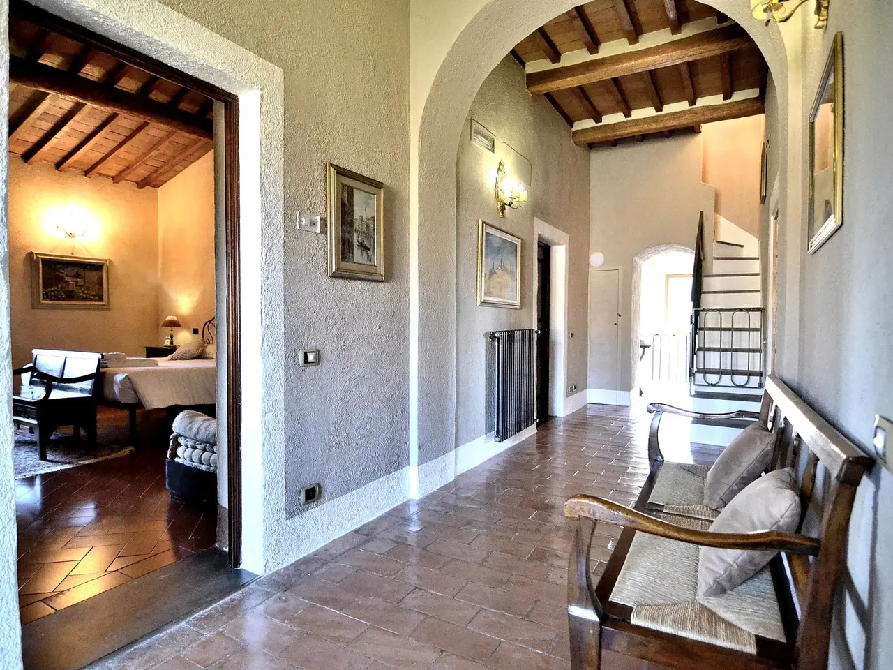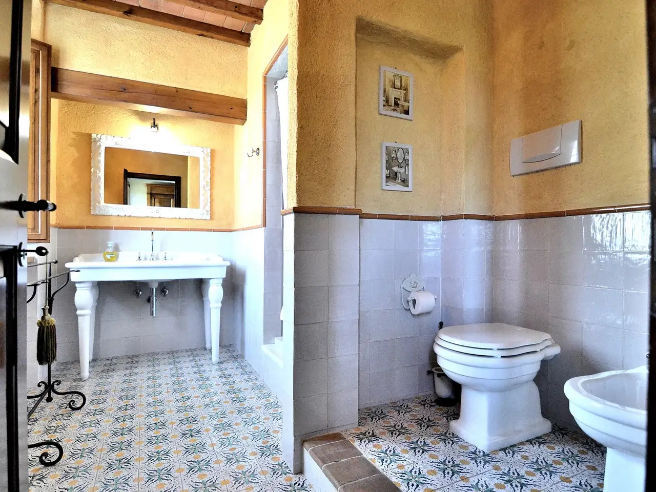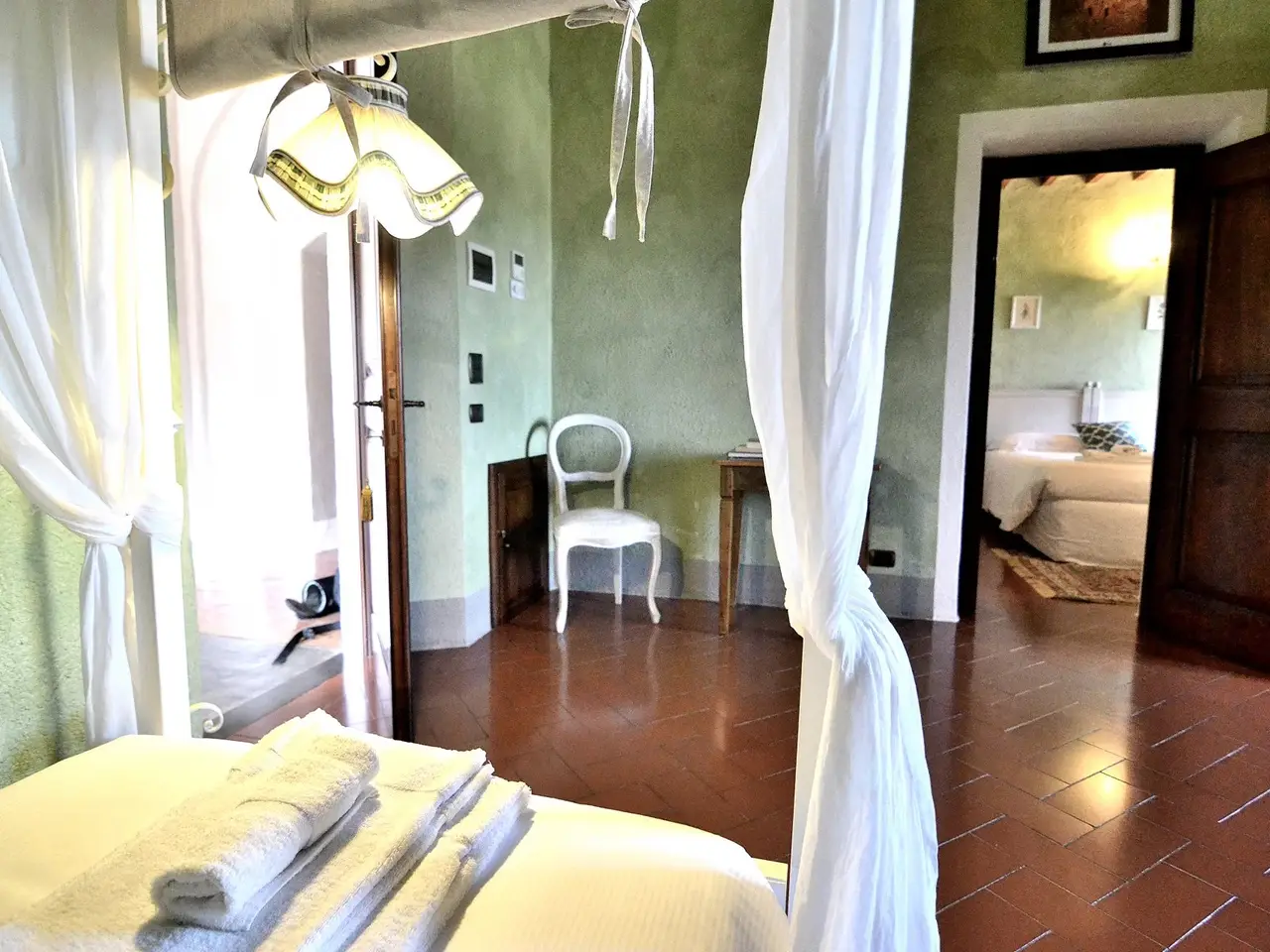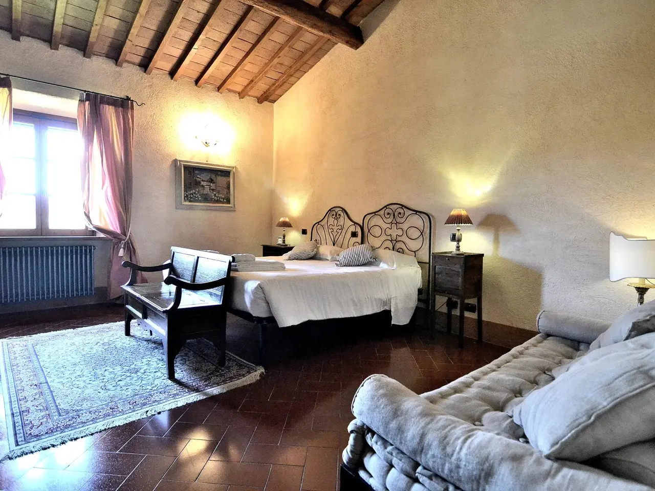 Exclusive villa completely renovated, in a panoramic position on all sides of the property. Large infinity pool equipped with sunbeds for all guests, umbrellas and a large gazebo with table and chairs. Veranda, large garden and parking area. The villa is ideal for up to 14 guests. 7 bedrooms and a total of 9 bathrooms. Air conditioning, Wifi, mosquito nets on the windows. Heated jacuzzi. 4 km from all services. Quiet and safe area, strategic for visiting all of Tuscany! Excellent and suggestive location on top of a small hill covered in vineyards and olive groves. 360 degree panoramic view. The sun sets almost in front of the veranda, furnished with a heated jacuzzi and sofas, and the swimming pool. The villa is located between Florence and Siena a few kilometers from medieval villages such as Certaldo, San Gimignano and Monteriggioni. Even the main villages of Chianti can be reached in a short time. Nearby there are also many wineries and farms where you can taste local wine and other typical products. Florence and Siena can both be reached in 30 minutes by car. You can also reach the center of Florence in 40 minutes by train from the small station of Certaldo (just 6 km from the villa, with free parking to leave your cars). The property has a large plot with a parking area inside the electronic gate. The villa is on two floors. On the ground floor you will find: - A Tuscan-style living room with sofas, fireplace, large satellite TV and table for 14 people. - A service bathroom with toilet and sink, accessible from the living room itself. - A large bedroom with comfortable queen size bed, sofa, wardrobe and private bathroom with shower, toilet, bidet, sink. The sofa located in this room can be transformed into a double bed if necessary. - A laundry room with washing machine, dryer, separate waste collection, etc. - The veranda, adjacent to the living room, is on a higher level than the pool area. Here you will find sofas to relax while enjoying the magnificent panorama and also a bathroom with shower, toilet, sink, also ideal for when you use the pool. Under the veranda we have recently (January 2022) installed a jacuzzi for up to 4 people. The roof of the veranda is waterproof, as is that of the gazebo located in front of the kitchen, on the side of the garden. - The swimming pool is 12 x 6 meters, infinity model. To reduce the amount of chlorine, the pool has a latest generation salt disinfestation system. In addition, a corner of the pool has a hydromassage (which can be activated by the special plug). The pool area is also bordered by a net that divides it from the rest of the garden, without impacting the aesthetic aspect, and is accessible via a small gate that can be closed in order to safeguard the safety of any children in your group. On the first floor: - 4 DOUBLE BEDROOMS each with large private bathroom inside. All rooms with large queen or king size bed, wardrobe, chairs or armchairs, mosquito nets on the windows, air conditioning. - 2 CONNECTING ROOMS (one double, the other twin): These two rooms are connected by a door that can be closed, since both rooms have a private door to the "common" corridor. The master bedroom also has a private bathroom, like all the others inside. The twin room, where you will find two single canopy beds, does not have a private bathroom inside. However, a large bathroom is located in the same corridor where the bedrooms are located, so twin guests can use the bathroom.