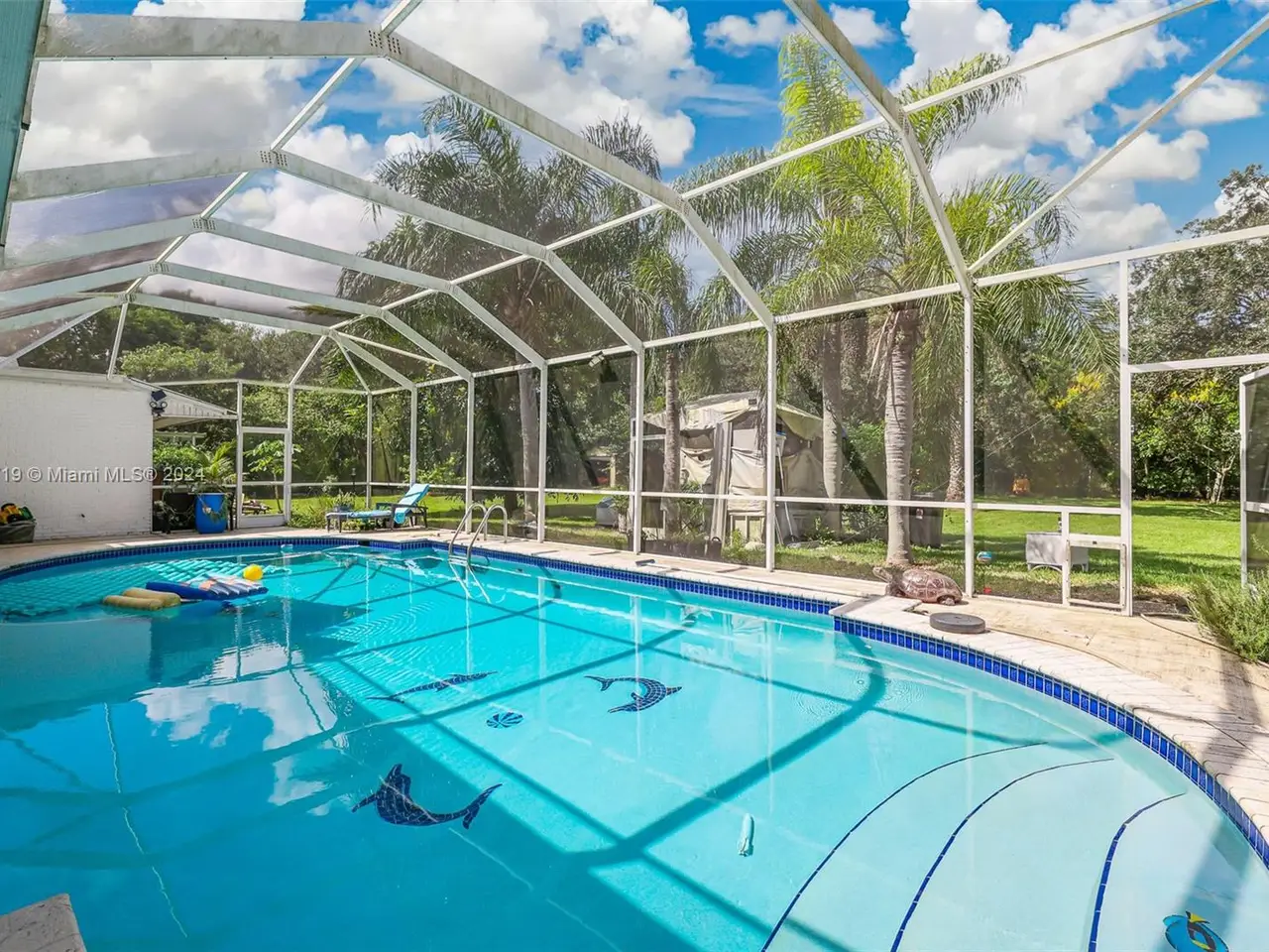 With four bedrooms, three bathrooms, and maid's quarters on over 1.2 acres, this estate home offers something for everyone. Enjoy barbecuing around the Chicago Brick BBQ Grill, and relax by the pool in the large screened patio. There's plenty of space for gatherings indoors with a large living room and formal dining room. Supermarkets, stores, and dining are conveniently located within a mile. There is ample space for watercraft and recreational vehicles. Parks and marinas are located within 11 miles. For those who love gardening, there is plenty of room to plant fruit trees. Two double-car garages are perfect for storing your prized vehicles. For sports lovers, the Sports Complex is only 0.5 miles away. Thoughtfully upgraded with recently installed wrap-around impact glass, roof, air conditioning and more!