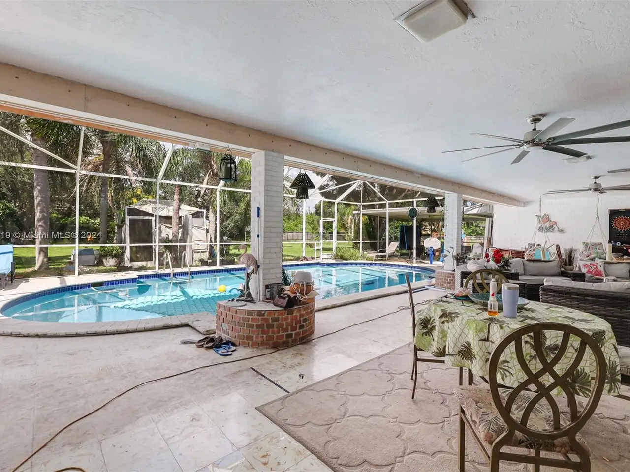 Large screened patio with pool