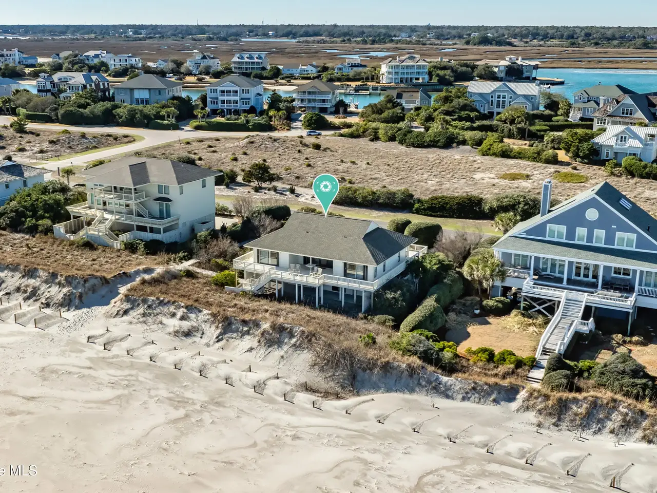 Figure 8 Island stands as North Carolina's most exclusive private island - renowned for its seclusion, prestige, and extraordinary coastal beauty. This 4-bedroom, 3-bathroom oceanfront residence sits on 0.61 acres of pristine beachfront and is uniquely grandfathered into a setback that places it slightly ahead of its neighbors, capturing sweeping, unobstructed ocean views from its wraparound decks.A comprehensive survey completed in July 2025 confirmed that the dune line remains strong and the First Stable Line of Vegetation has not shifted, verifying that the lot retains full buildability and ample space for a future home. Preliminary architectural drawings by Kersting Architecture for a 4,900 square foot custom build further showcase the site's potential.Protected by high, wide dunes ensuring excellent storm resilience and bordered by HOA-owned conservation land across the street, the property enjoys exceptional privacy and enduring natural beauty. The existing home features dual garages, a guest suite on the lower level, and a bright, open main living area upstairs with panoramic ocean vistas, a spacious kitchen, and three additional bedrooms.With recent new-construction sales on Beach Rd S closing at $12.5 million and $13.9 million, this property presents tremendous upside for those seeking to design and build a premier coastal estate. Buyers may also apply for membership at the exclusive Figure 8 Island Yacht Club, where the current owner holds a founding membership.Enjoy, renovate, or rebuild138 Beach Rd S represents an unmatched opportunity to invest in lifestyle, privacy, and long-term appreciation on one of the East Coast's most coveted shorelines.