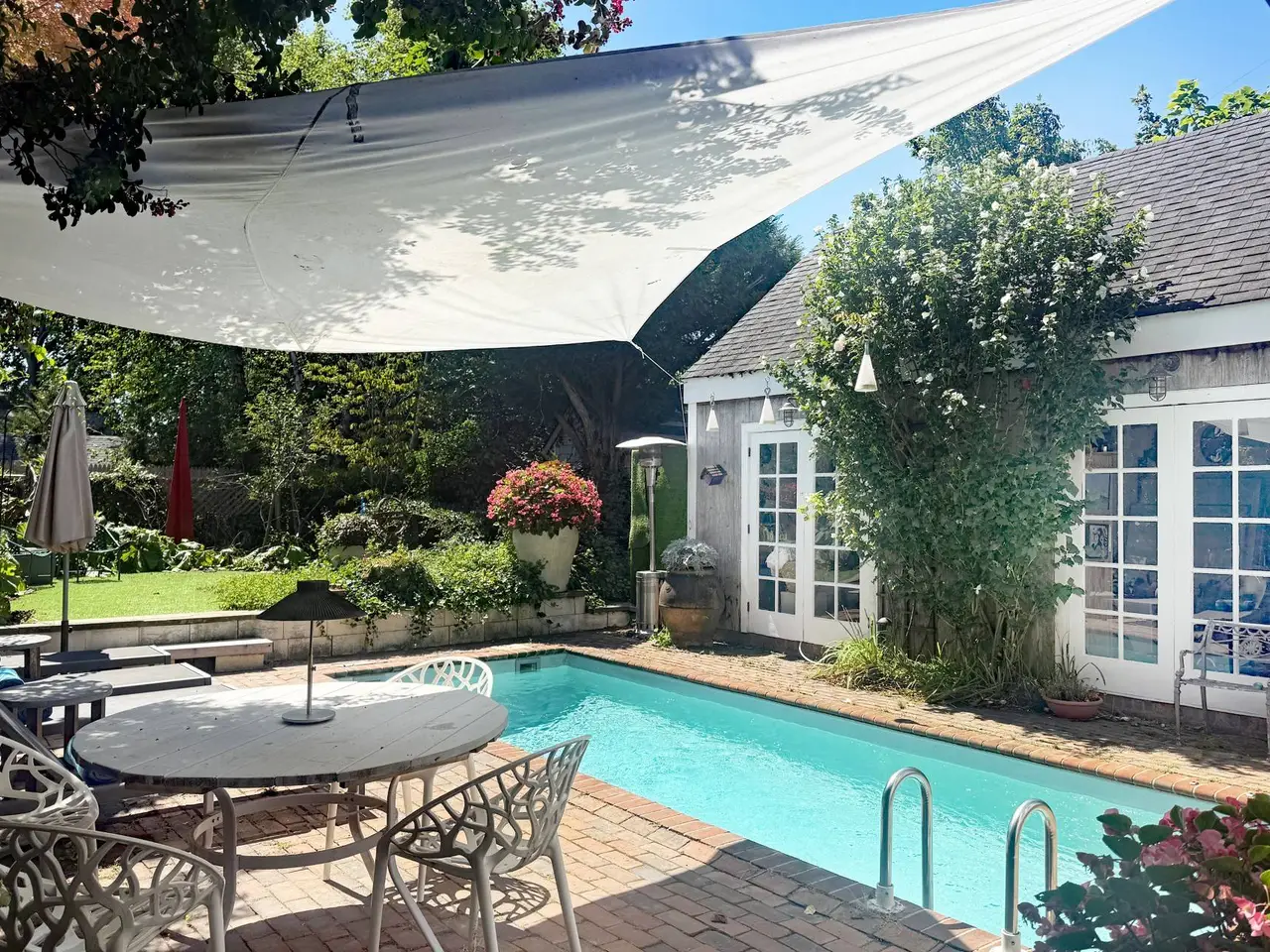 Located in the heart of Southampton Village, just a few blocks from renowned Main Street restaurants and shopping, this historic 3 bedroom shingle style home. Built in 1850, elegantly updated and upgraded over the years, the residence features charming interior spaces including a living room with wood-burning fireplace, a formal dining room, half bath and eat in gourmet kitchen with professional stainless appliances. Two guest bedrooms share one full bath. The primary bedroom with en suite bath offers a vaulted ceiling with exposed beams. The kitchen includes light-filled breakfast area overlooking the heated pool with south facing brick patio surrounded by charming English and herb gardens, pool-house and outdoor shower. The pool house/ garage is a multi function space with room for car, beach toys and bikes or clear it out to use as a party space with French doors to the pool area, brick floor and recessed lighting allow for some nice options. A second off the kitchen side door provides an outdoor cooking area with gas & charcoal grills and a spot for coffee. This home captures all the comfort and charms of Southampton living. Listing ID: 904600
