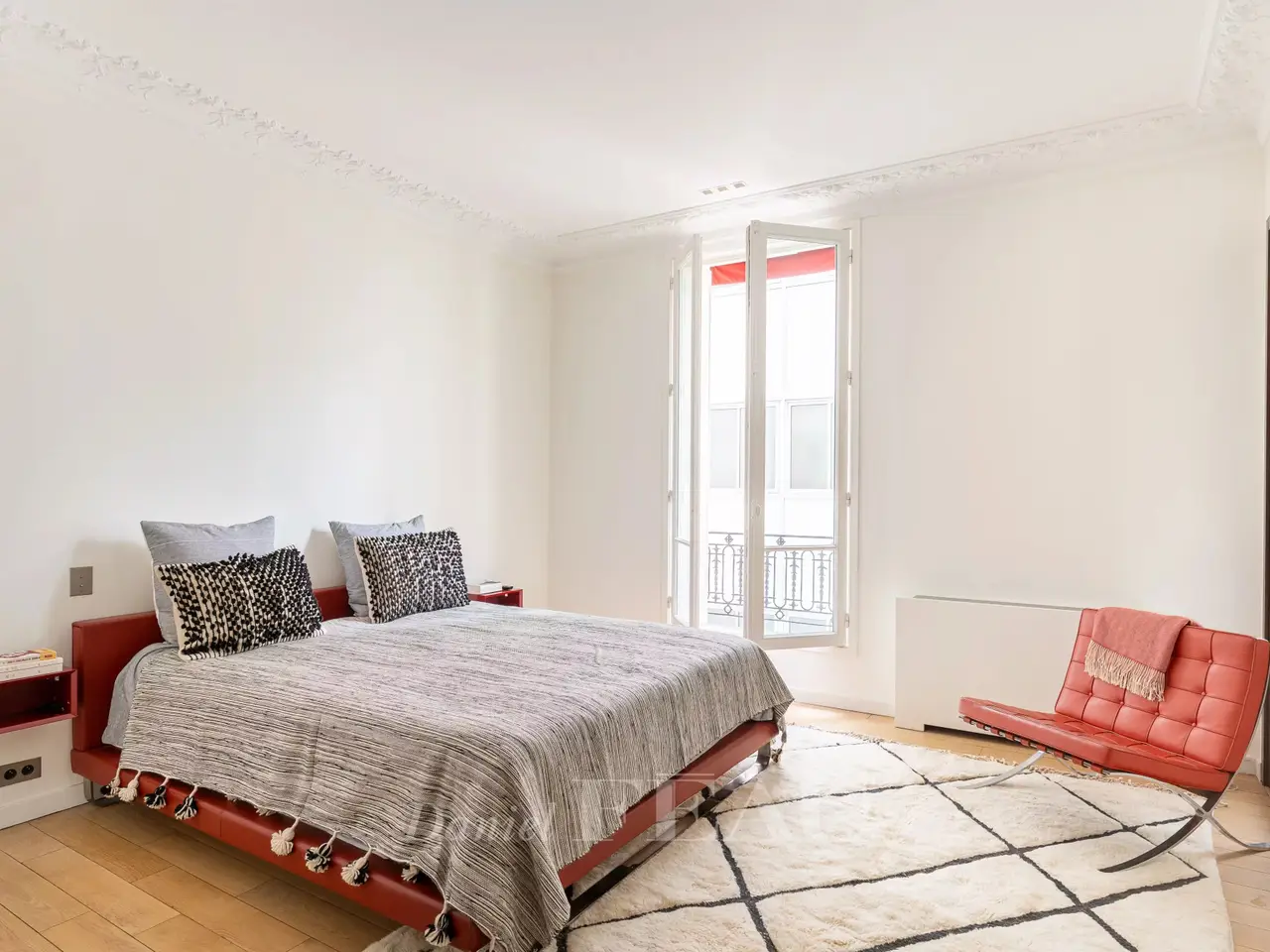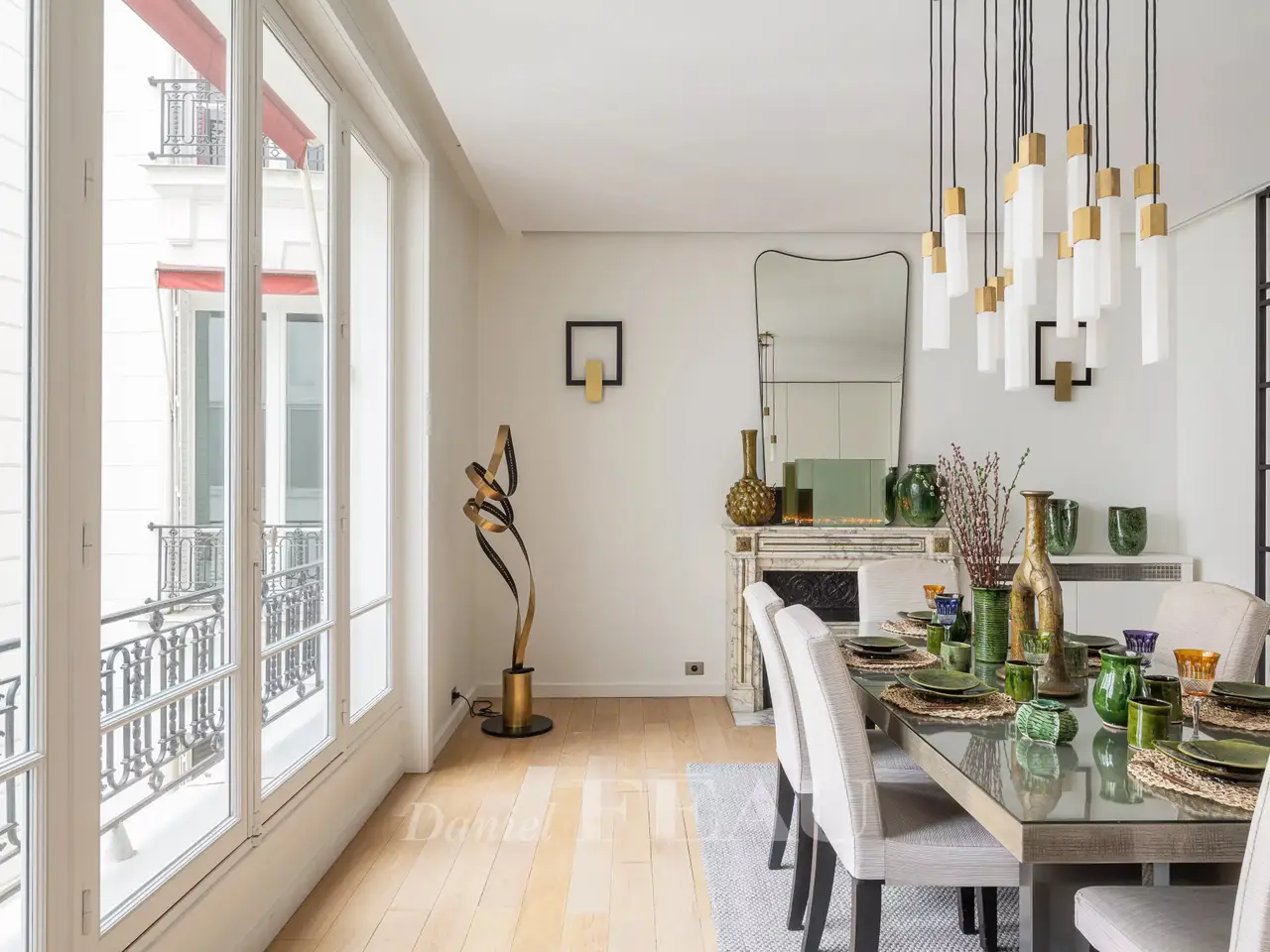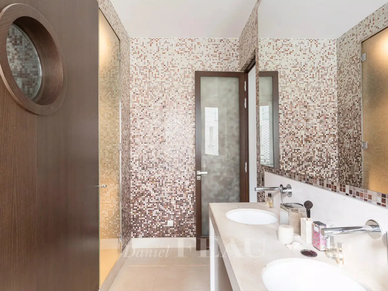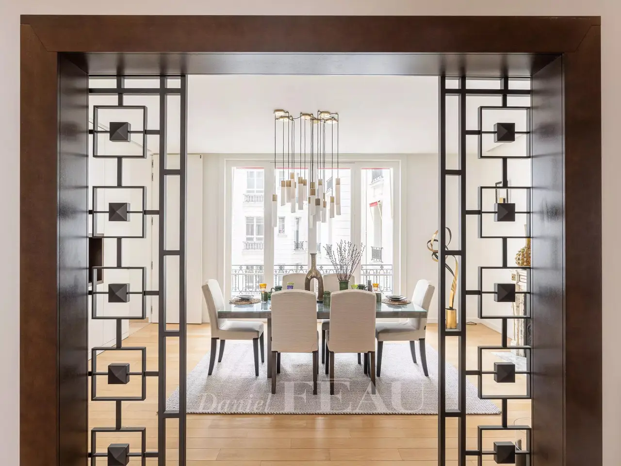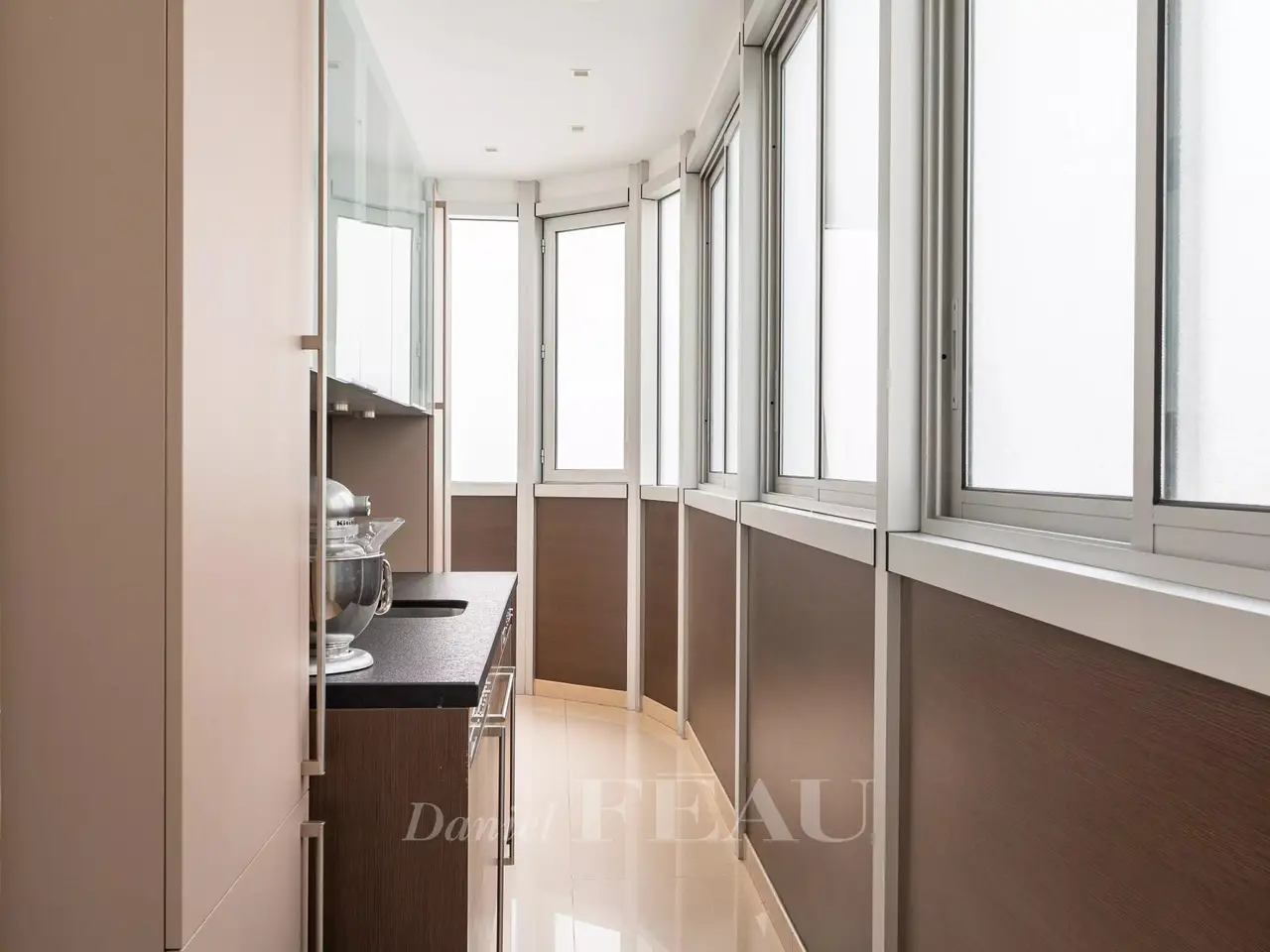 Rue de la Pompe, facing Janson de Sailly School. This 6-room apartment on the 3rd floor of a fine Haussmannian building has been meticulously renovated throughout by a renowned interior decorator. An entrance hall leads to a spacious double living/reception room, a dining room, a separate kitchen with dining facilities, three bedrooms with fitted closets, three shower rooms and a utility room. With two cellars.