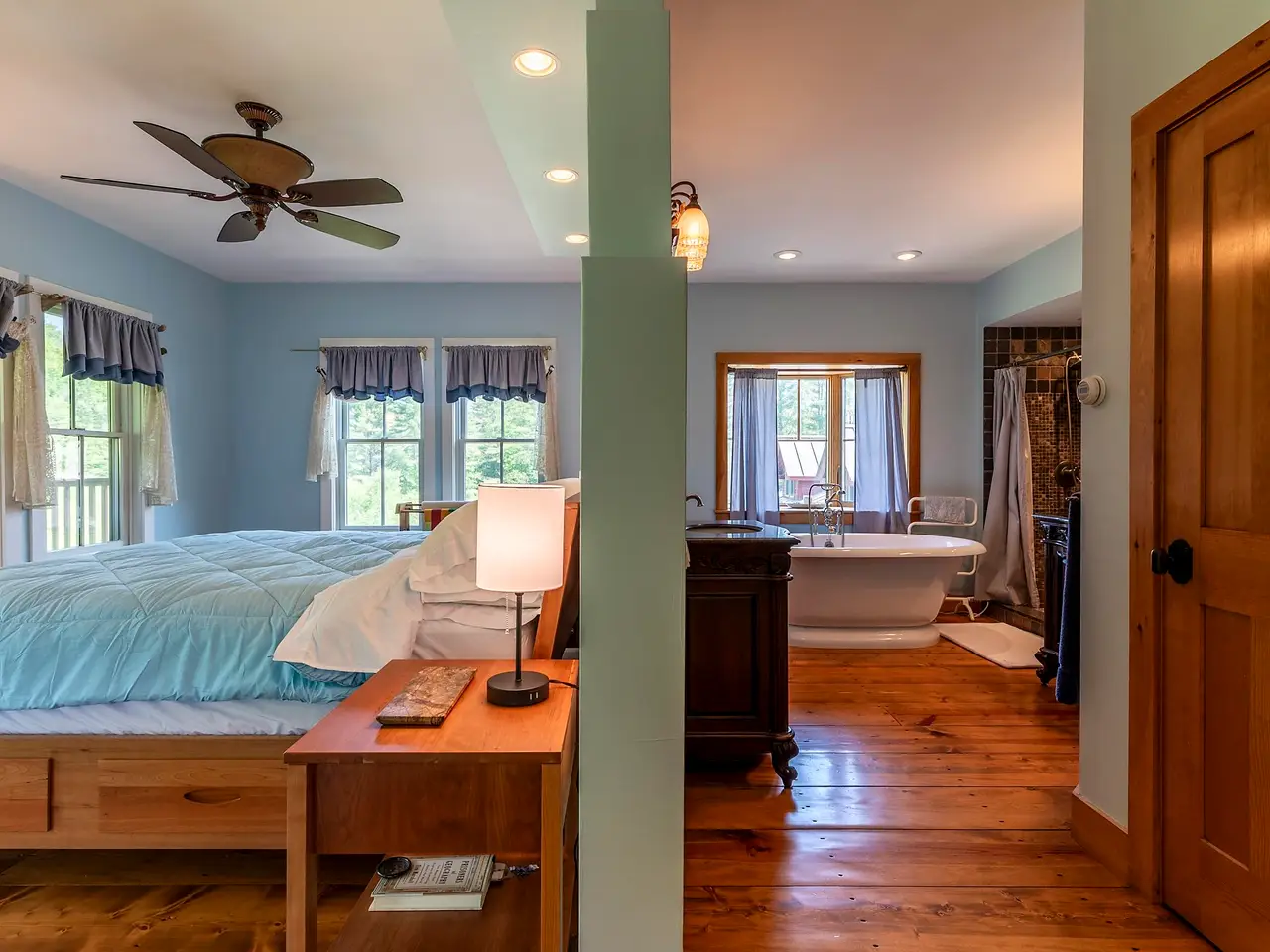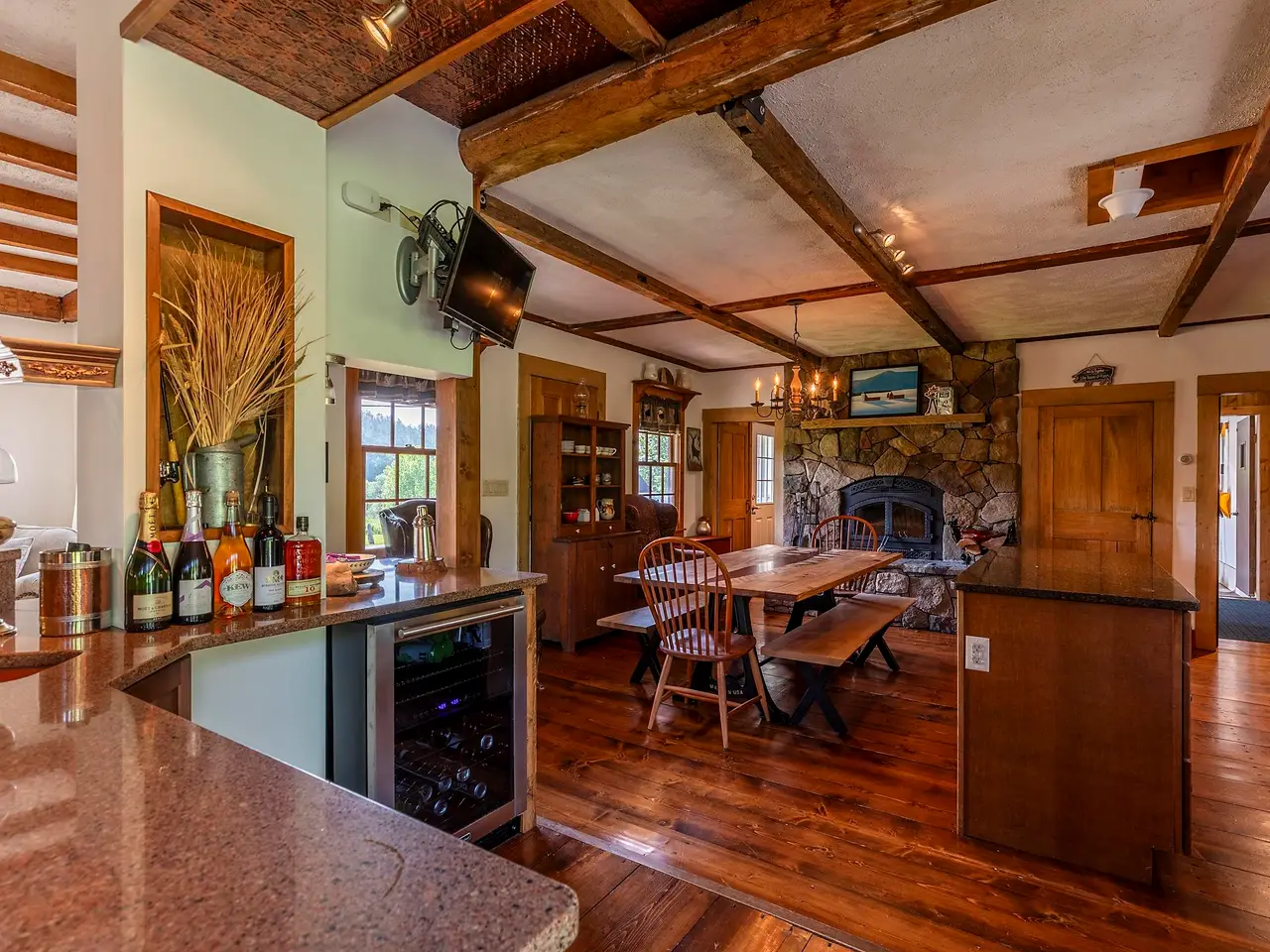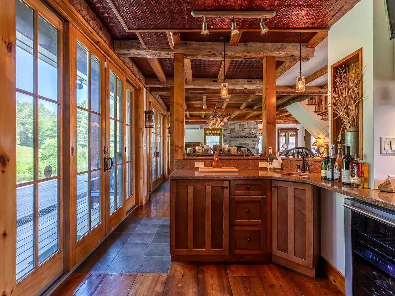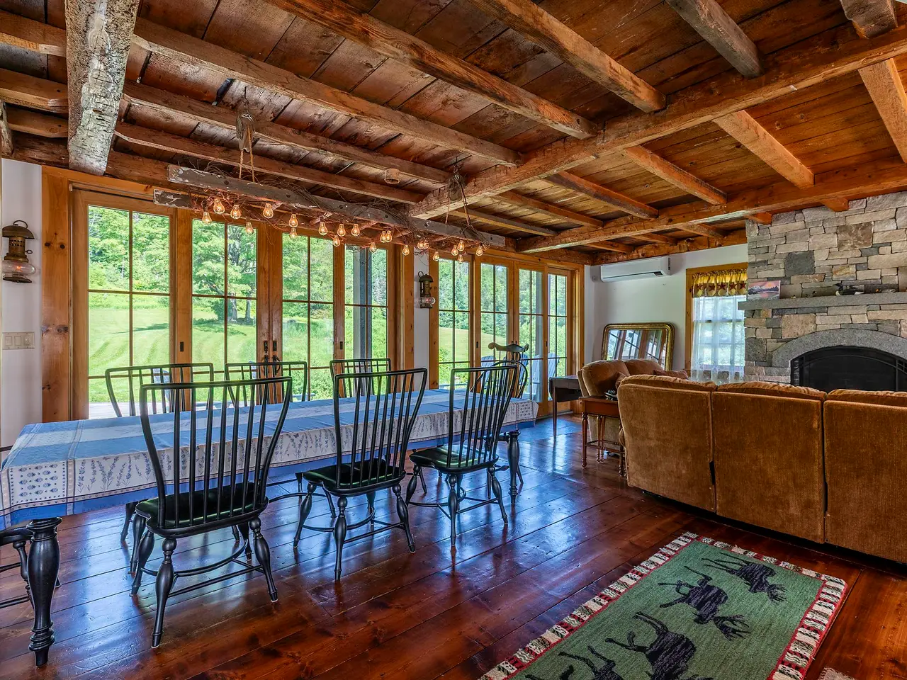 Experience timeless elegance and modern luxury in this exquisitely renovated 1834 farmhouse, gracefully sited on one of CavendishÆs most sought-after country roads. Thoughtfully updated while preserving its historic charm, this extraordinary residence features a state-of-the-art chefÆs kitchen, whole house a/c and an expansive open-concept main level adorned with original hand-hewn beams and architectural character throughout. French doors lead to an oversized deck, ideal for alfresco entertaining, with sweeping views of the serene swimming pond and pastoral fields. Choose between the warmth of a classic stone hearth wood-burning fireplace or the ease of a sophisticated new propane fireplace for the perfect aprFs-ski ambiance. The home offers a luxurious primary suite and three additional en-suite guest rooms, ensuring comfort and privacy for all. A spacious media and bunkroom above the attached three-bay garage, along with a fully finished lower-level game room, provide exceptional spaces for recreation and gathering. Set on 16 idyllic acres, the property includes a private pond, mature fruit trees, and a boutique vineyard across the road. A striking timber frame barn with a large loft and extended dormer offers ample space for vehicle storage, toys, or potential creative use. Located just five miles from OkemoÆs base lodge and the lakes region, this impeccable home is a rare blend of refined country living, recreational opportunity, and alpine convenience.
