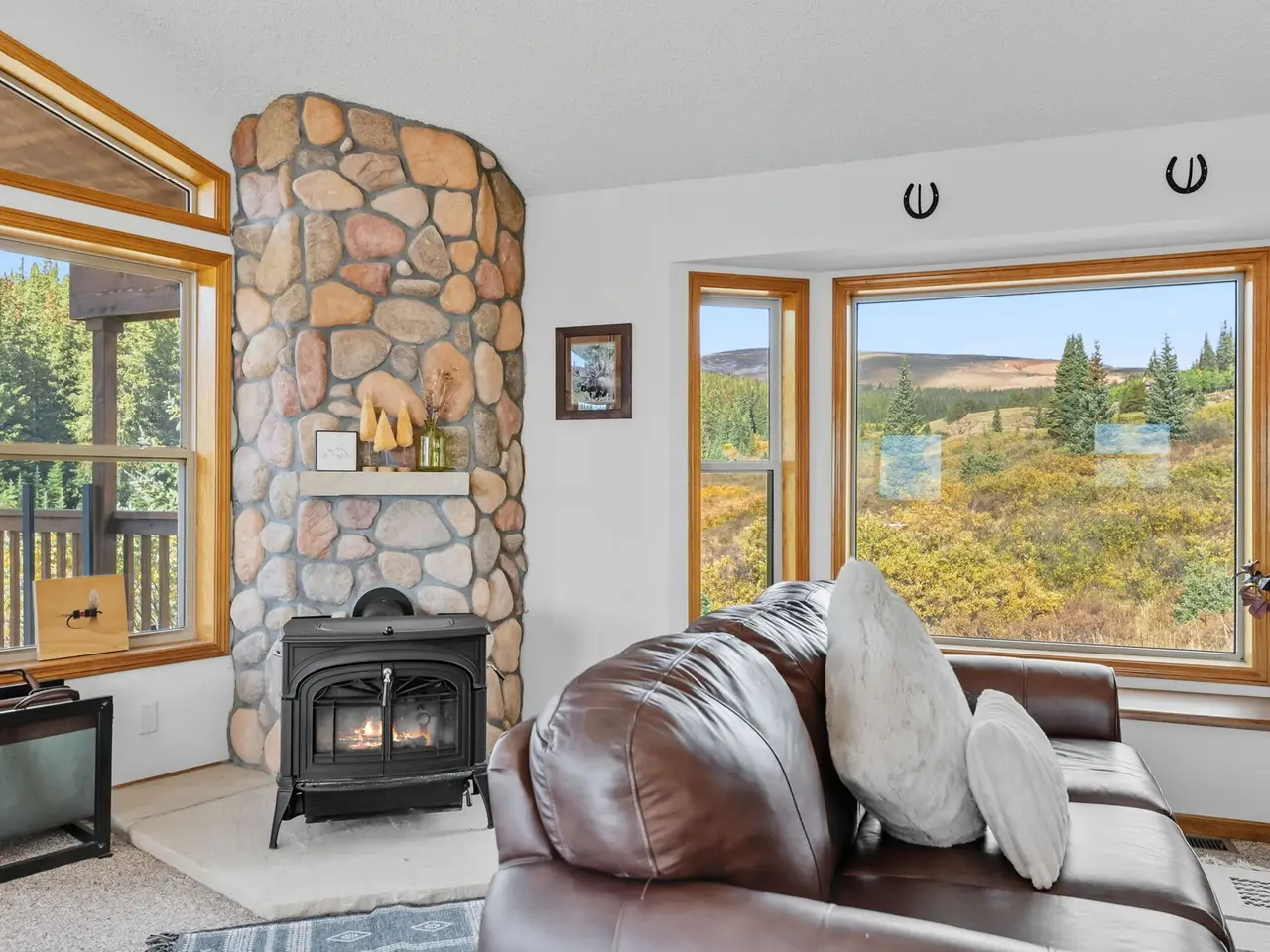 MILLION DOLLAR VIEWS! Perched high above the South Park Basin in the sought-after Valley of the Sun, and just forty minutes from Breckenridge, this mountain retreat offers sweeping panoramas from Pikes Peak to Pennsylvania Mountain. Set on more than 7 acres of pristine privacy, the property is a perfect blend of meadow, forest, and your very own creek-creating a true Colorado sanctuary. Inside, the home is cozy and inviting, anchored by a wood-burning stove. Floor to ceiling windows make a snowy day spectacular. With 4 bedrooms and 3 bathrooms-including two on the main level and two in the finished walk-out basement-there's space for everyone. Two spacious living areas open to outdoor spaces, perfect for entertaining or simply soaking in the peaceful setting. Step outside to a giant wraparound deck and watch for moose, elk or deer in the valley. The property offers endless opportunities to relax, spread out, and soak in the scenery. With no HOA, furnished option, and unbeatable views, this is the mountain getaway you've been dreaming of. Whether for weekend escapes or year-round living, privacy, peace, and spectacular scenery await.