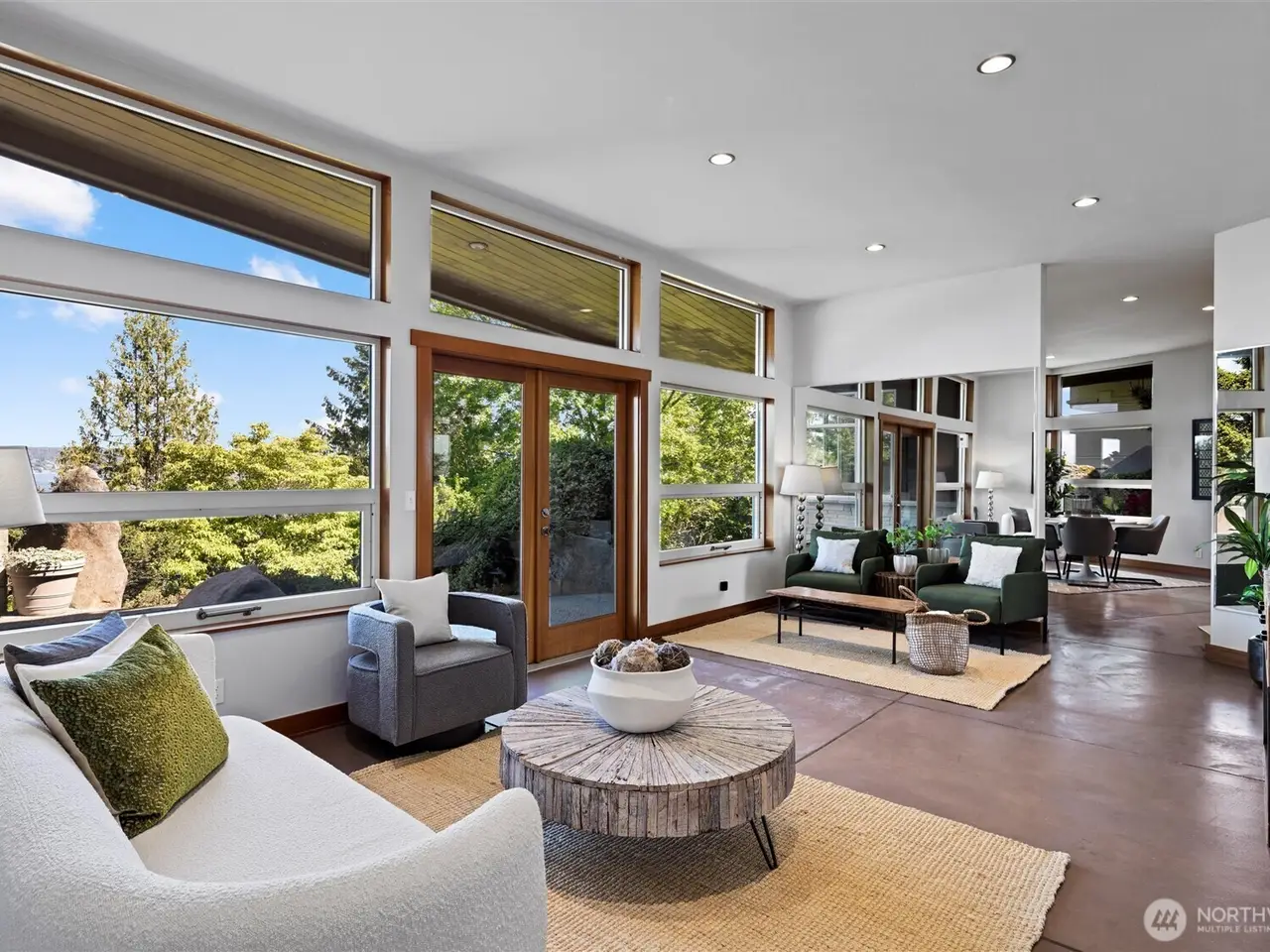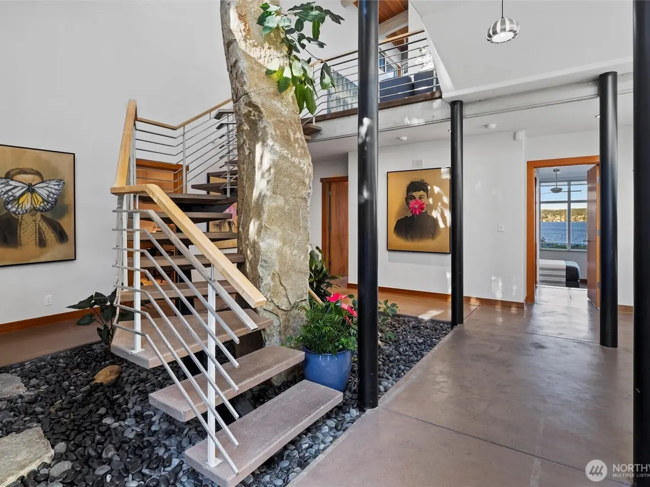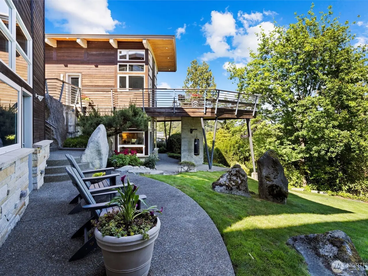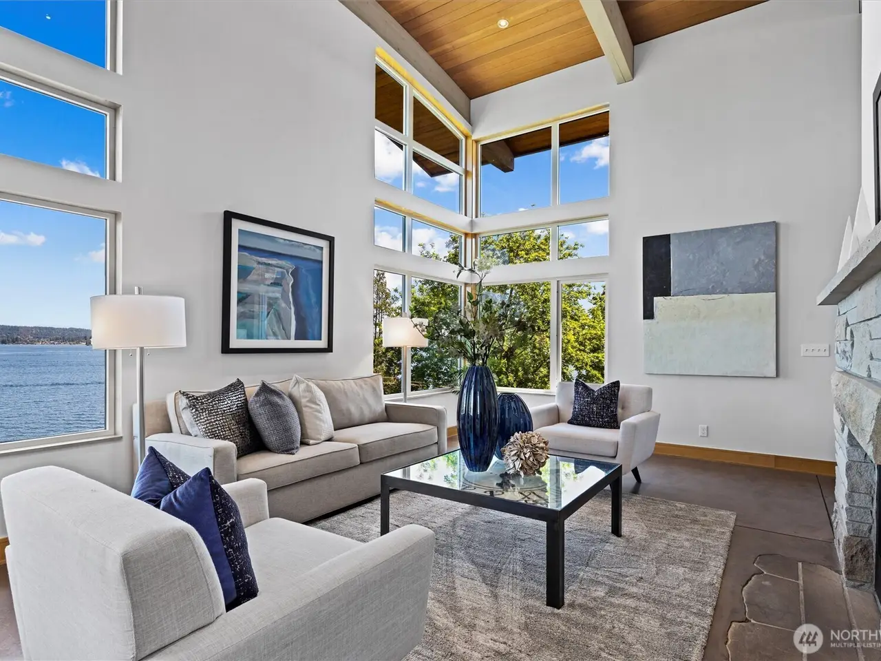 Truly exceptional signature Laurelhurst waterfront estate with 155 feet of prime Lake Washington waterfront on 1.17 acres! Architecturally significant 6,488 home with elegant atrium entry built around huge standing granite stone monolith, custom barrel ceilings and walls of windows capturing sweeping, panoramic views of the sparkling waters, Mount Rainier, golden sunrises over the Cascade Mountains and Lake Washington's never-ending maritime performances from nearly every room. Open and light filled custom 2000 built masterpiece features 5 view bedrooms and 5.5 baths, soaring ceilings, unique spaces and finishes with Northwest wood finishes, expansive view decks and patios, and 4 car detached garage. Incredibly lush, arboretum-like grounds with mature species plantings, imported boulders and beautiful winding walkways to level lakeside gardens, water's edge step in cove and frontage with 95-foot private dock all on a double lot. One-of-a-kind subterranean tunnel (perfect wine cellar?) amongst many other custom features and spaces that are all part of the amazing potential of this special offering. A+ location near renowned Laurelhurst Beach Club, just a few minutes to U-Village and world class shopping and wonderful commute to eclectic Seattle and Bellevue shops and restaurants. Don't miss this rarest of opportunities to own one of the great Laurelhurst waterfront retreats!