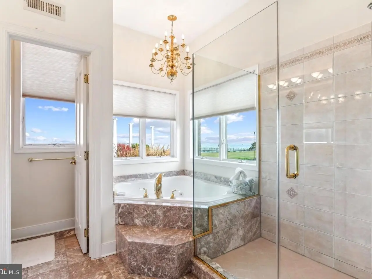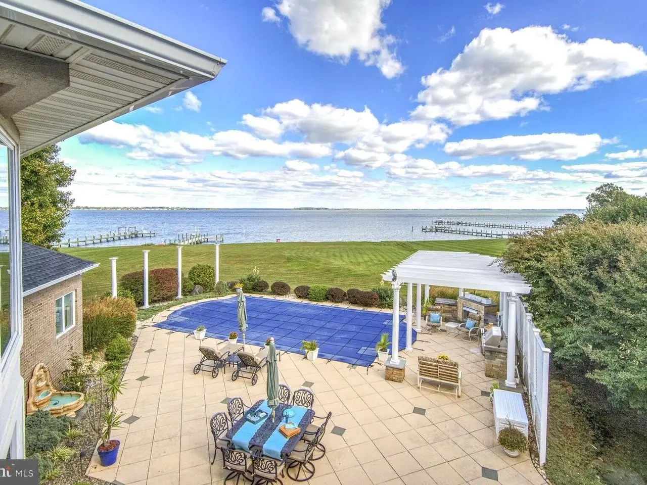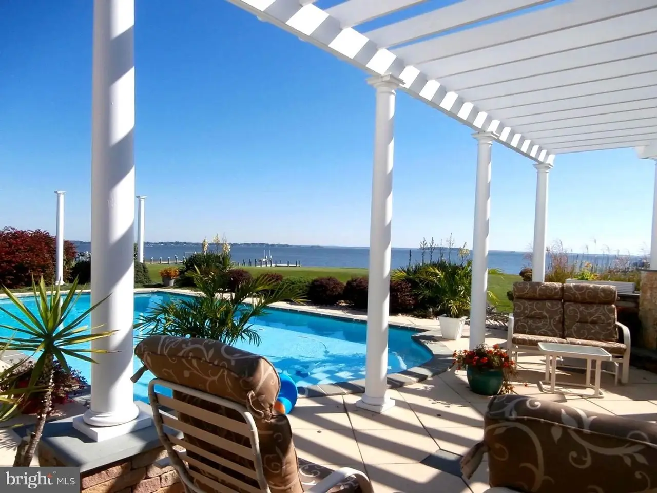 An impressive open two-story foyer welcomes you to this custom 4 BR, 3.5BA waterfront residence on 1.9 acres boasting an enchanting open space floorplan. A first floor Ensuite BR has a walk-in closet plus a separate jacuzzi and shower in the updated full bath. The sumptuous approximately 39'X26' Primary Suite with a large sitting room area offers front and rear balconies specifically designed by the Architect to enjoy the breathtaking sunrises, moonrises & sunsets lighting the Bay with bright pink and orange skies and brilliantly lit sparkling water. This second floor Primary Suite has a Cathedral ceiling, a 3-sided gas fireplace and a fully renovated Coastal style bath which includes a luxurious remote controlled floating Air Spa tub. Also upstairs is a large loft accessed by French doors boasting custom built-ins and extraordinary extensive water views overlooking the Bay and Pool. Walls of windows throughout the residence provide abundant natural light and endless broad views of Crab Alley Bay from almost every room. The Gourmand's Kitchen with its solid custom maple cabinetry is furnished with a Subzero refrigerator, double wall oven with Smart features, auto purified cold water spigot at the sink along with a 5-burner gas cooktop. A Subzero wine fridge is located in the island by the Dining Room for easy entertaining. The hardwood flooring is Canadian White Maple. A freestanding curved White Maple staircase enhances the beauty of the very generously sized 2-story Foyer. A two-story Great Room features a 2-sided gas FP and a custom wet bar that both open to a vast Morning Room area and seating space. Formal separate Dining and Living Rooms are open via knee-walls with columns for romantic dining and entertaining. The level outdoor living space includes a lighted inground 36x18' pool, a Pergola and a stone hardscape with a built-in Grill, outdoor rated refrigerator and a built-in gas fireplace for chilly waterfront evenings outdoors. Plentiful terracing affords a breathtaking, serene setting to relax and entertain friends and family while taking in the extraordinary and expansive water views. There is a private pier, a 3-car garage with built-in overhead storage and a driveway that can accommodate several more cars and there are multiple landscaping berms. The home has a whole house sound system & whole house attic fan. The cooking, 3 fireplaces and 3 zone HVAC are propane. The community of Southwind is a waterfront peninsula surrounding 97 custom homes and offering a waterfront Clubhouse, Tennis Court, walking trails along the Bay, a Boat Launch and a gated boat storage area. Welcome home to your year-round vacation! Furniture negotiable