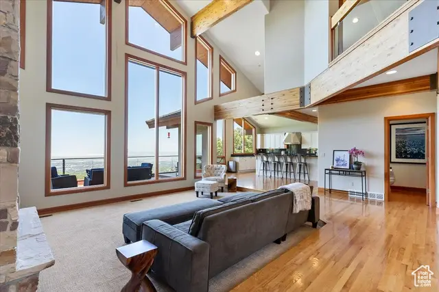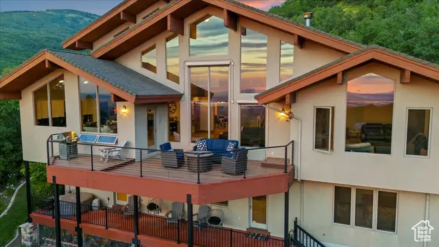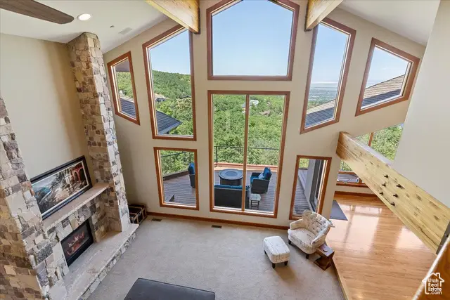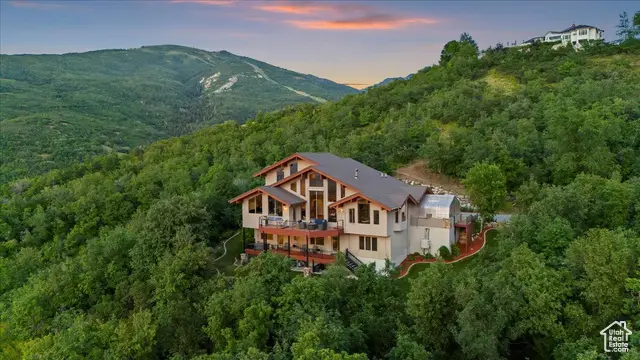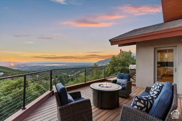 Welcome to what we affectionately refer to as Sunset Estates - a private sanctuary nestled on 6.13 wooded acres at the end of a quiet lane, just literal steps away from the trails of Mueller Park. This exceptional custom home offers unmatched serenity, breathtaking panoramic views of the valley and Great Salt Lake, and a level of privacy rarely found in Davis County. Designed to impress, the home features soaring windows that flood the living spaces with natural light and frame the incredible vistas. The gourmet kitchen has been beautifully updated with granite countertops, an expansive workspace, and top-tier appliances including WOLF double ovens, gas cooktop, Sub-Zero refrigerator, Bosch dishwasher, and a warming drawer. A large walk-in pantry and an open-concept design make it perfect for both everyday living and entertaining. The main floor offers a formal dining room, spacious office, mudroom, and a generous laundry room. The grand family room centers around a stunning floor-to-ceiling gas fireplace, creating a cozy yet elegant atmosphere. The entire top floor is dedicated to the luxurious primary suite-a true retreat with sweeping sunset views, a large walk-in closet, and a spa-like bath featuring a new soaking tub, double vanity, and dual-head shower. All of the bathrooms throughout the home have been thoughtfully updated with high-end finishes and modern style. Downstairs features 10-foot ceilings, a theater room with included equipment, a secure vault room, and three spacious bedrooms-two with walk-out access to a newly rebuilt upper deck that showcases even more of those stunning views. Additional highlights include a retractable-roof greenhouse, a comprehensive fire suppression system, updated HVAC systems, mature landscaping and ample space for outdoor enjoyment or future expansion. This is a rare opportunity to own a truly secluded estate in one of Davis County's most picturesque settings. Homes like this don't come along often-schedule your private showing today.